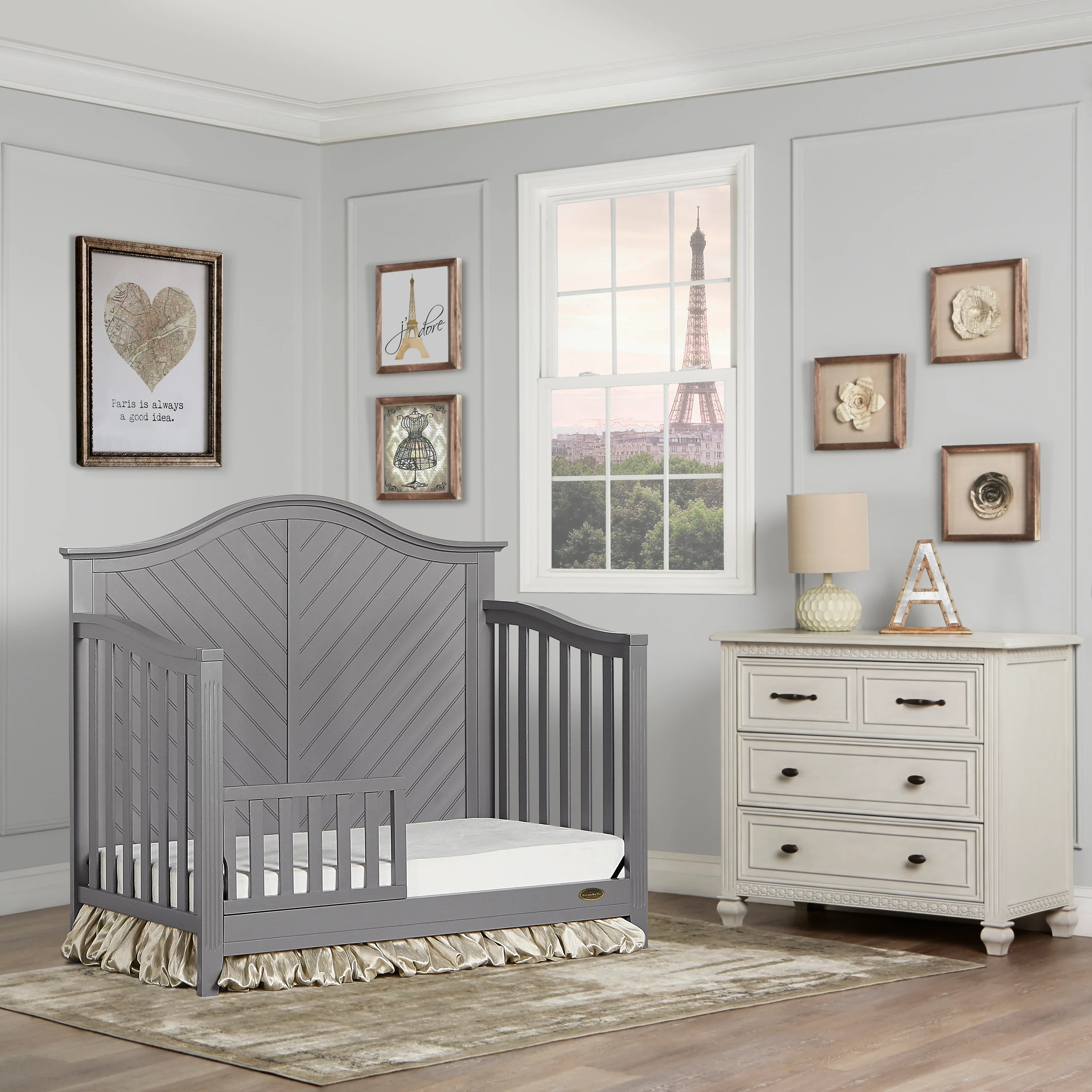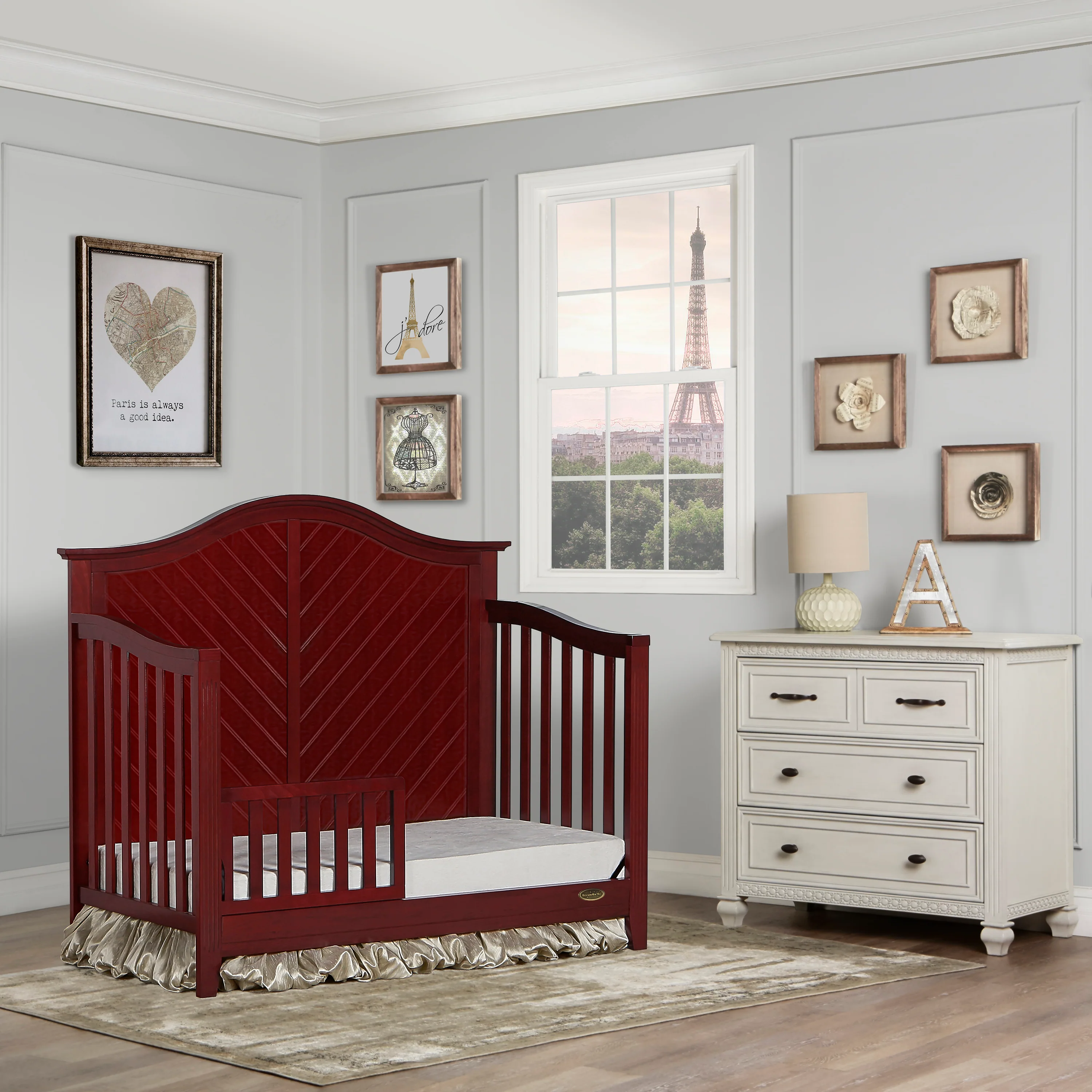 - Easily adapts from crib to cozy toddler bed (Toddler Bed Conversion Kit sold separately).