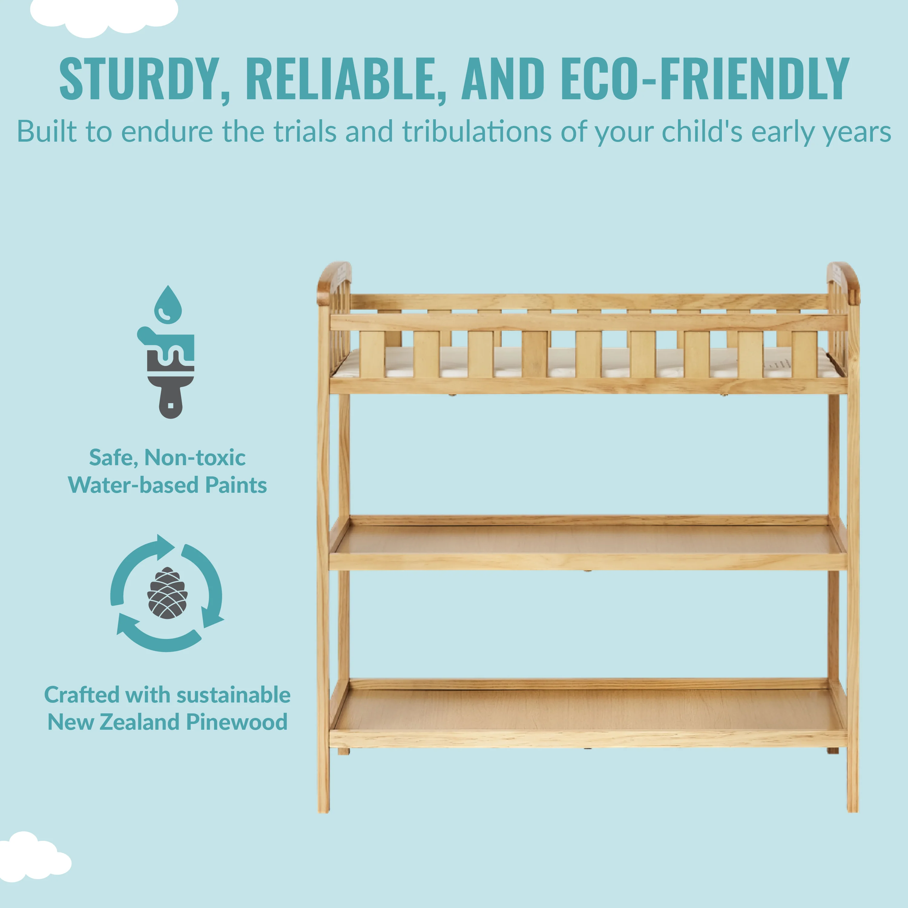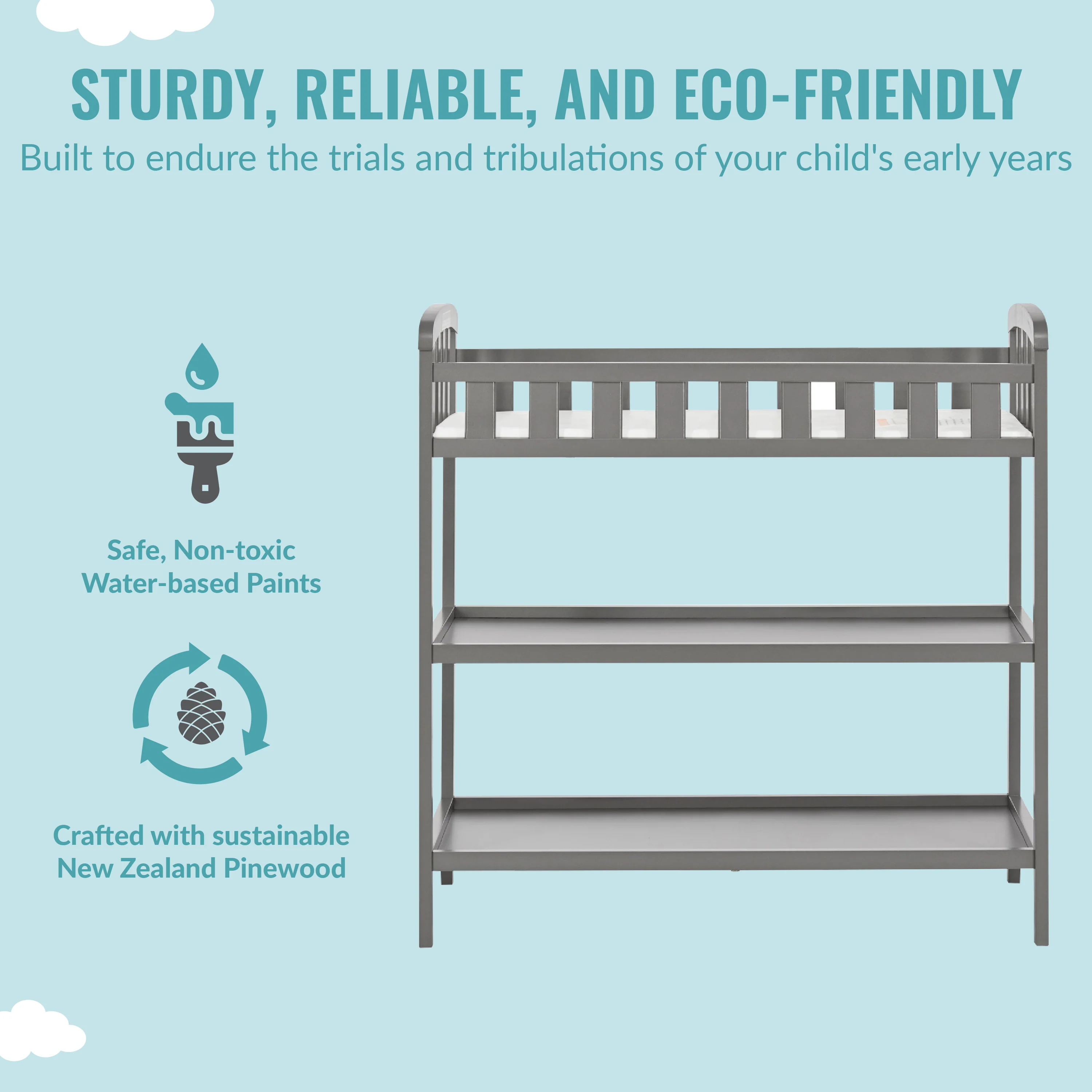 - CONVENIENT & DURABLE: The mattress changing platform comes with a 1�?changing pad creating a convenient space for diaper changing. It is made of durable, sustainable and renewable New Zealand pinewood and boasts a stable design