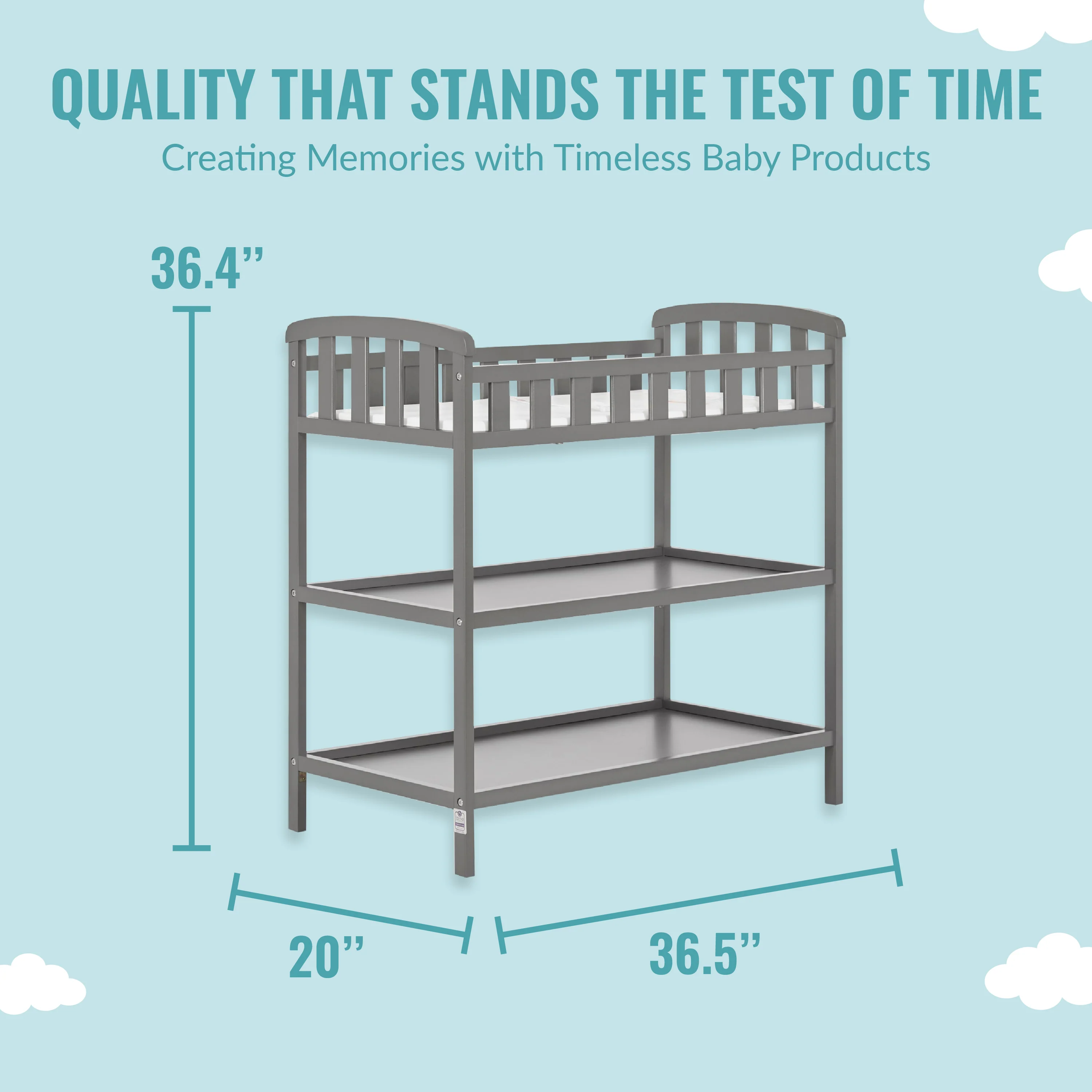 - GREAT STORAGE: The Emily comes with two easy-to-reach, spacious shelves below the changing table that allow you to keep your LOs essentials neatly organized and easy to access. Product dimensions are 36.5L x 20W x 39H inches