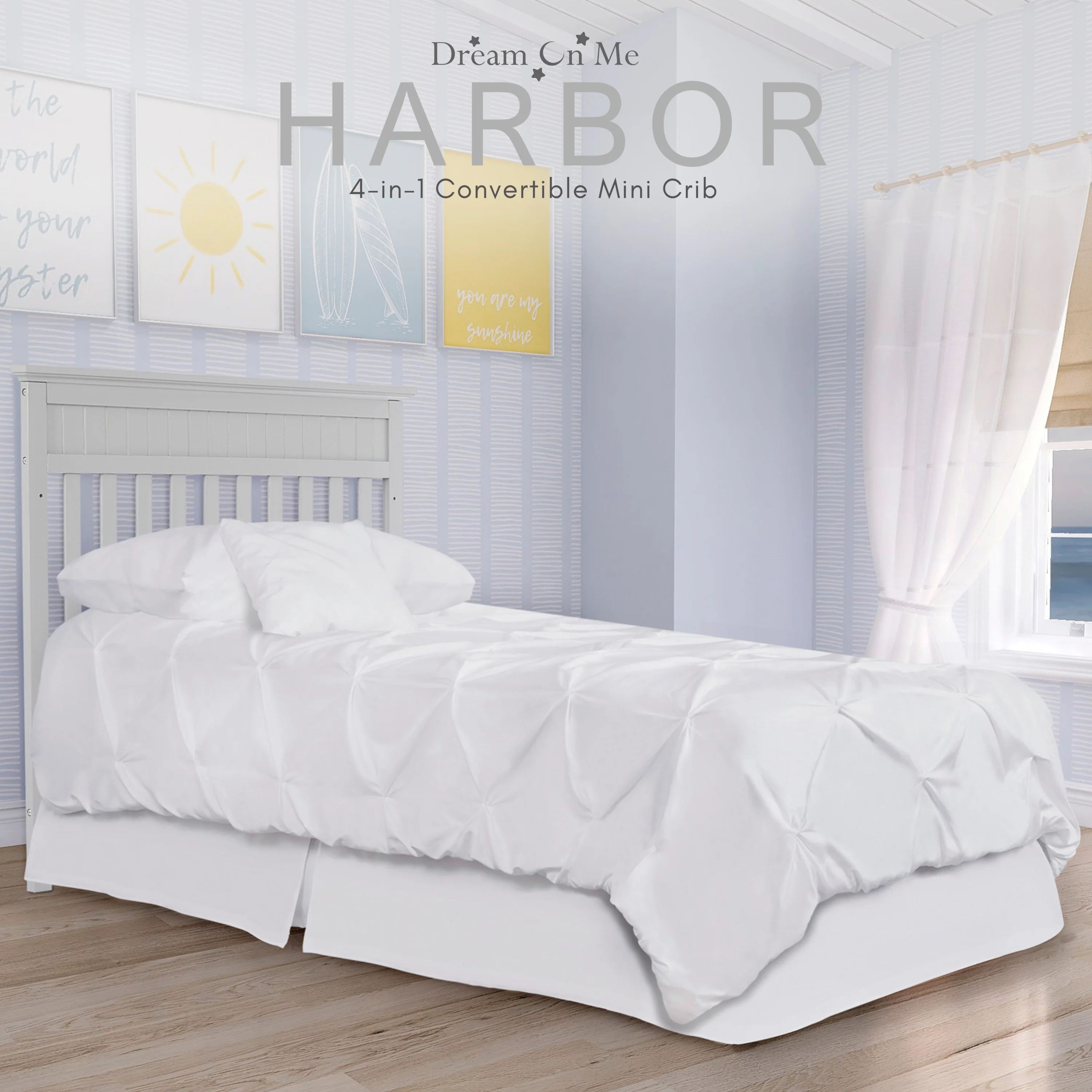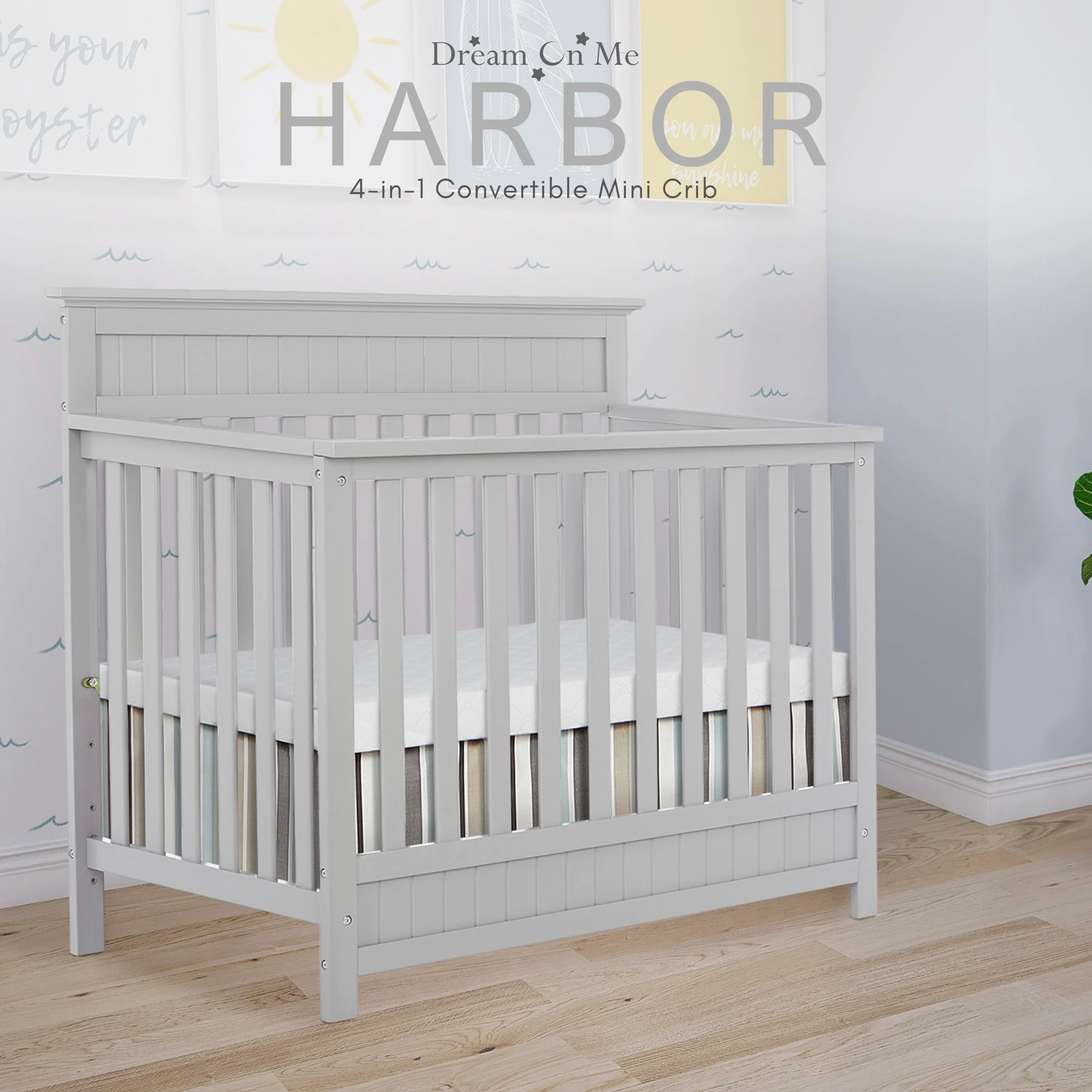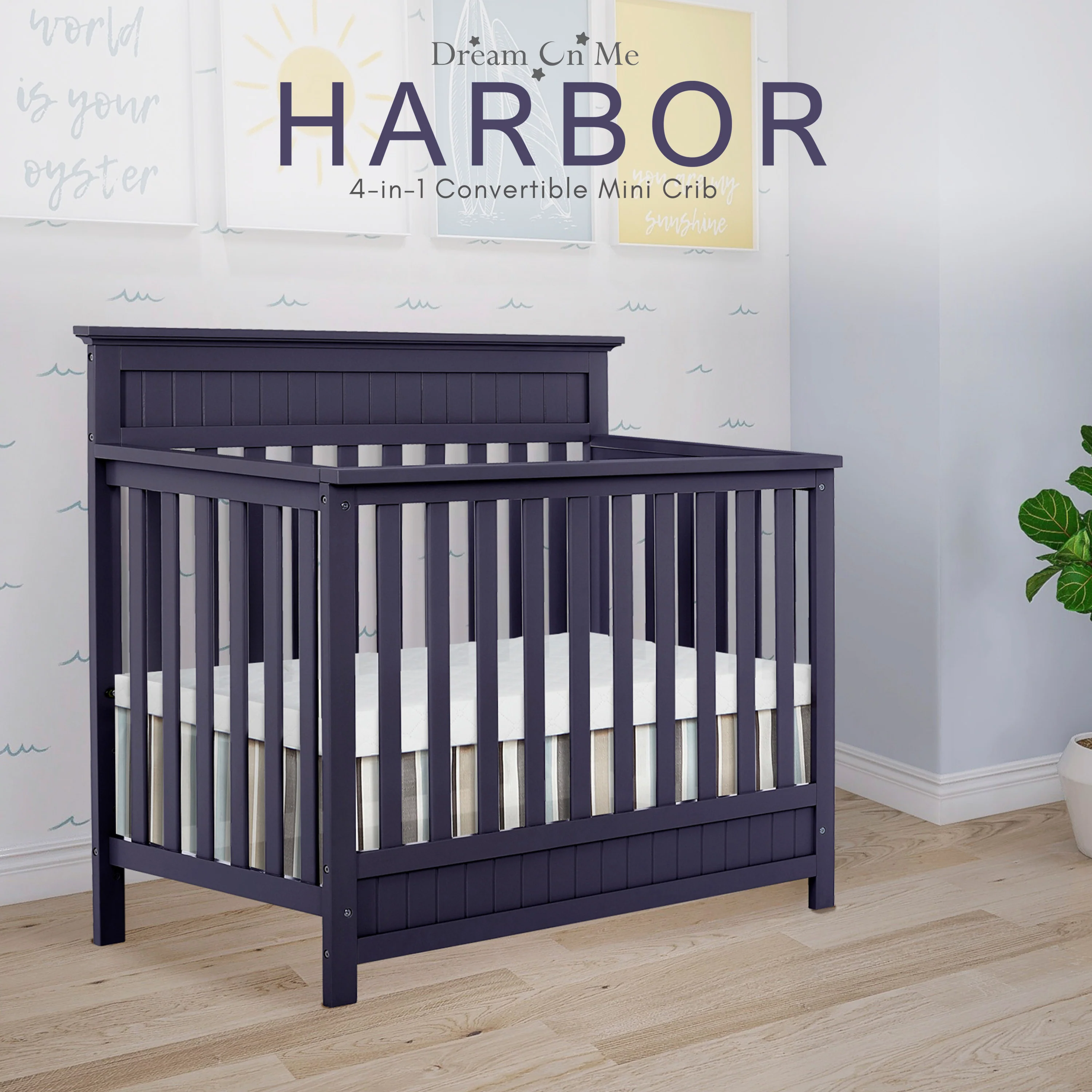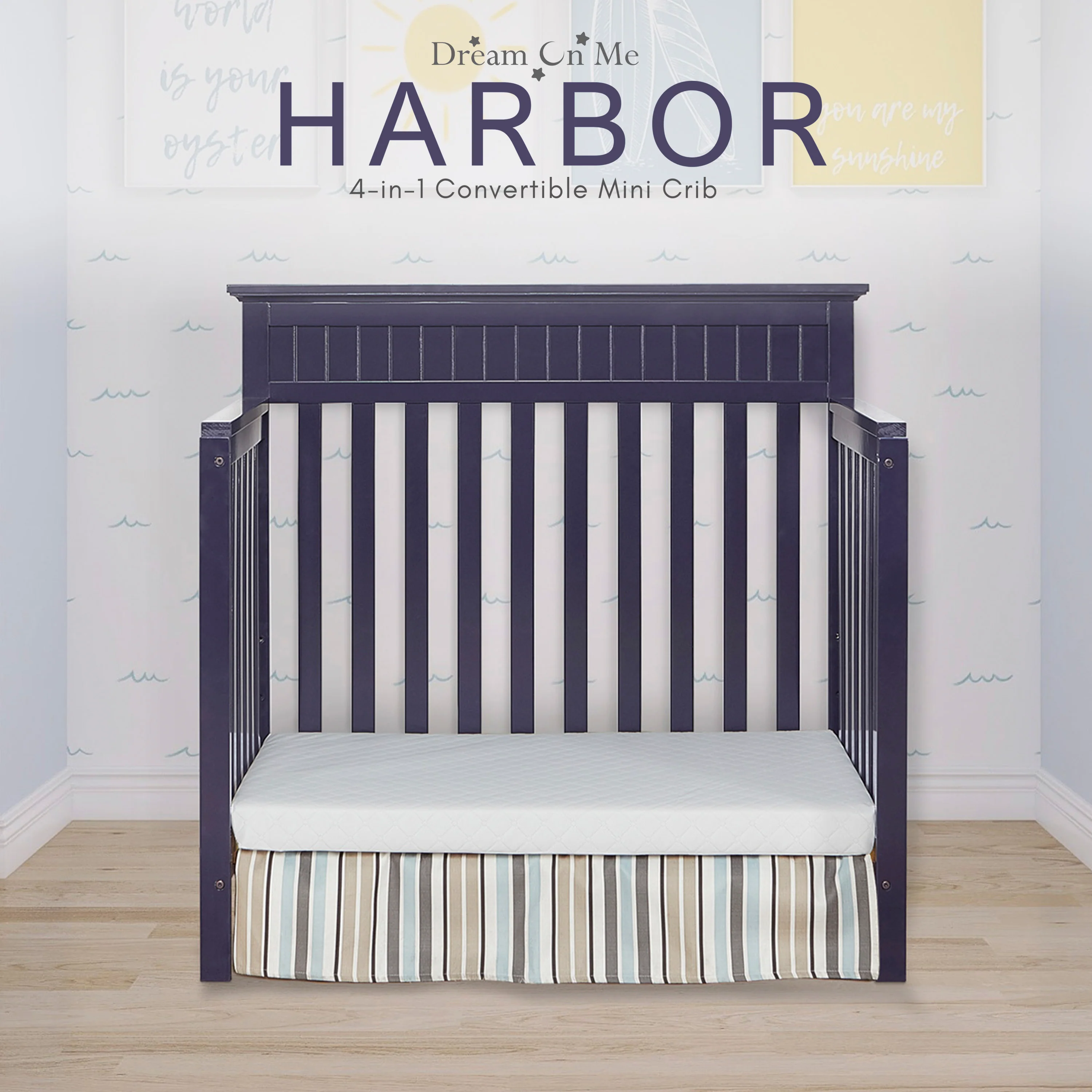 - Dream On Me Harbor 4-in-1 Convertible Mini Crib