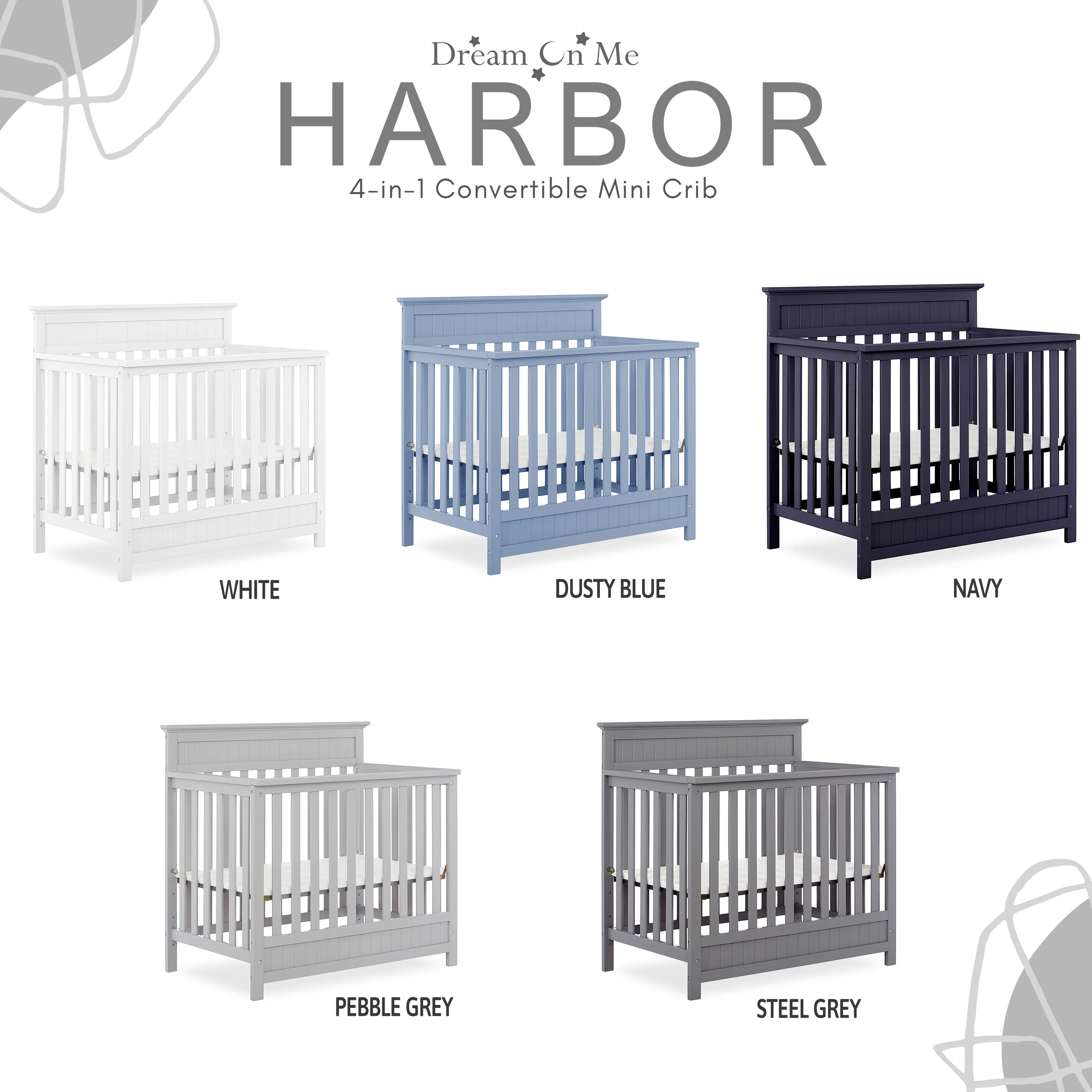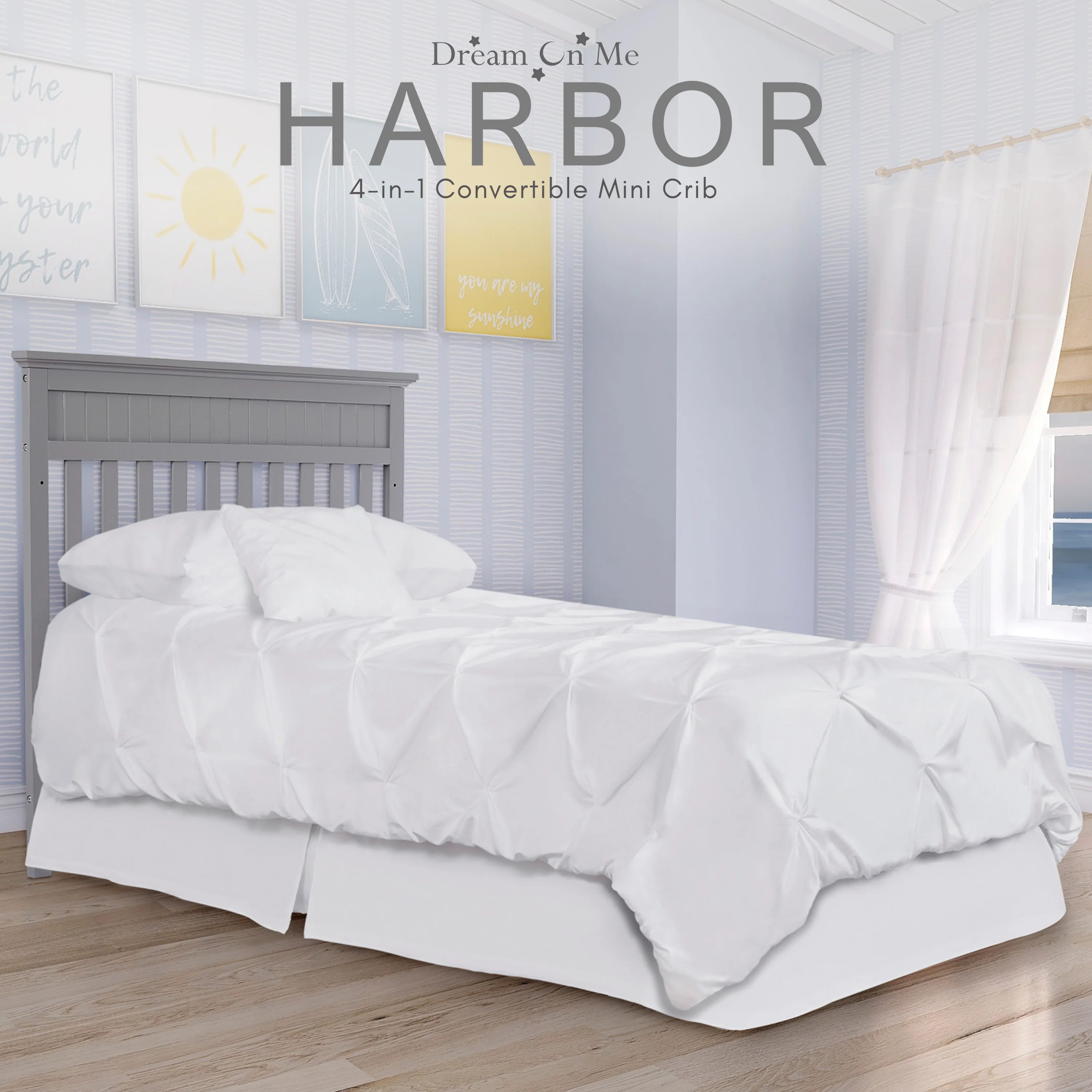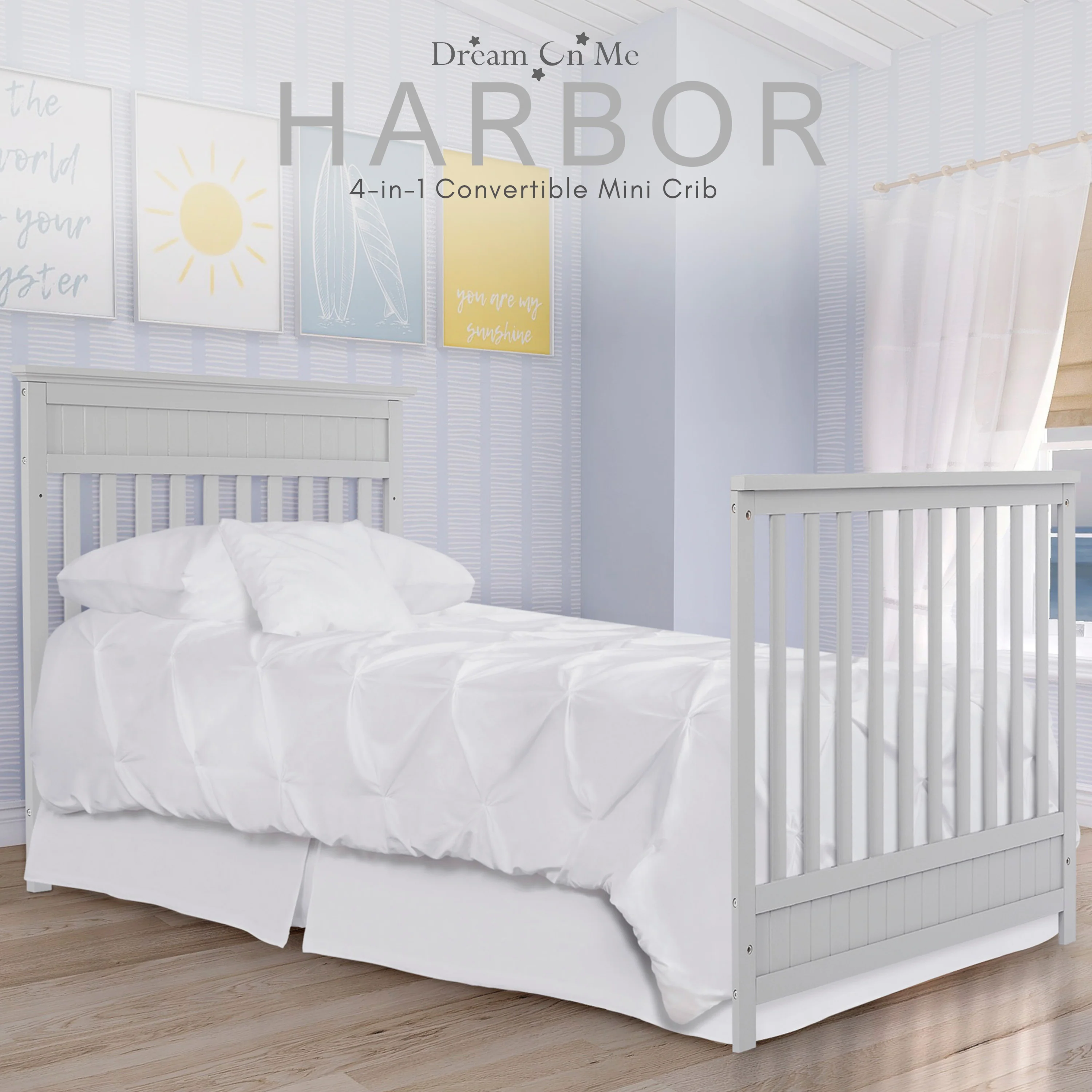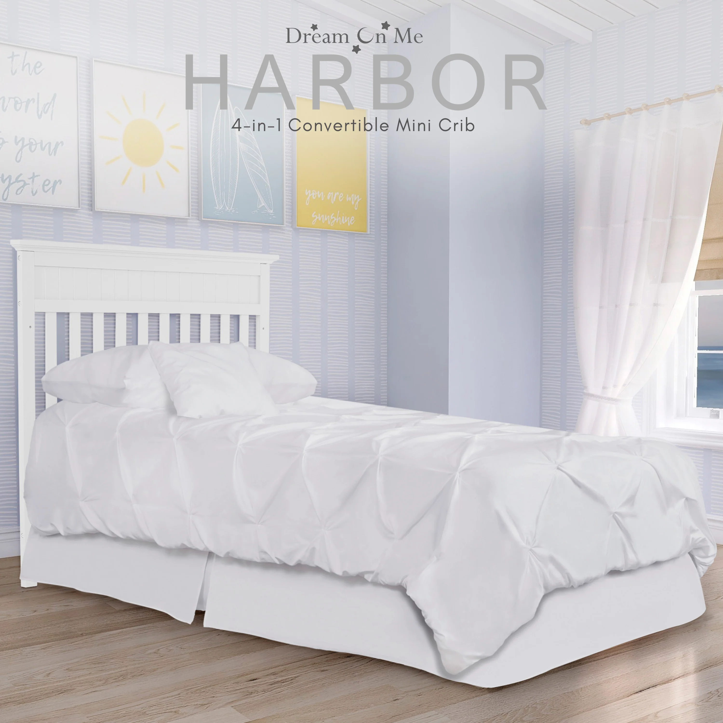 - Dream On Me Harbor 4-in-1 Convertible Mini Crib