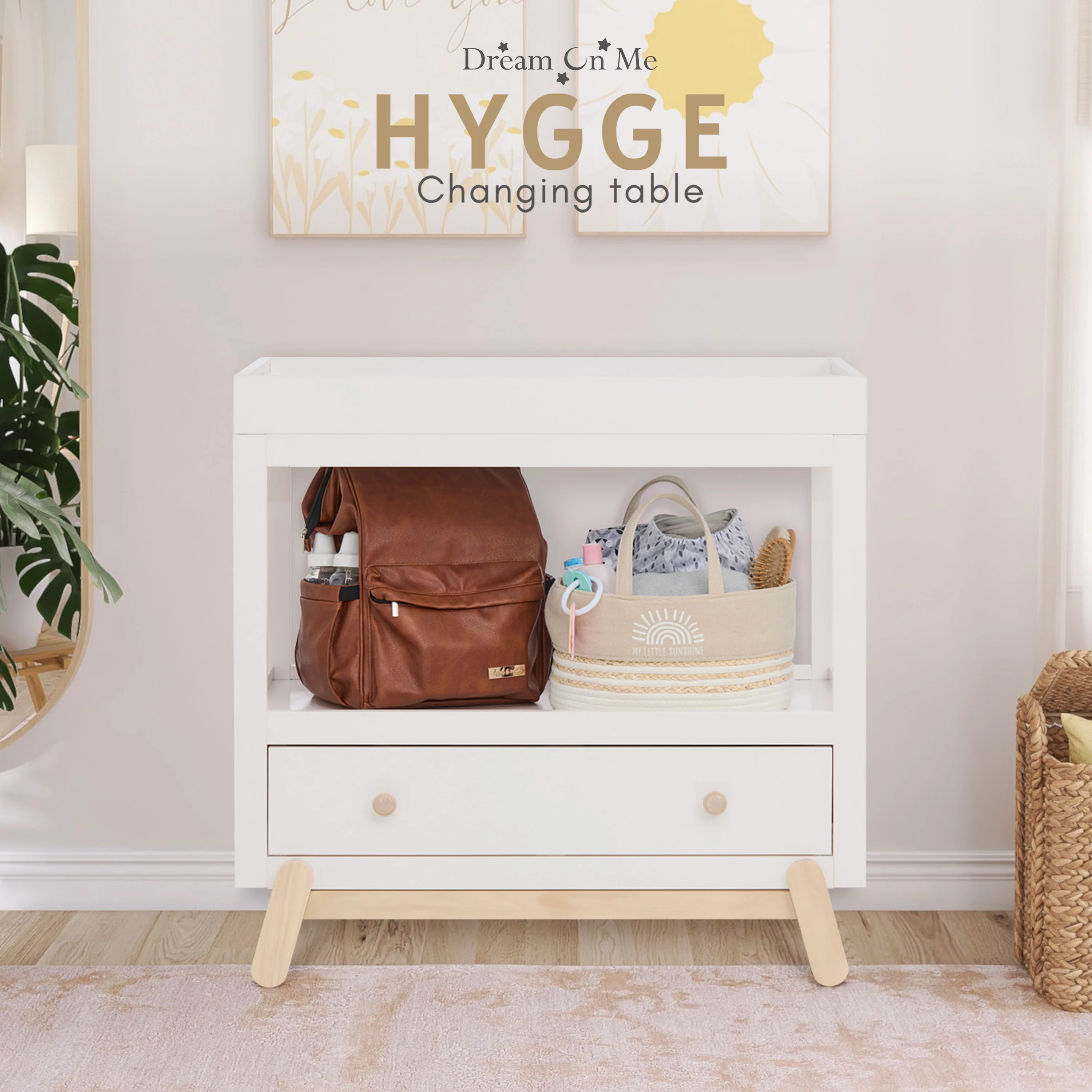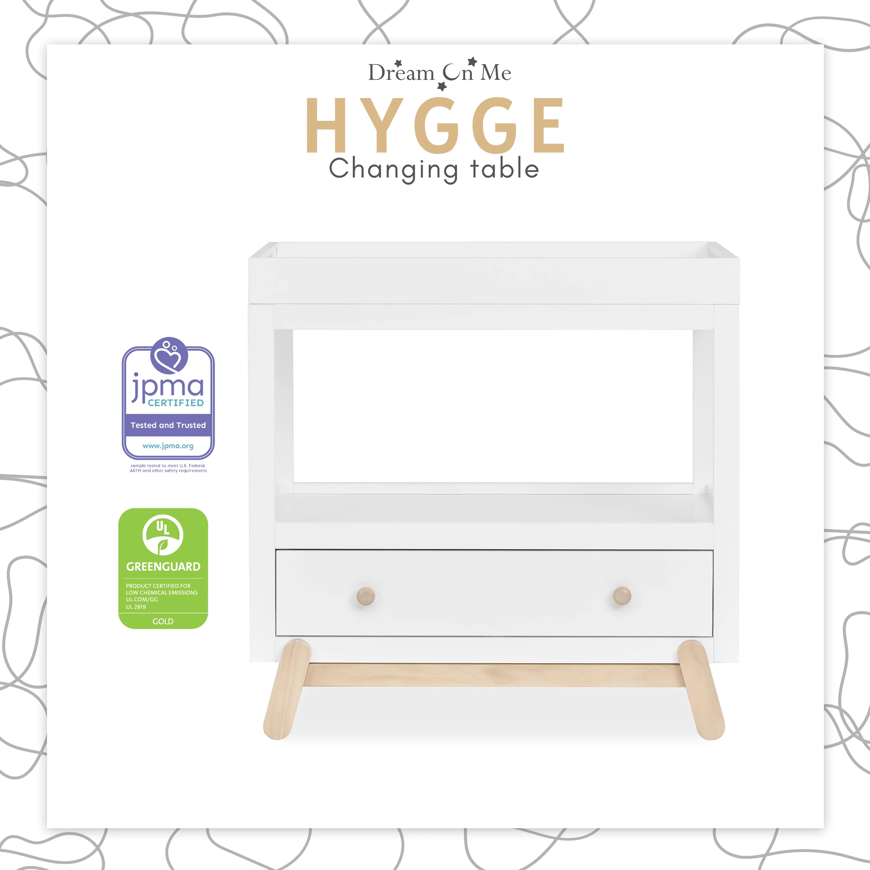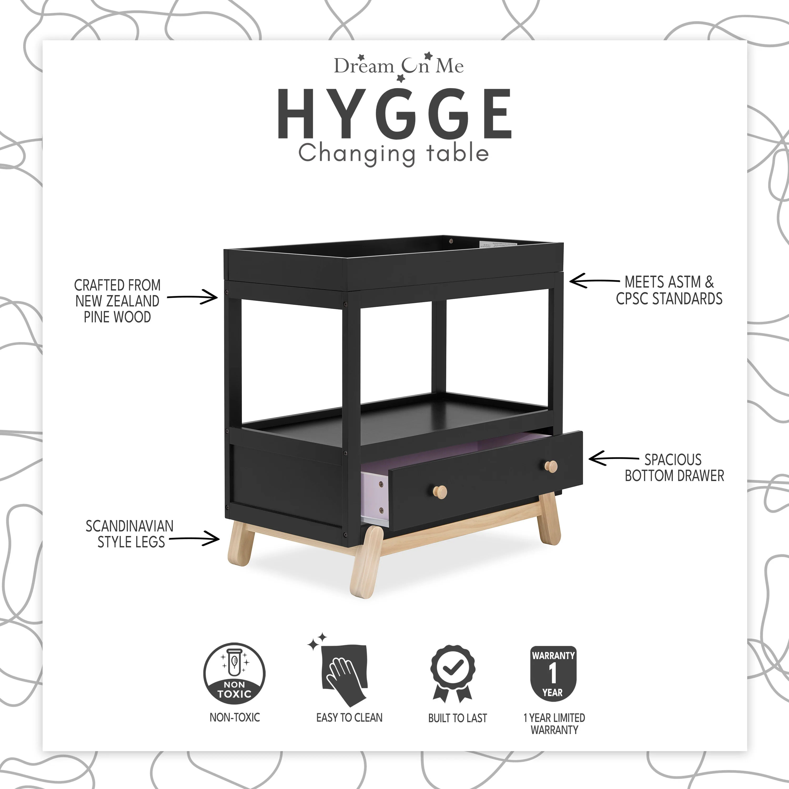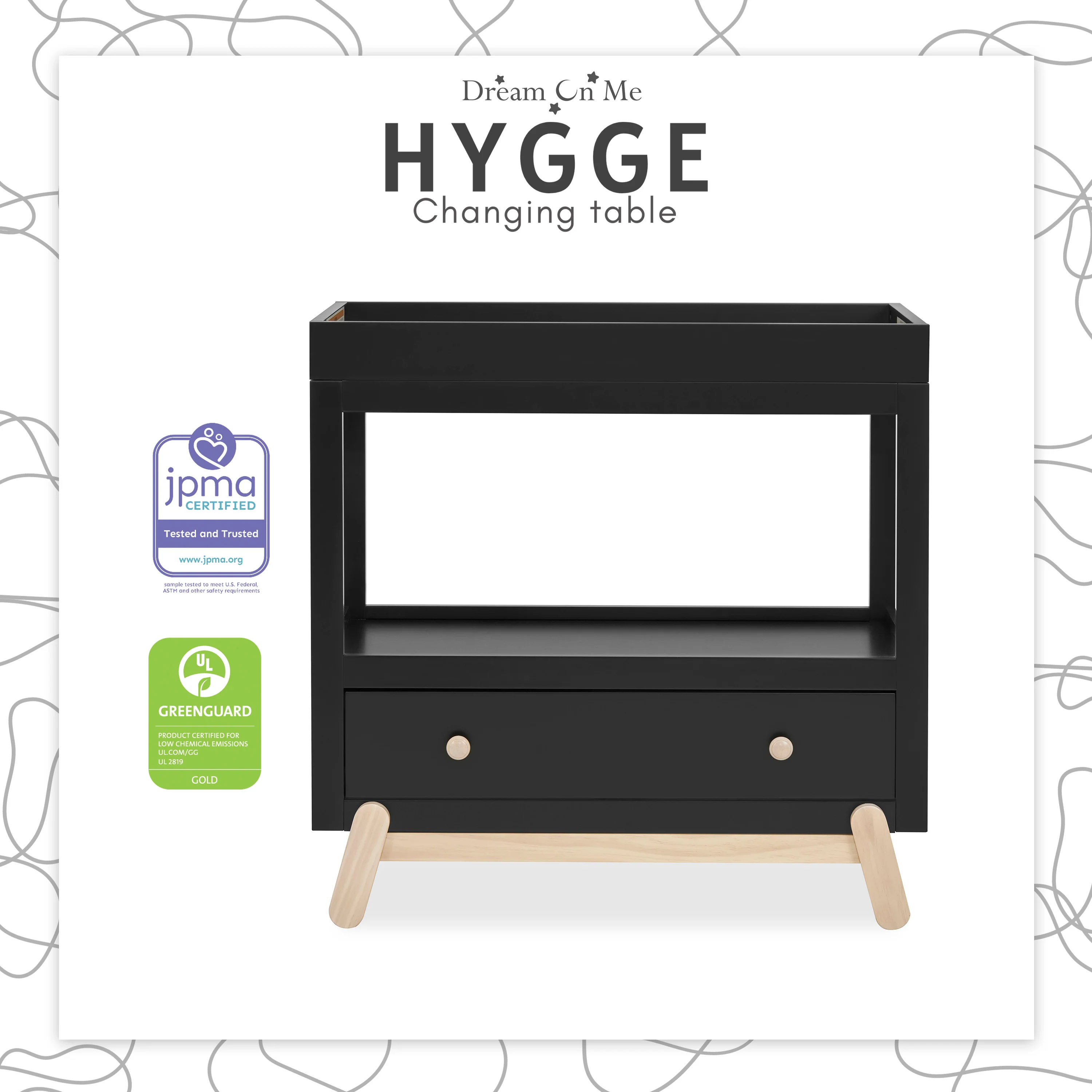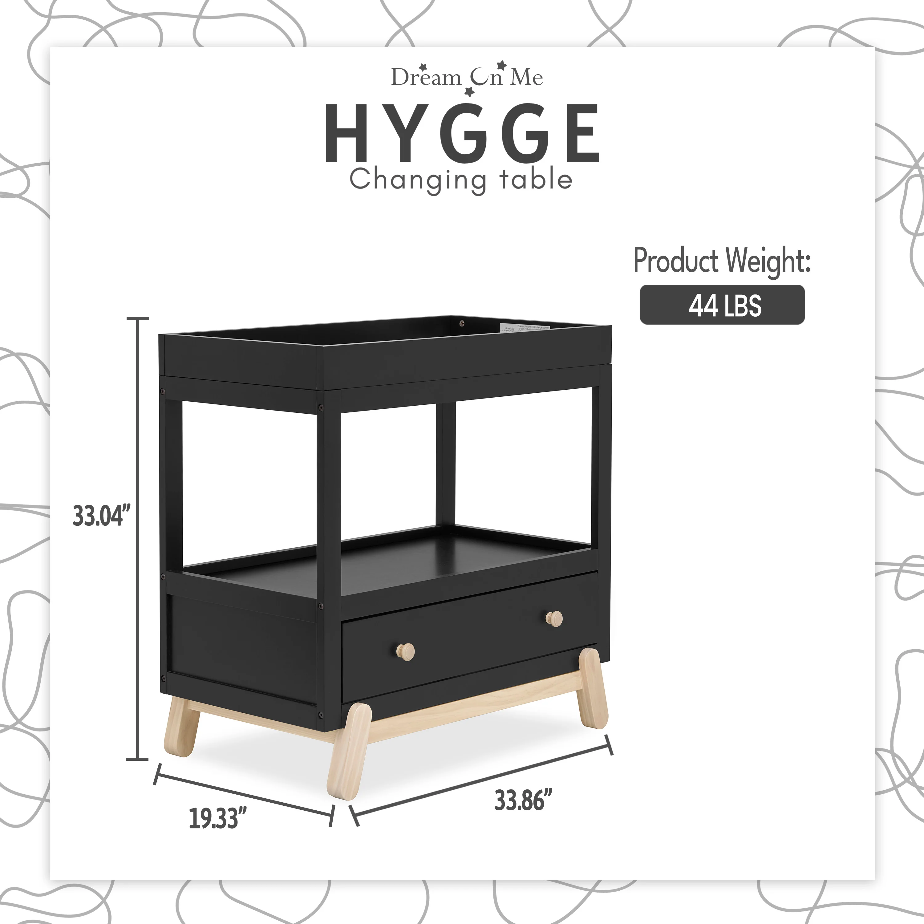 - THOUGHTFULLY DESIGNED: The Dream On Me Hygge Changing Table is easy to clean & comes in 2 elegant finishes- Matte Black Vintage Oak & White Vintage Oak.