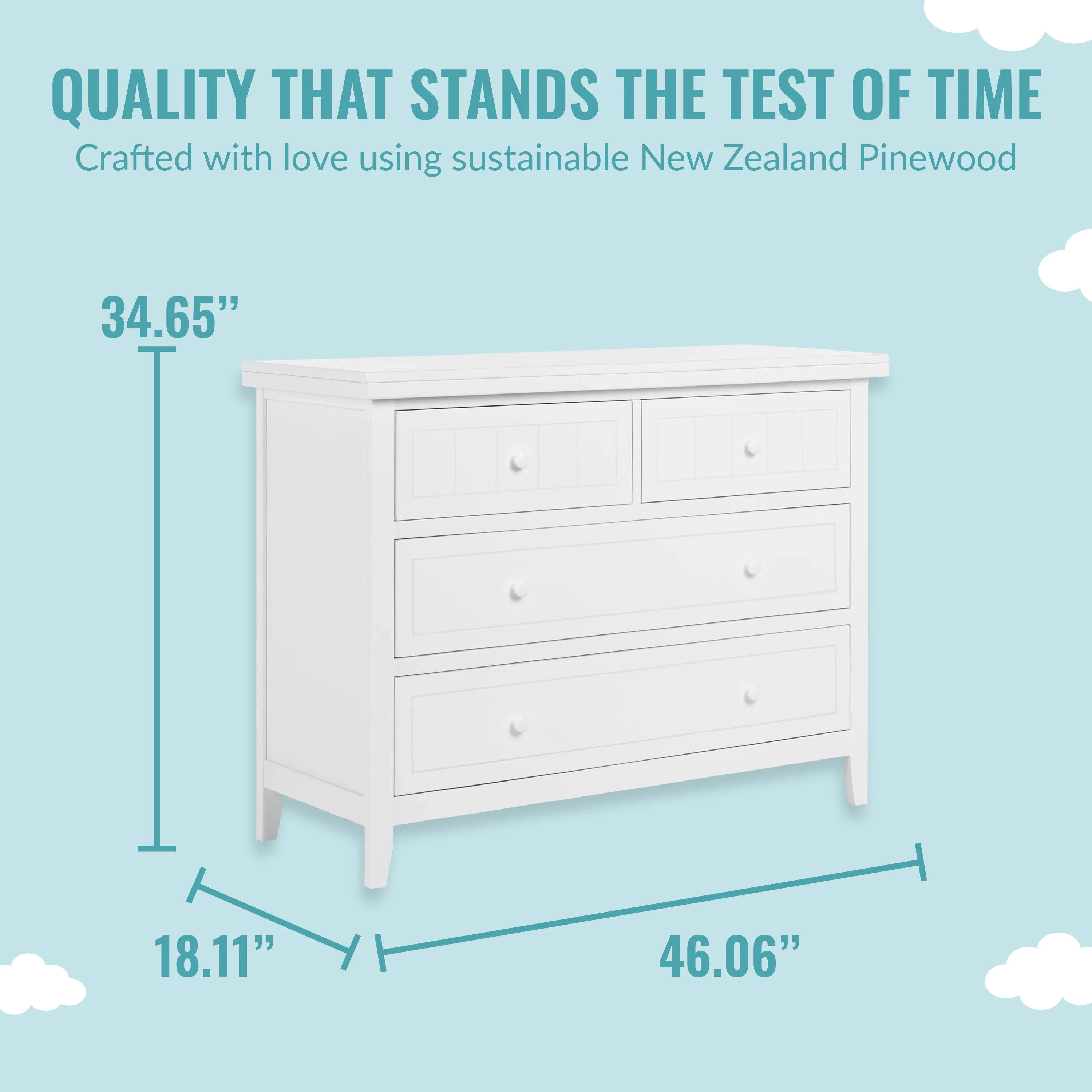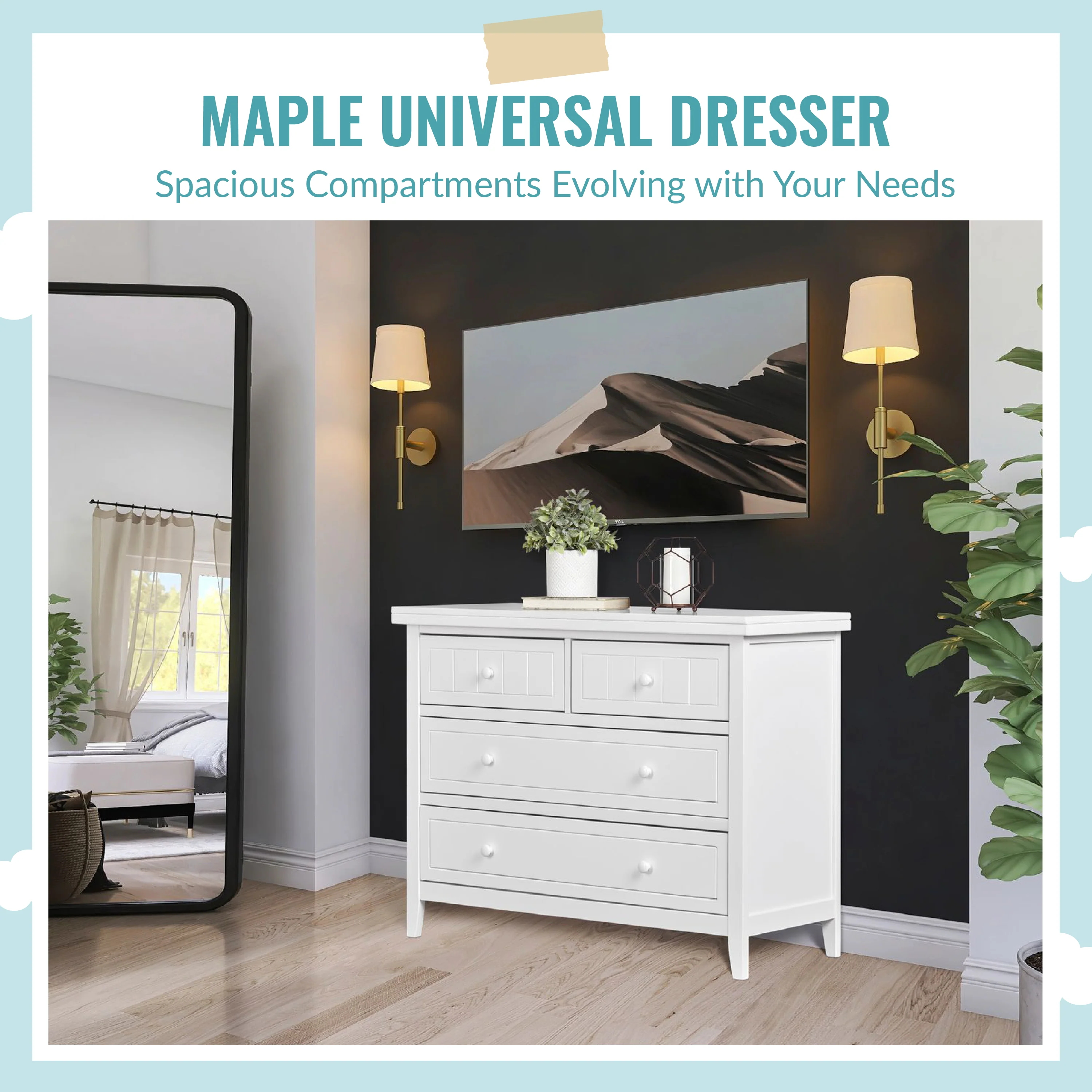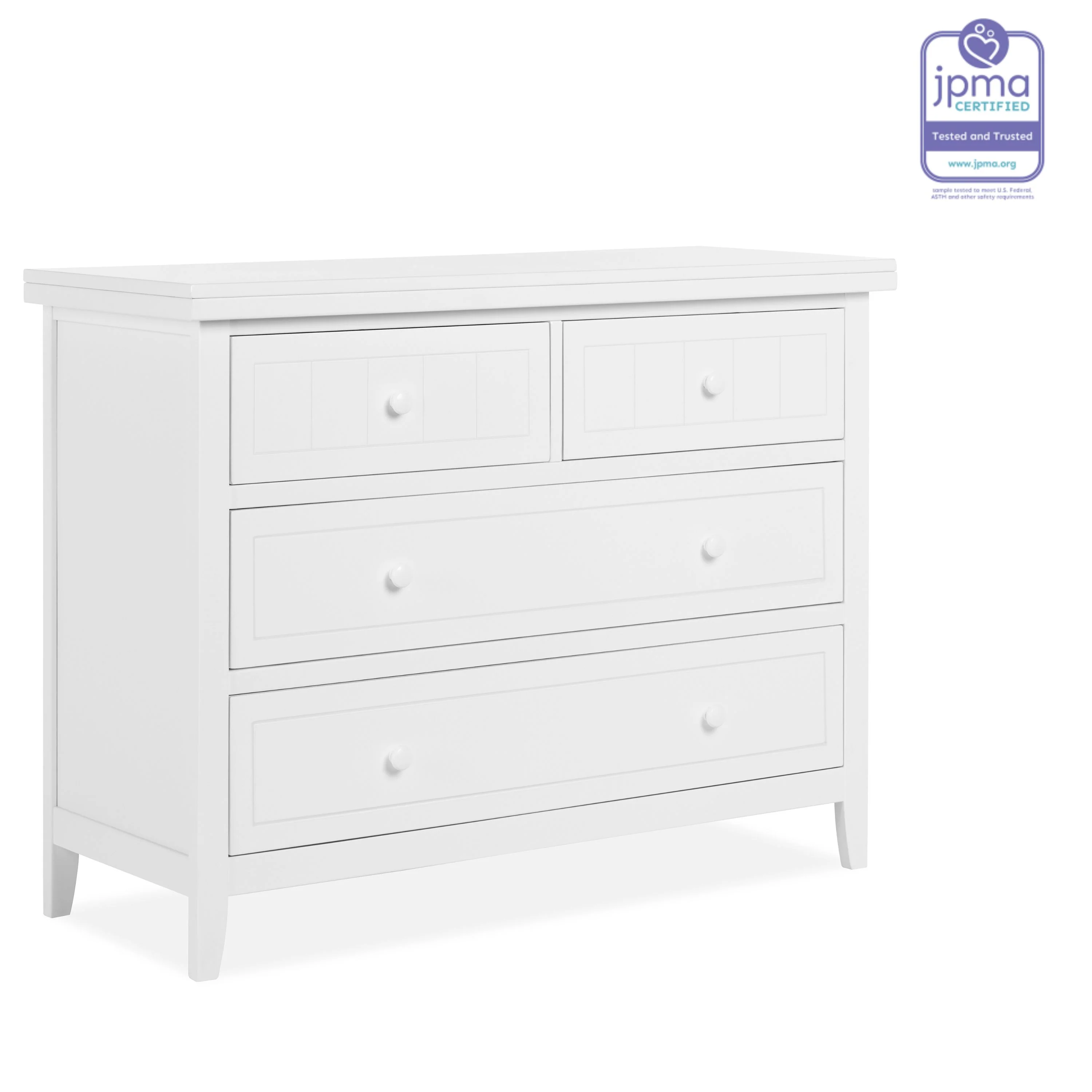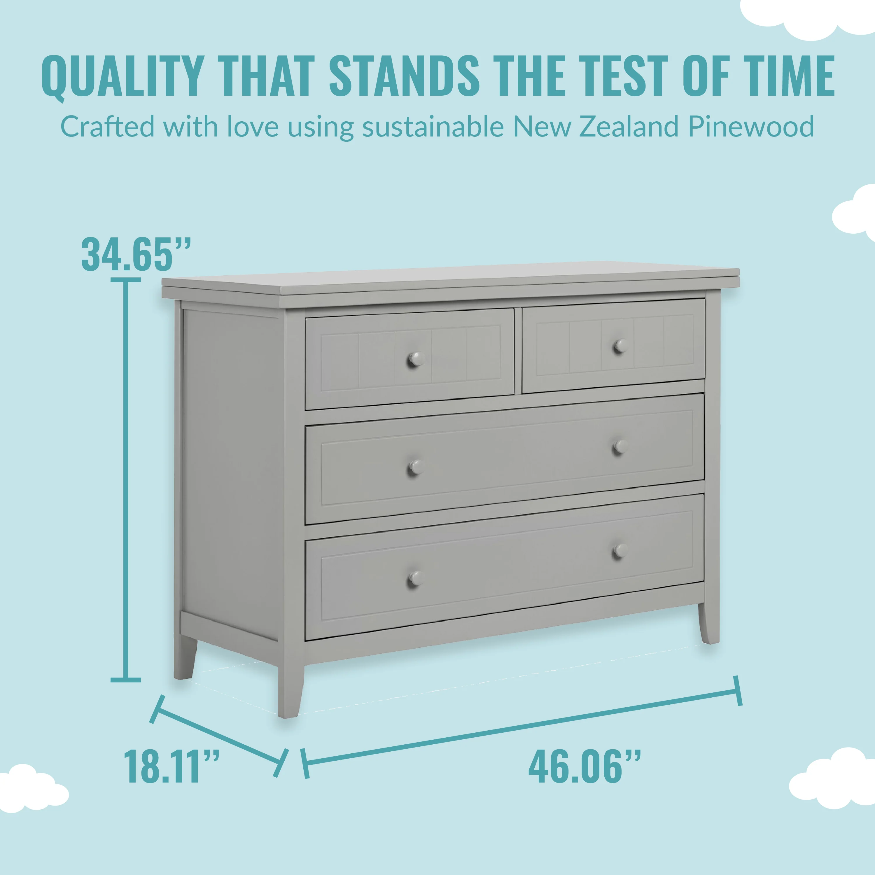 - DURABILITY & VERSATILE DESIGN: Comes with 4 spacious drawers and is designed to accommodate a Changing tray now and a Big kid dresser later!