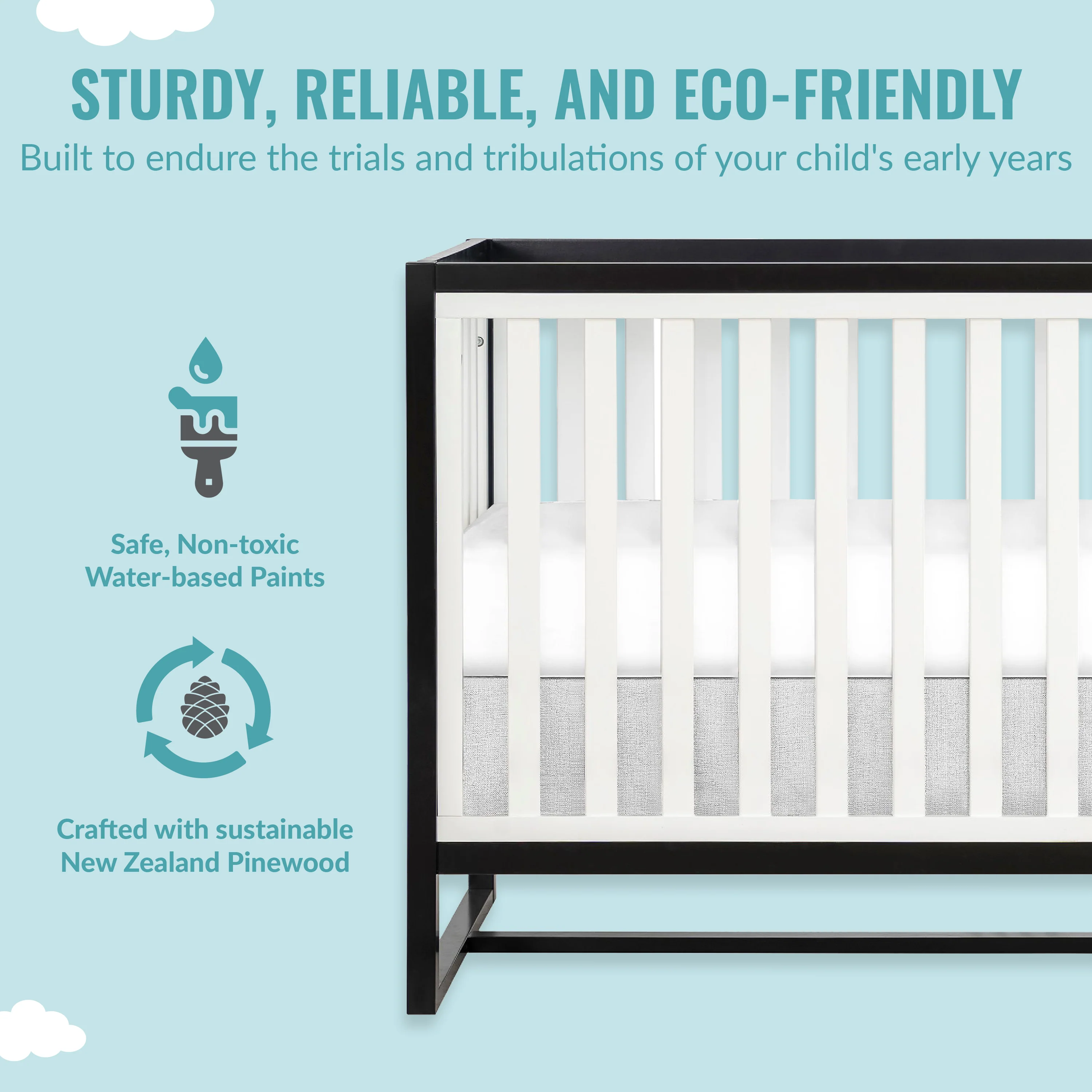 - Built of durable, sustainable, and renewable New Zealand pinewood, the Milo features a modern, gender-neutral design that fits beautifully into any nursery decor