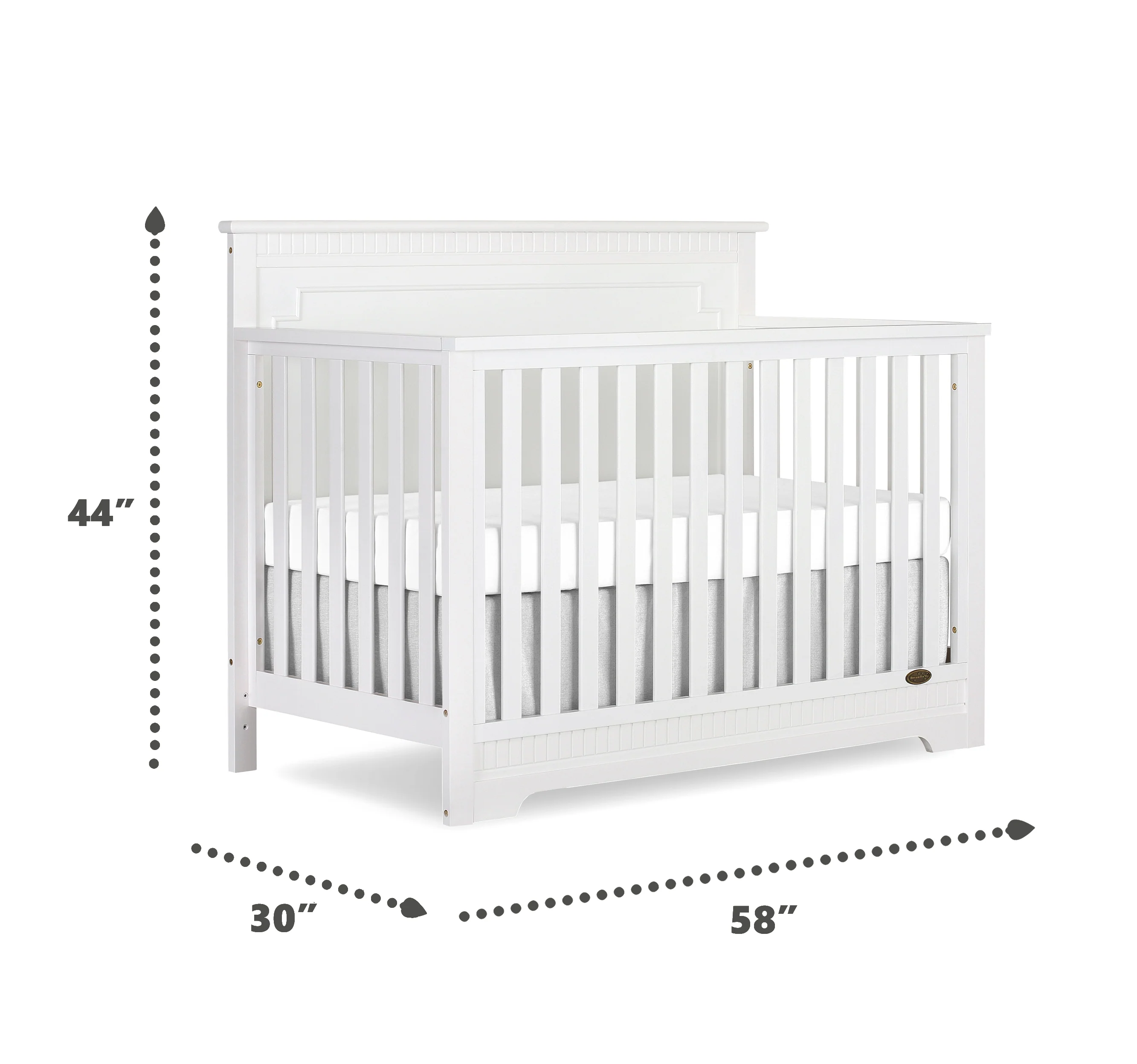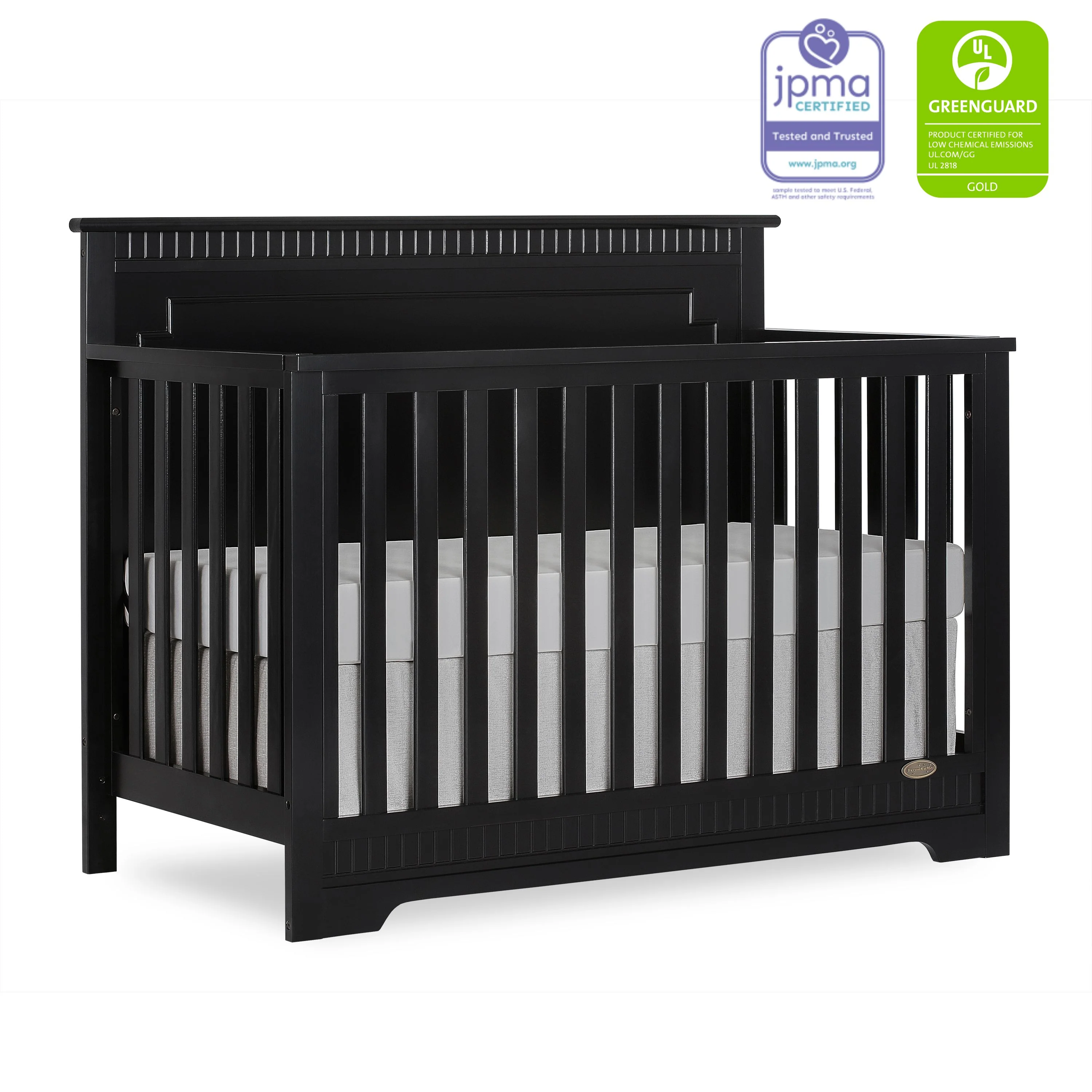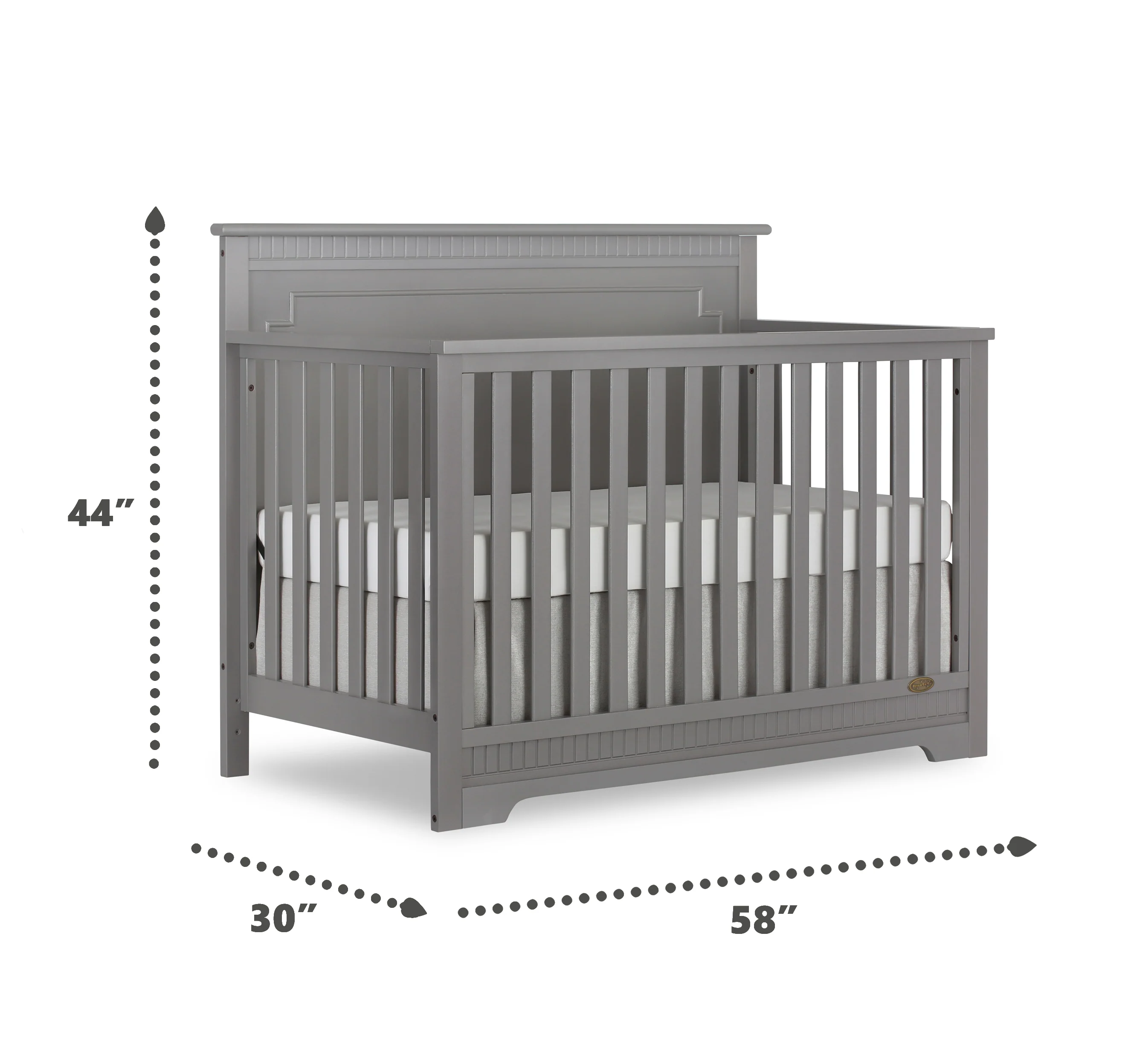 The Dream On Me Morgan inspired by the Boston sky line this modern , 5 in 1 convertible crib featuring full panel headboard connecting natural elements of wood with a flourish of decorator details. Its stylish flat-top headboard features dentil trim molding that lines the headboard and footboard. This crib offers a long term value converting into a charming toddler bed with our conversion kit ( sold separately ), daybed and theback panel converts to a full-size headboard with the simple addition of bed frame ( sold separately). The Morgan mattress platform adjusts to three different heights depending on the age of your baby. All Dream On Me cribs meets all applicable ASTM , CPSC and JPMA standards