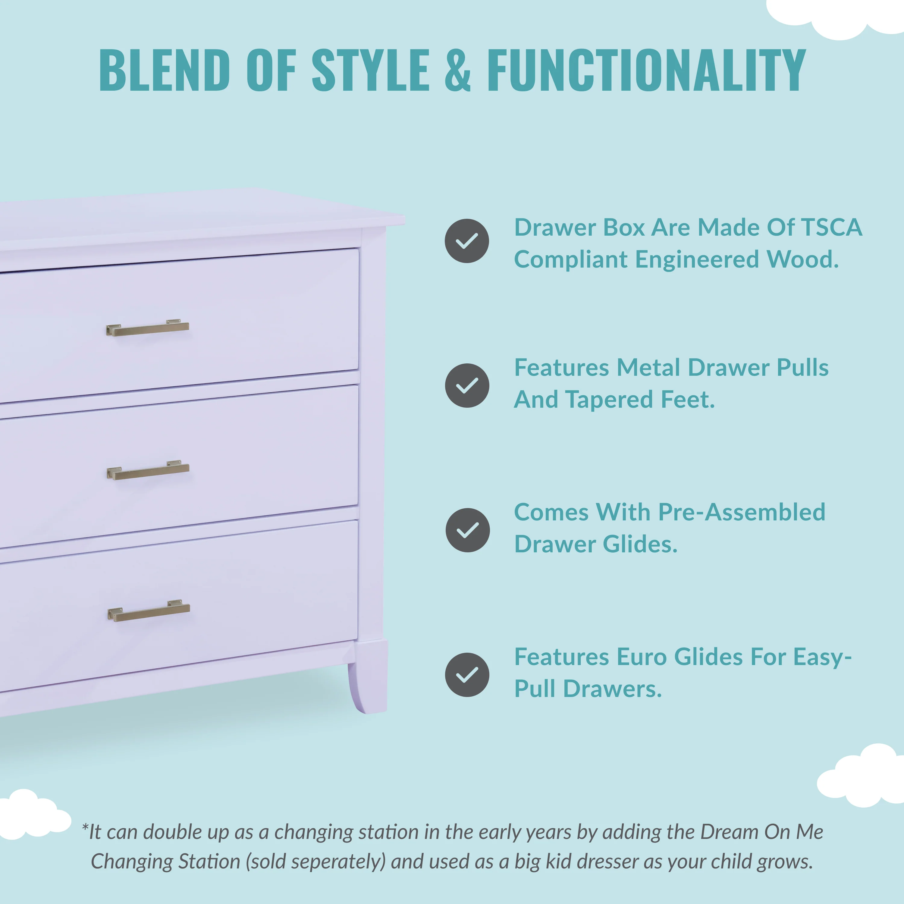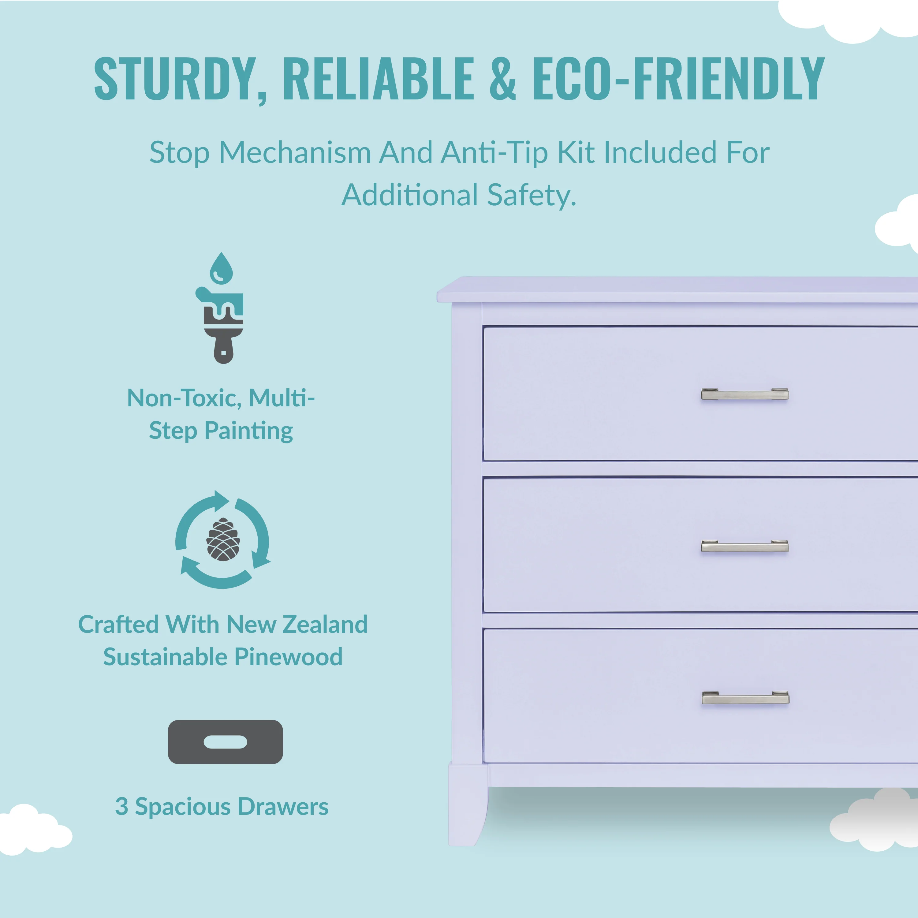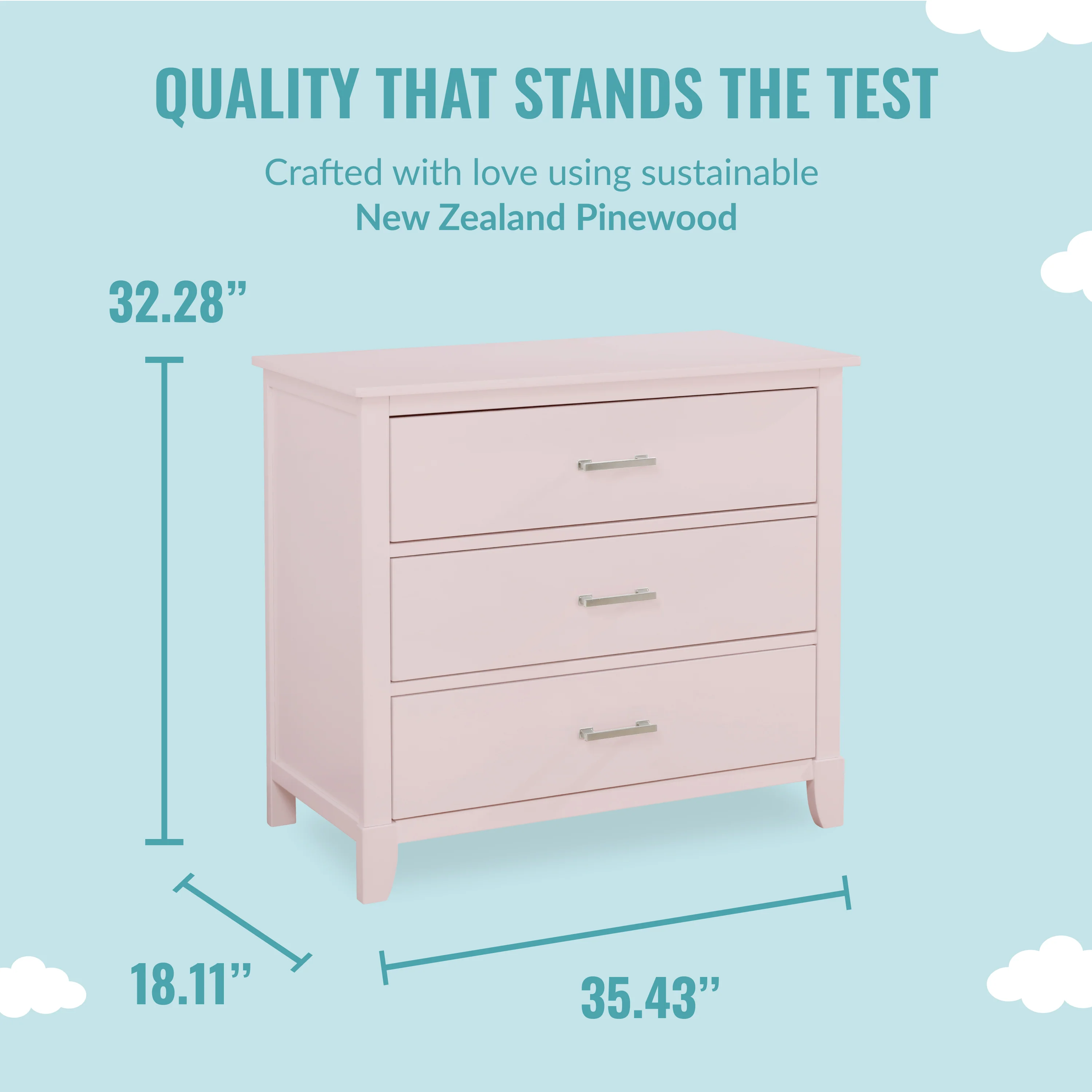 The Dream On Me Universal 3 Drawers Chest is a durable piece of nursery furniture that blends style with functionality. It comes with pre-assembled drawer glides making the assembly process a breeze. It has Euro glides which mean you can pull open drawers with ease even when your hands are full holding your LO! The Universal Chest’s classic design means it will blend with any decor theme and help you create an ageless space.