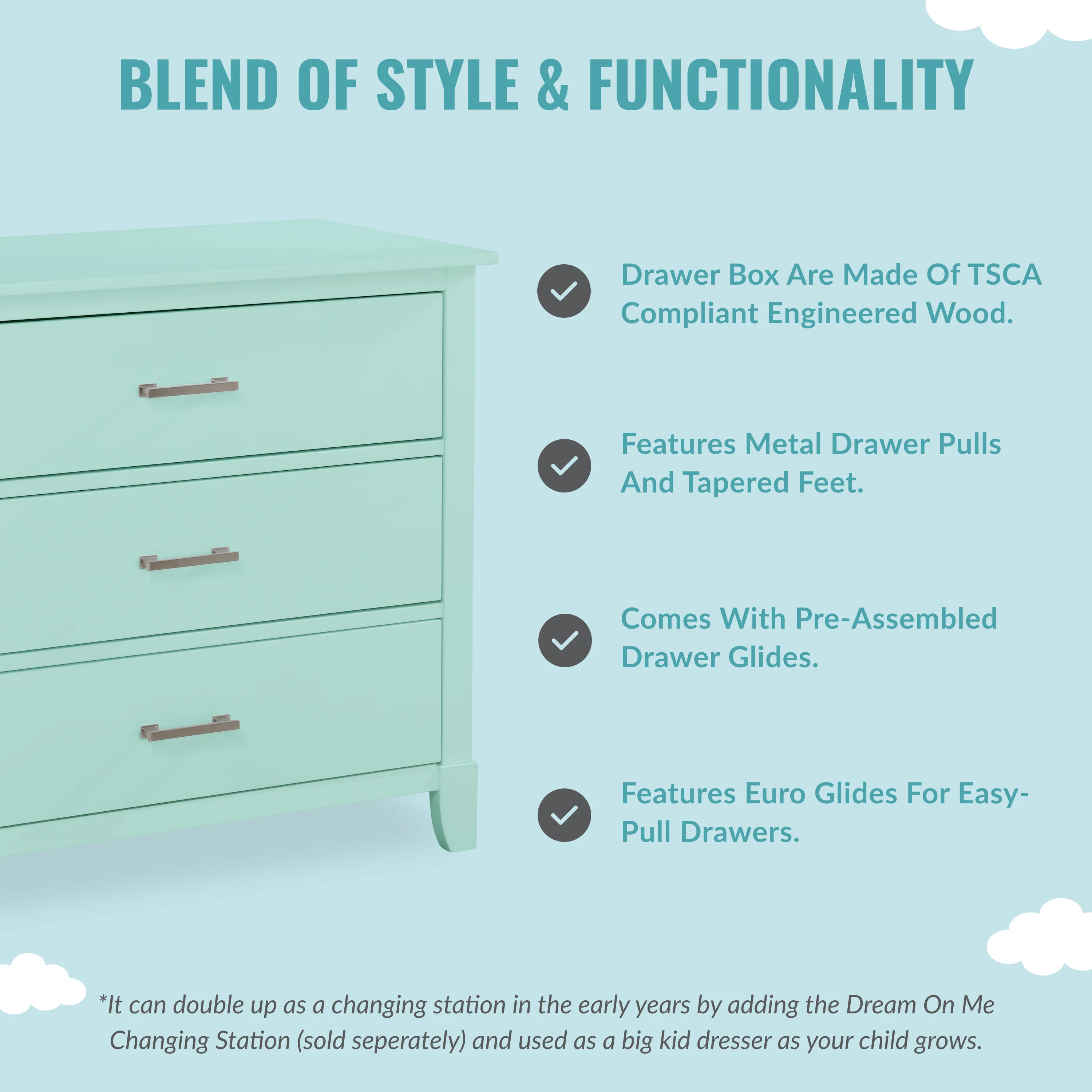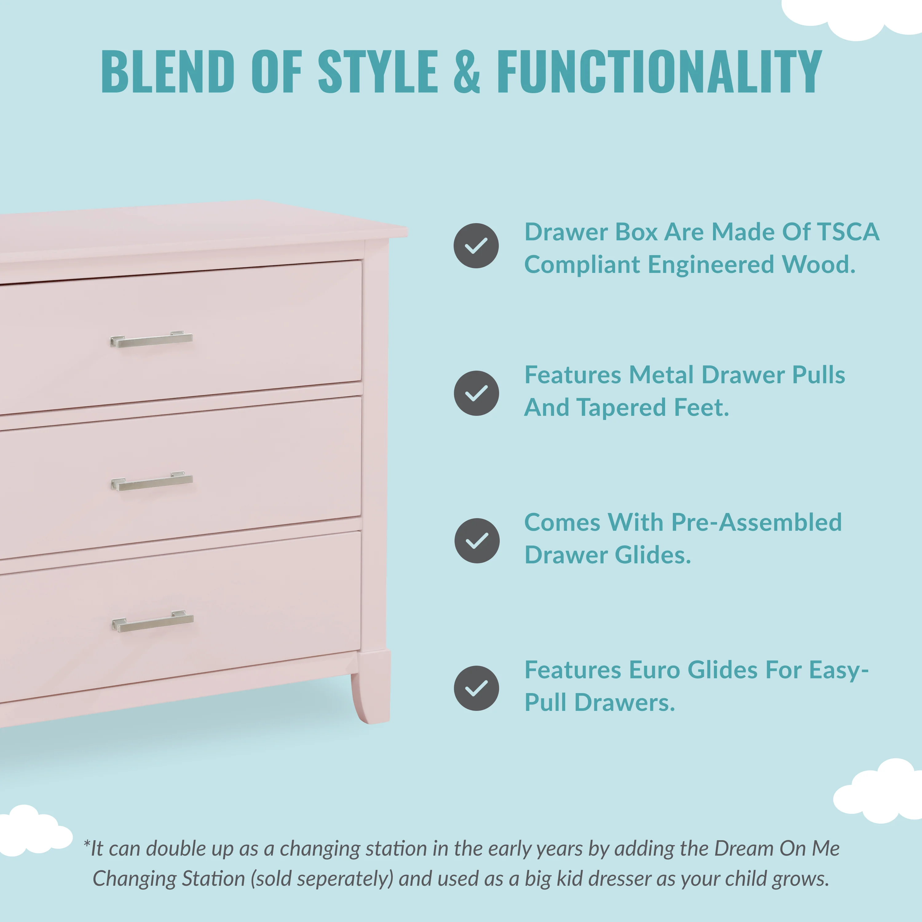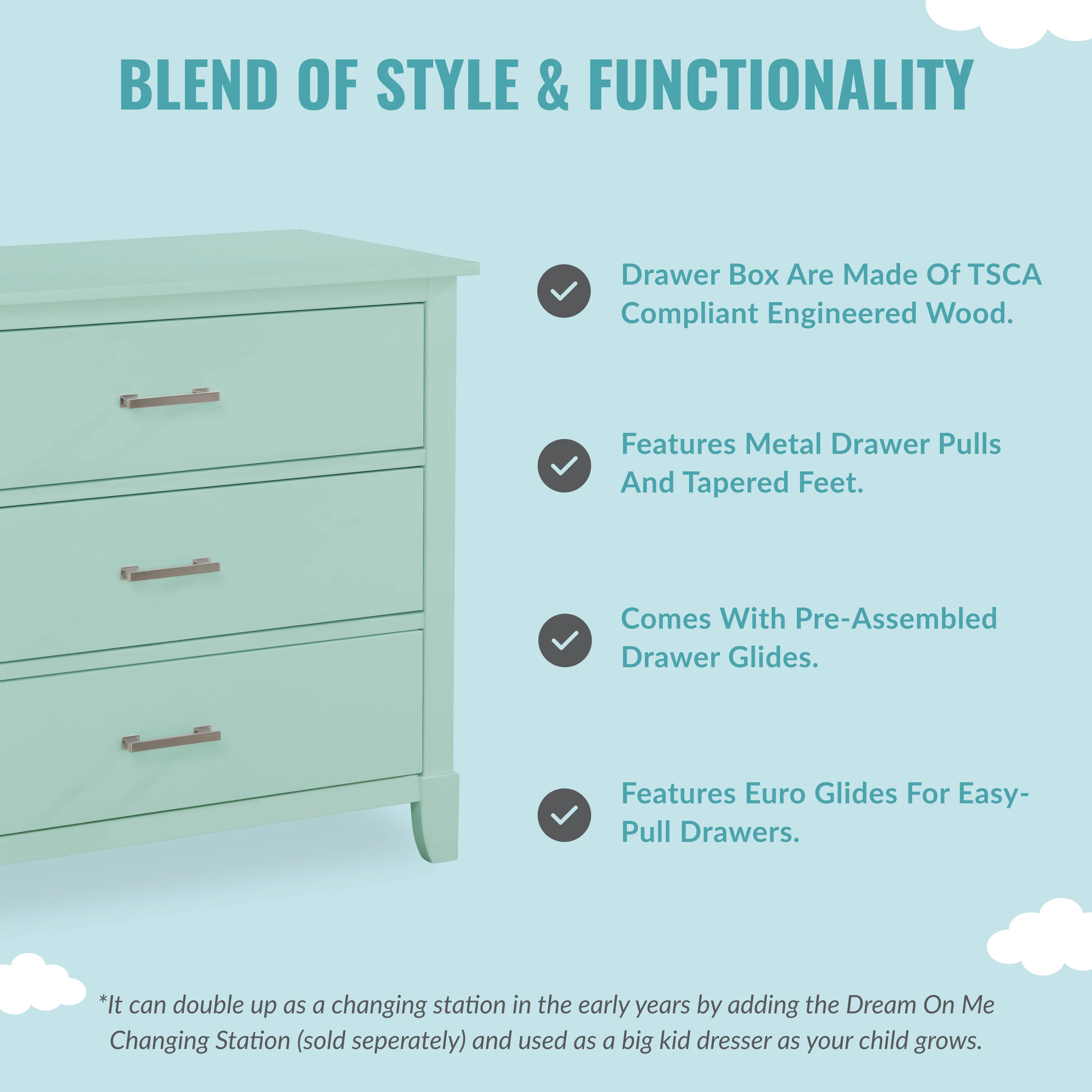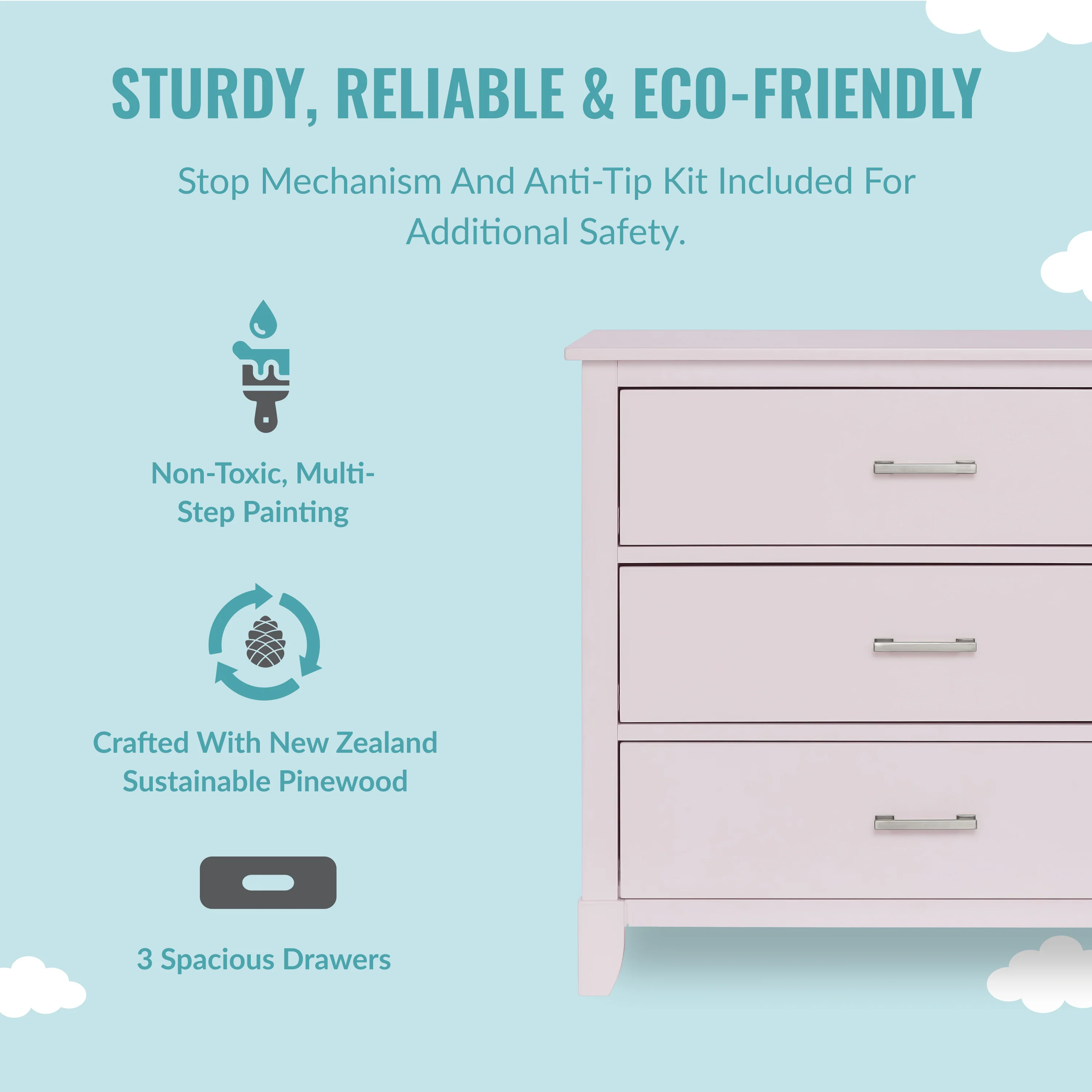 The Dream On Me Universal 3 Drawers Chest is a durable piece of nursery furniture that blends style with functionality. It comes with pre-assembled drawer glides making the assembly process a breeze. It has Euro glides which mean you can pull open drawers with ease even when your hands are full holding your LO! The Universal Chest’s classic design means it will blend with any decor theme and help you create an ageless space.