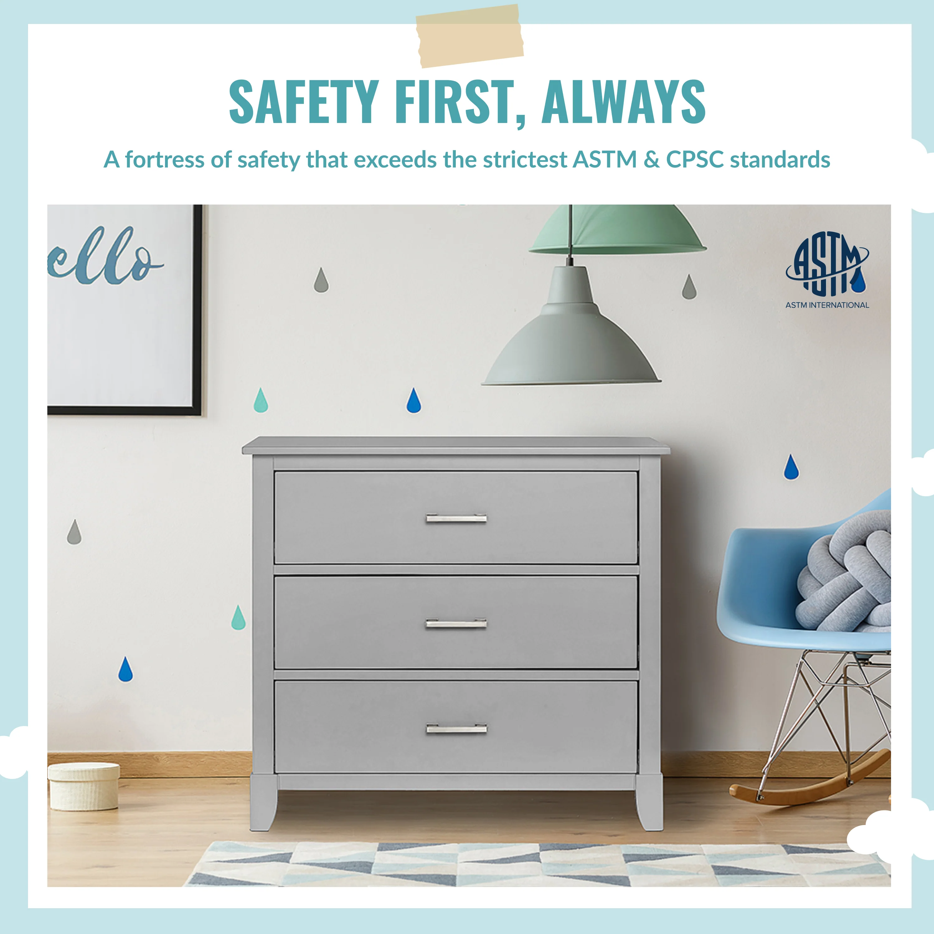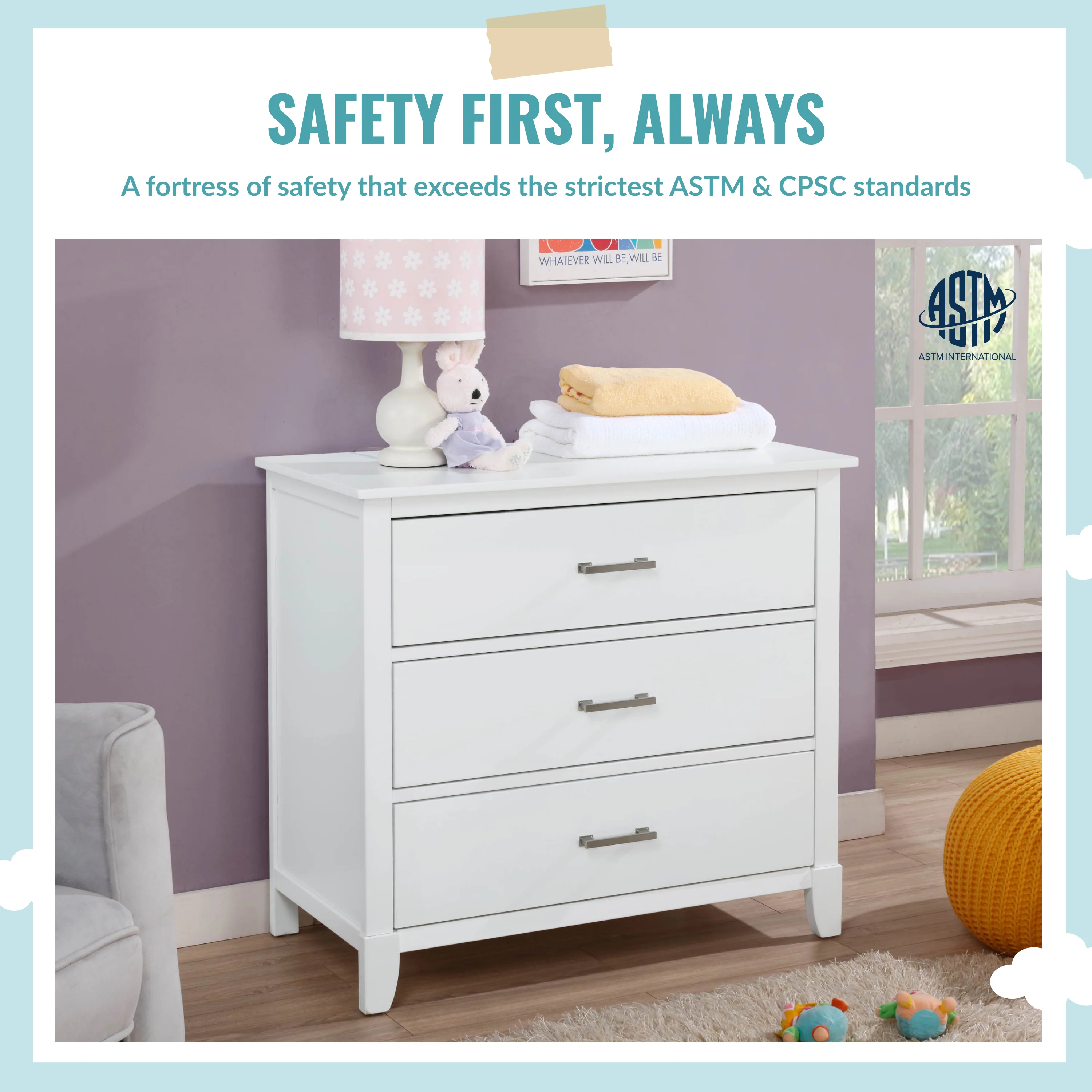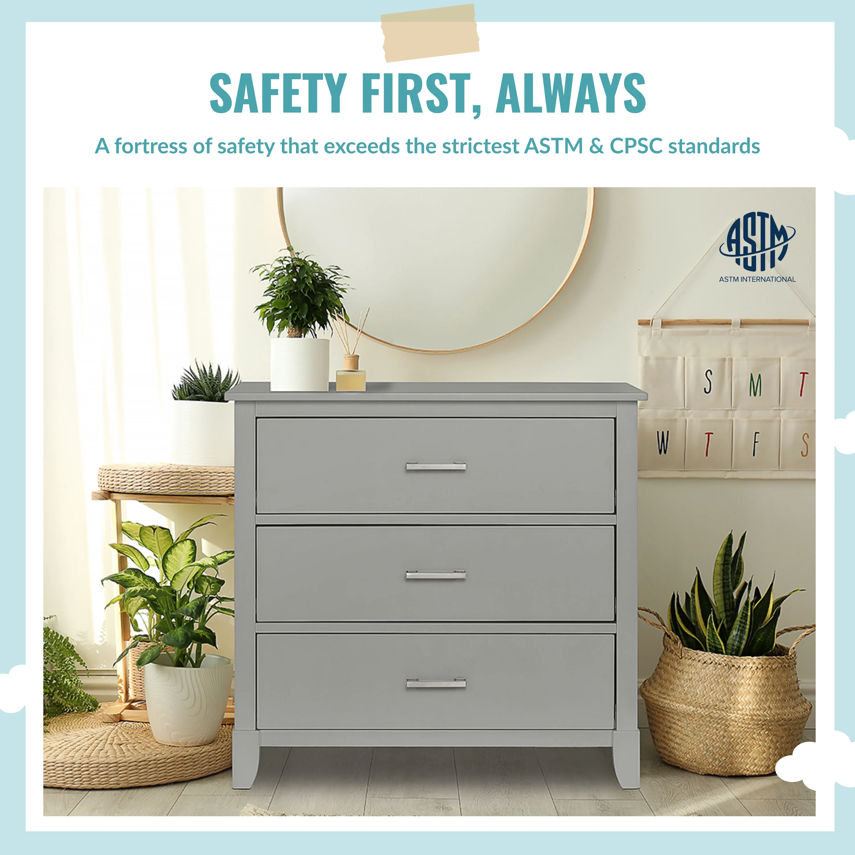 - AMPLE STORAGE SPACE: Three large, easy-glide, roomy drawers meet most of your storage needs. From baby clothes and accessories to blankets and linen, there is ample room for all your essentials