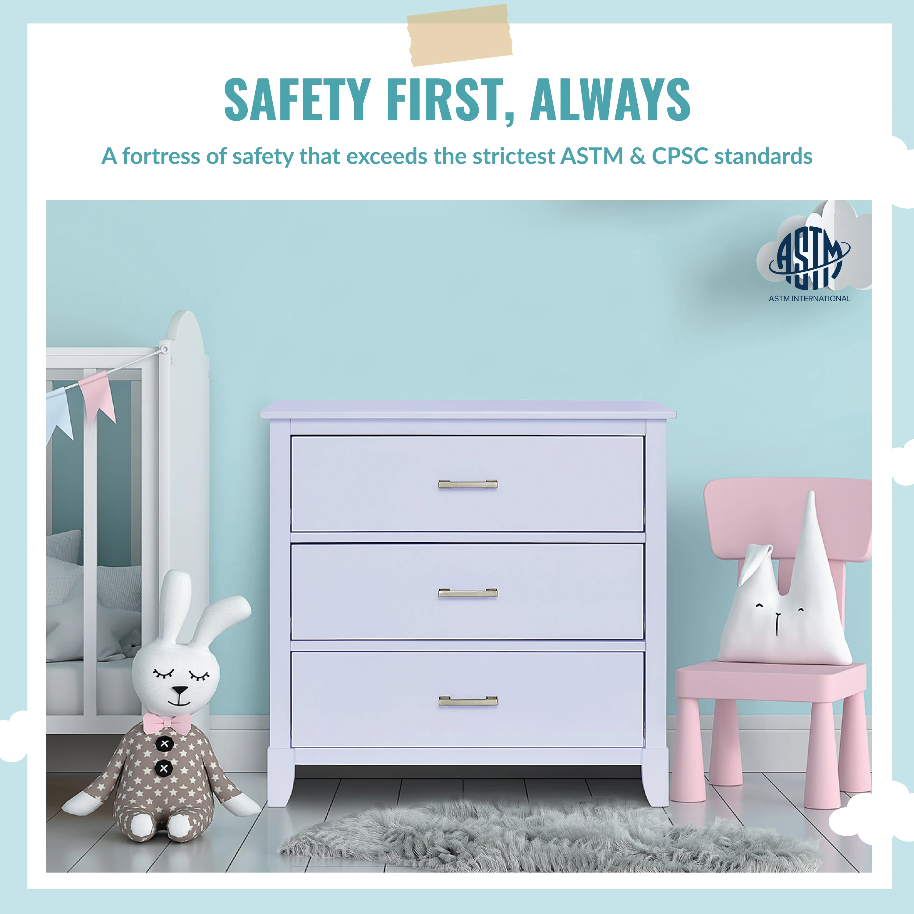 - SAFETY MATTERS: Finished in a non-toxic multi-step painting process; is lead and phthalate safe. The Universal Chest meets/exceeds ASTM/CPSC safety standards. Stop mechanism and anti-tip kit included for additional safety