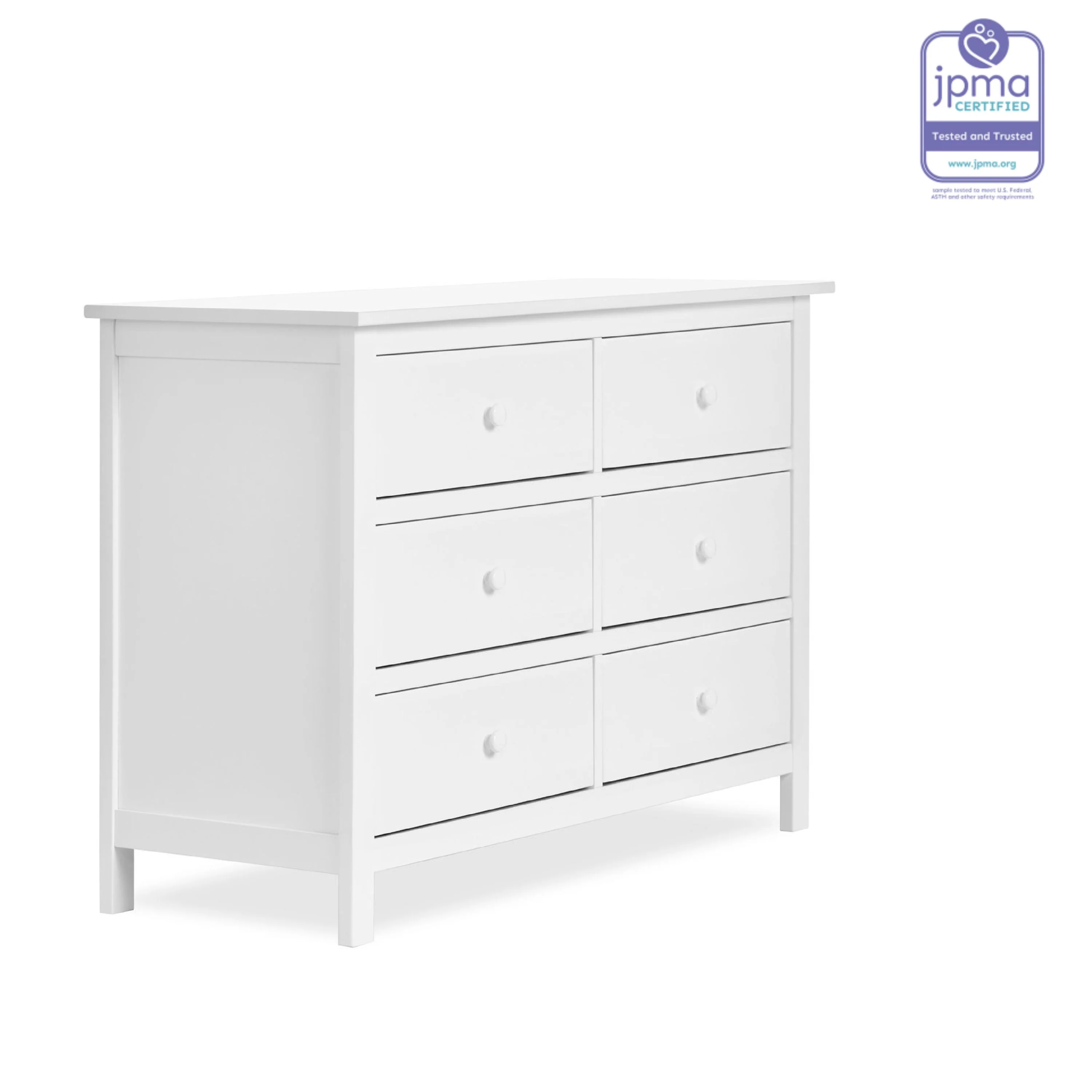 The Dream On Me Universal Double six drawers dresser offers a simple charm in a functional design. This dresser will make a wonderful addition to your child’s nursery or bedroom.
