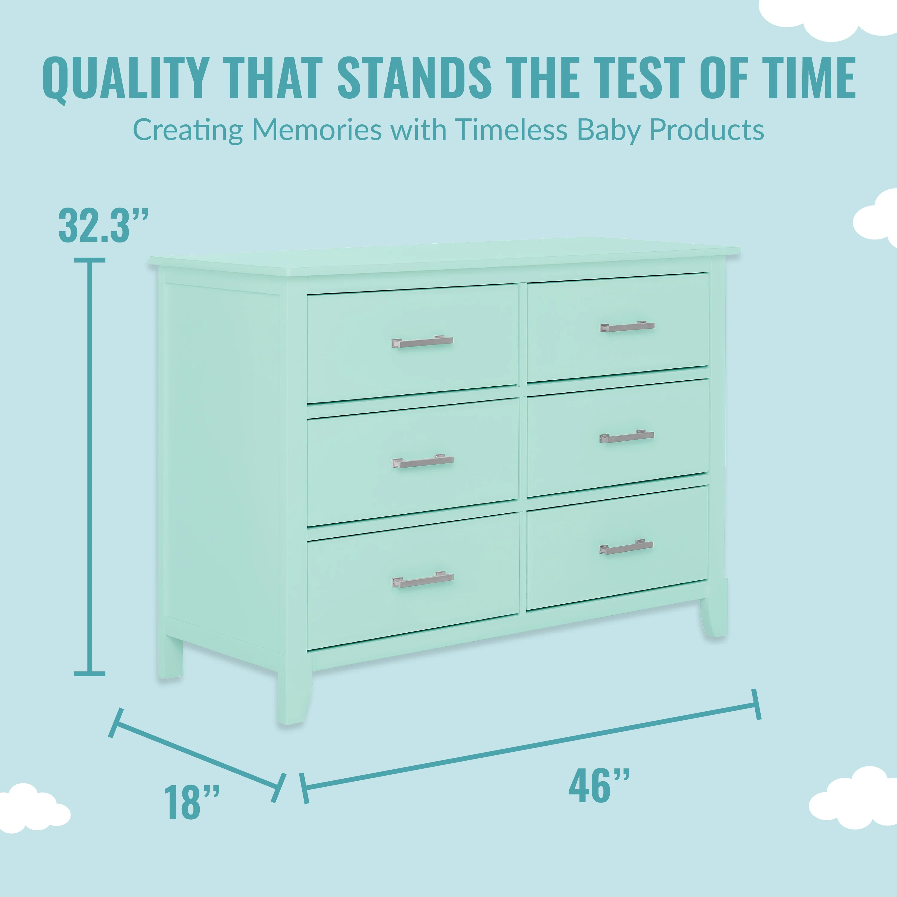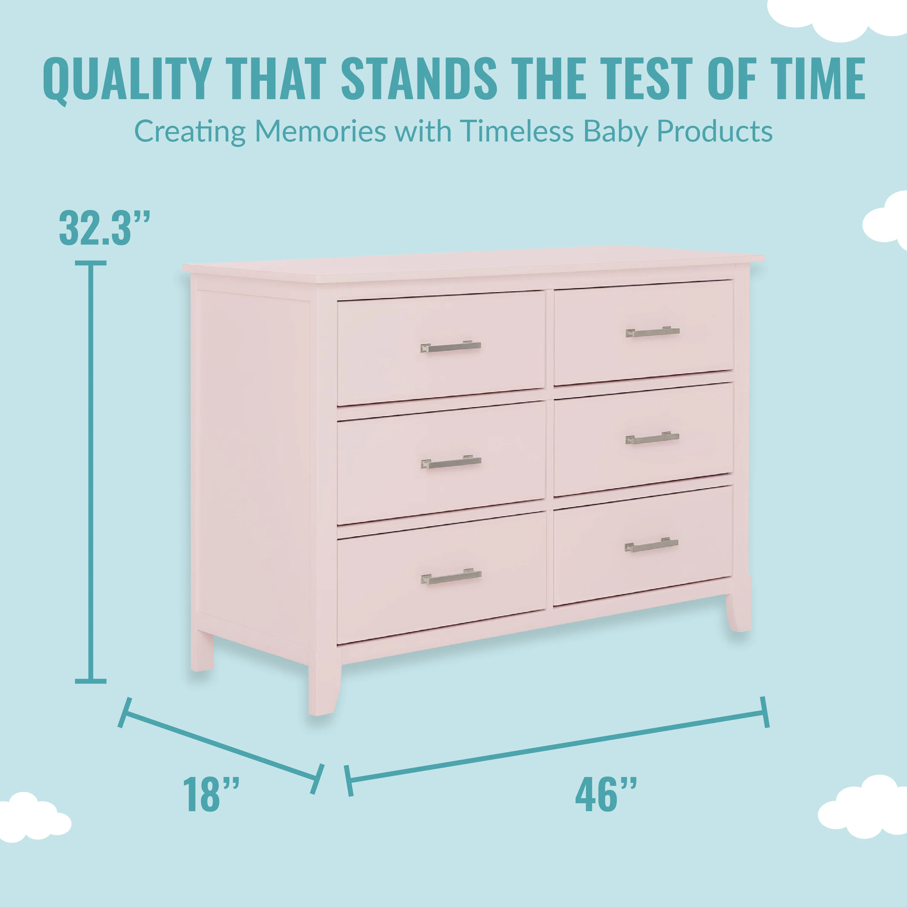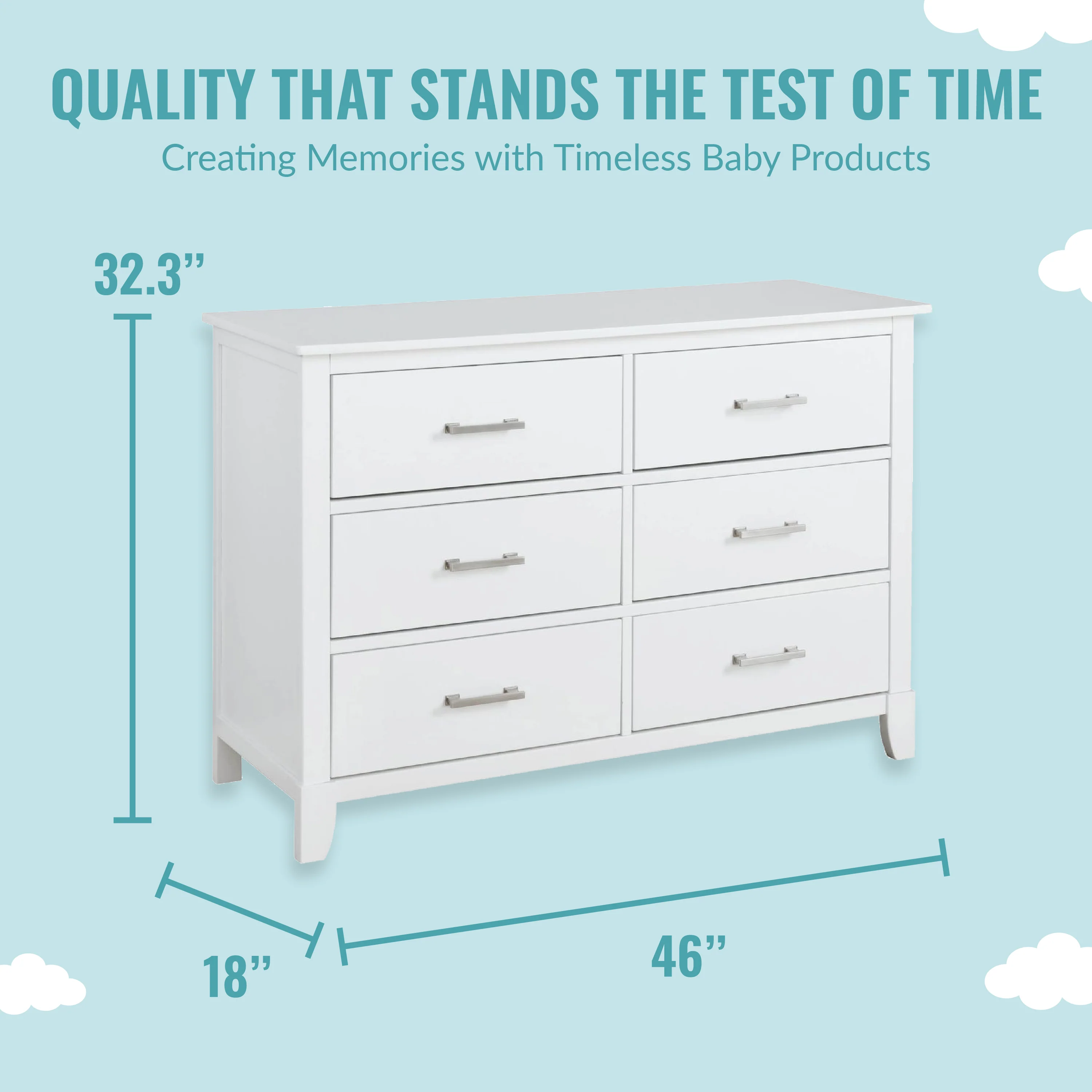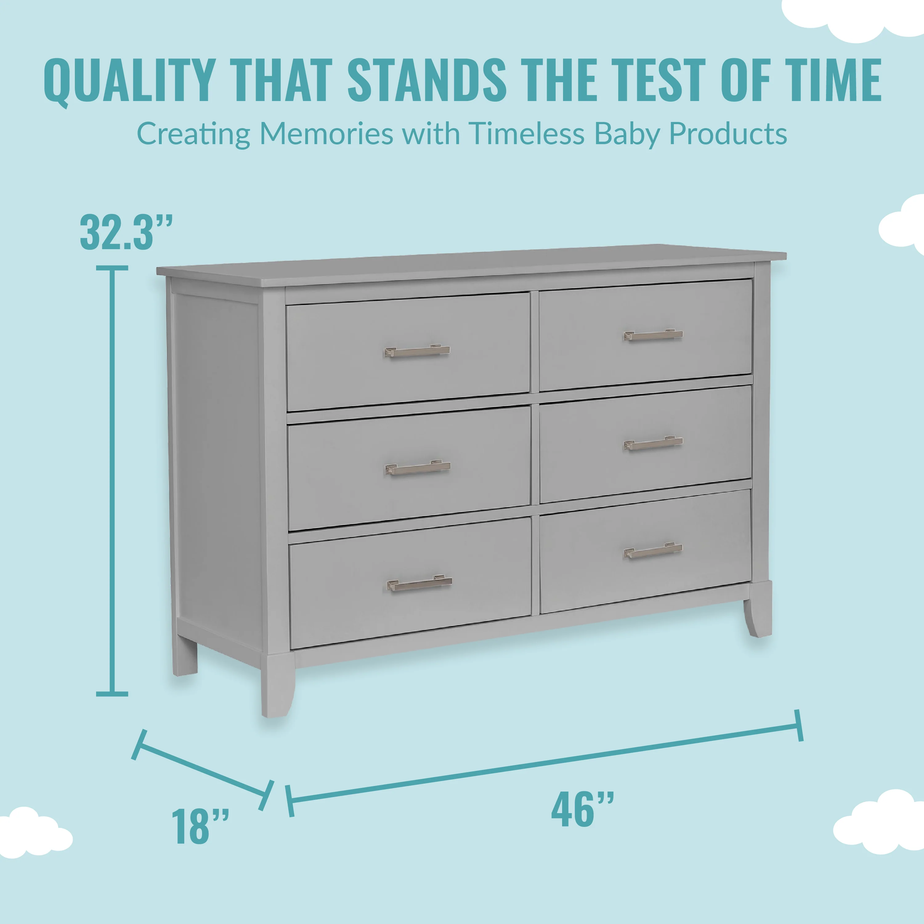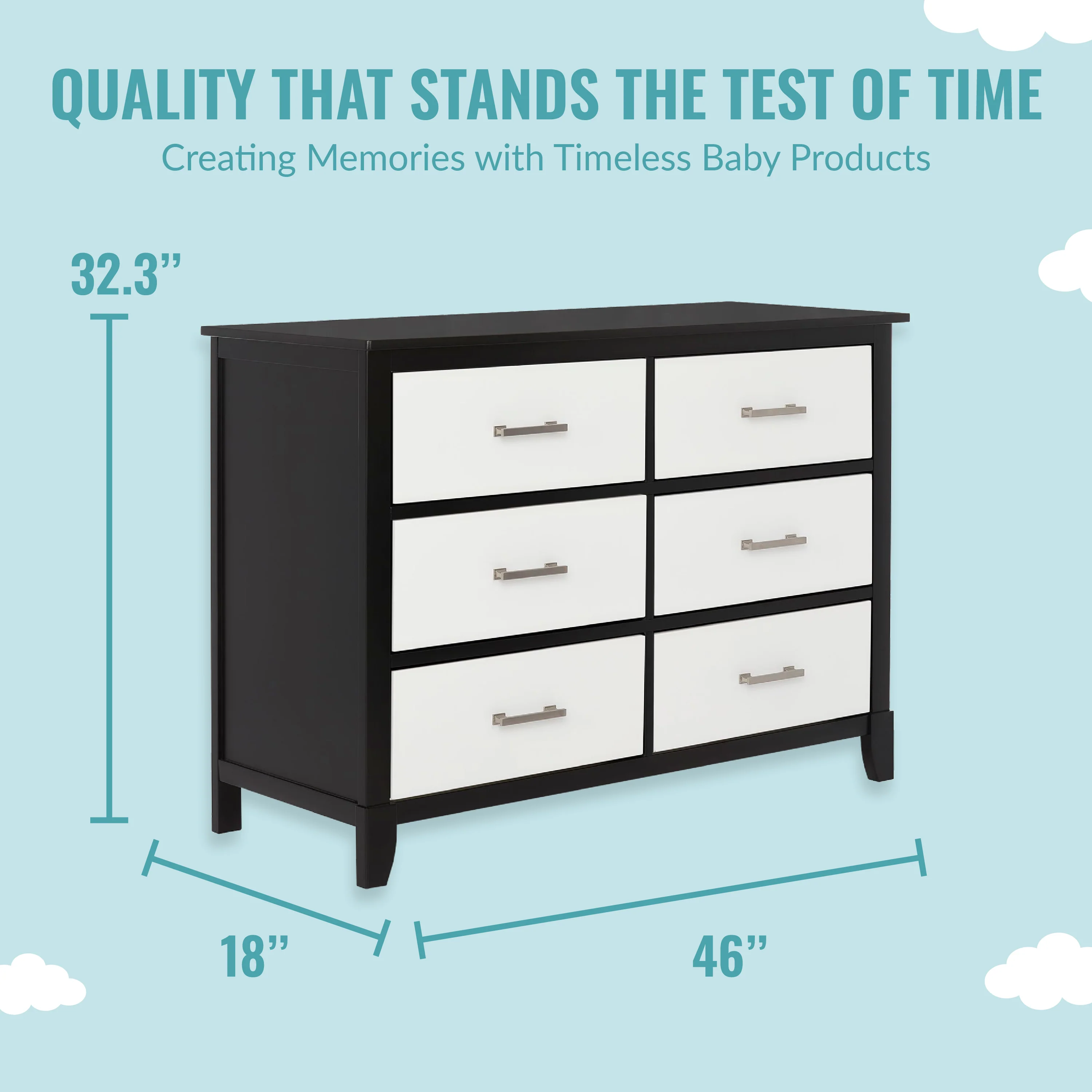 - MULTI USE: It has 6 spacious drawers to hold baby clothes, linen and more! It can double up as a changing station in the early years by adding the Dream On Me Changing Tray (sold seperately) and used as a big kid dresser as your child grows