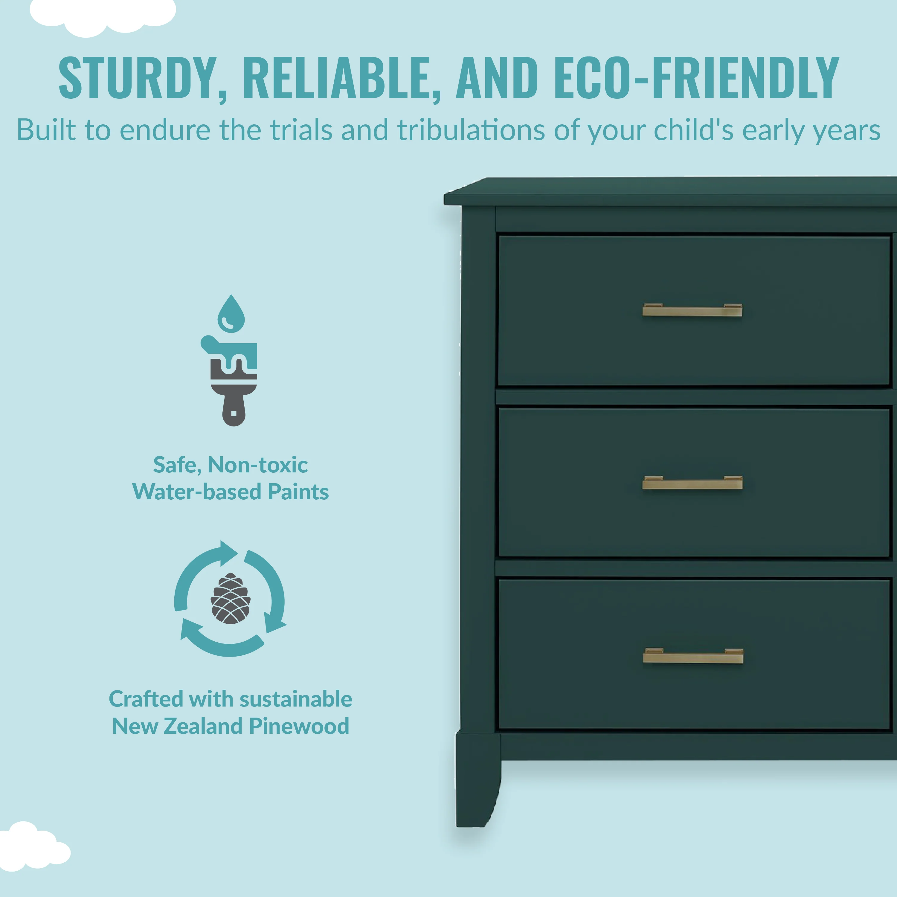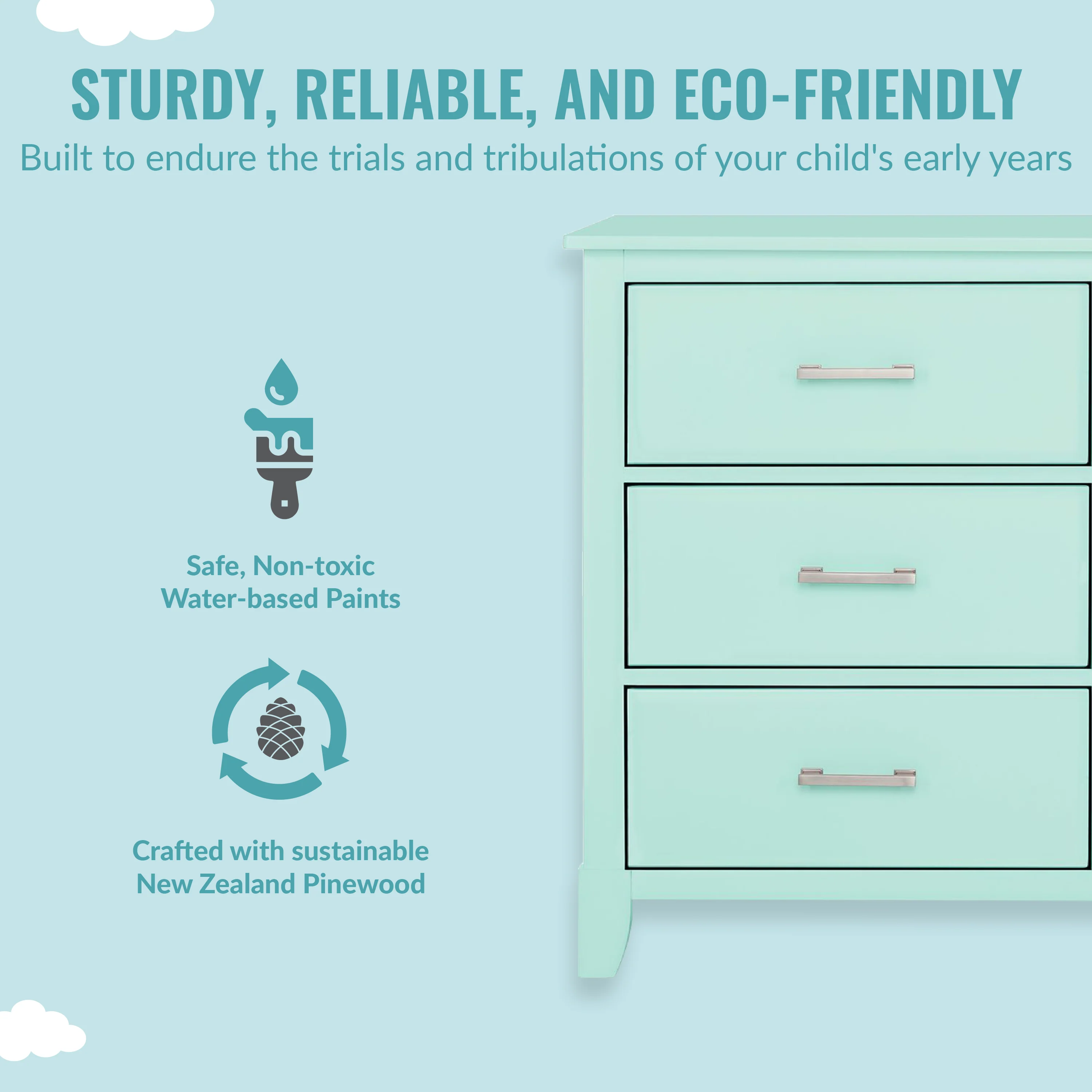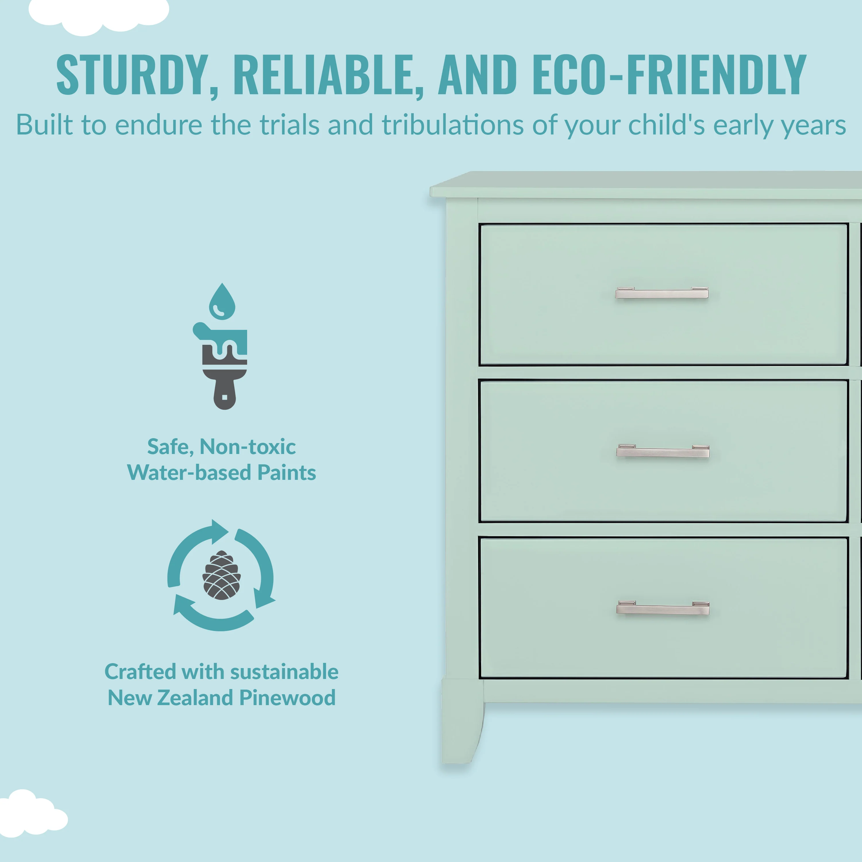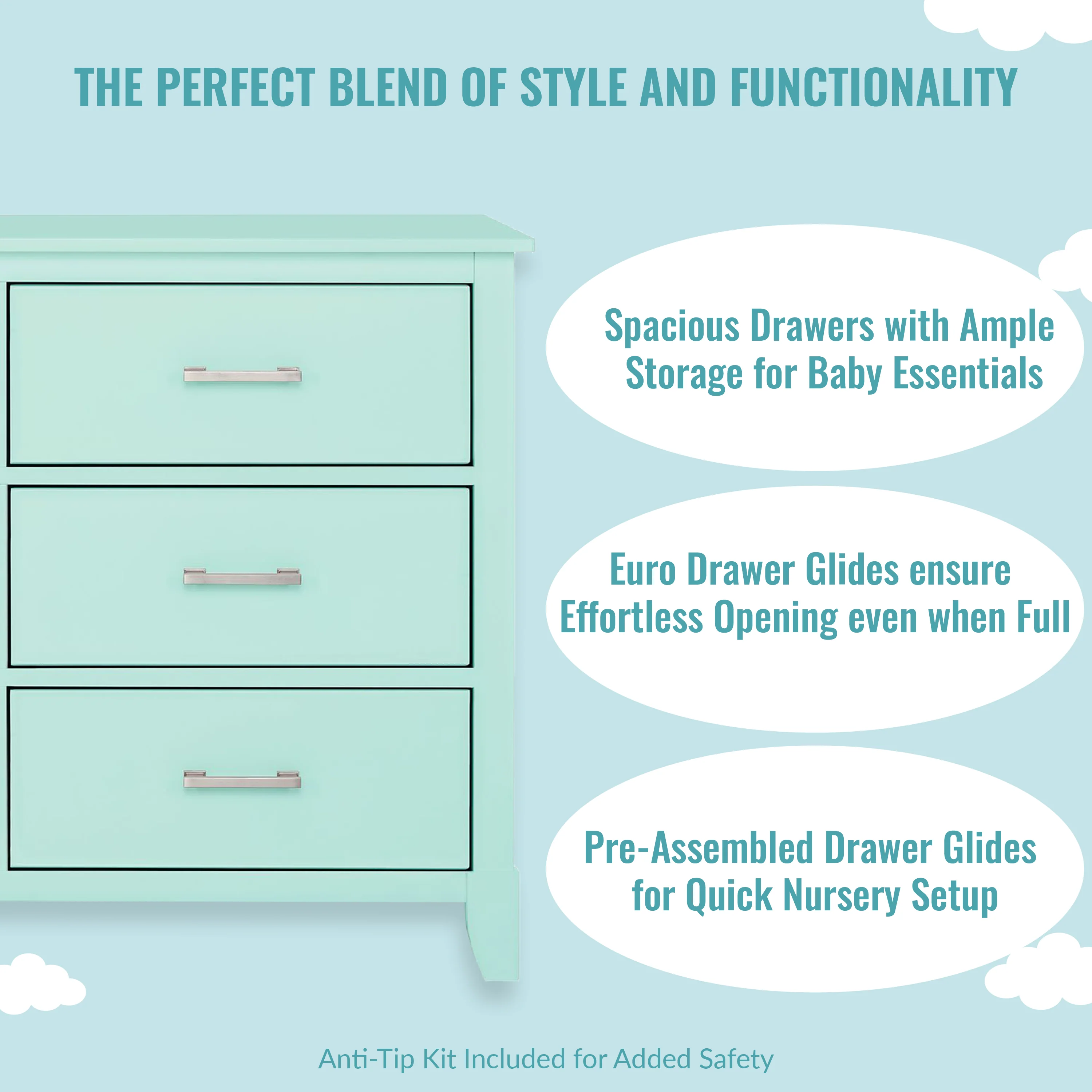 - SAFETY MATTERS: Finished in a non-toxic multi-step painting process and is lead and phthalate safe. The Universal Dresser meets/exceeds ASTM/CPSC safety standards. Stop mechanism and anti-tip kit included for additional safety