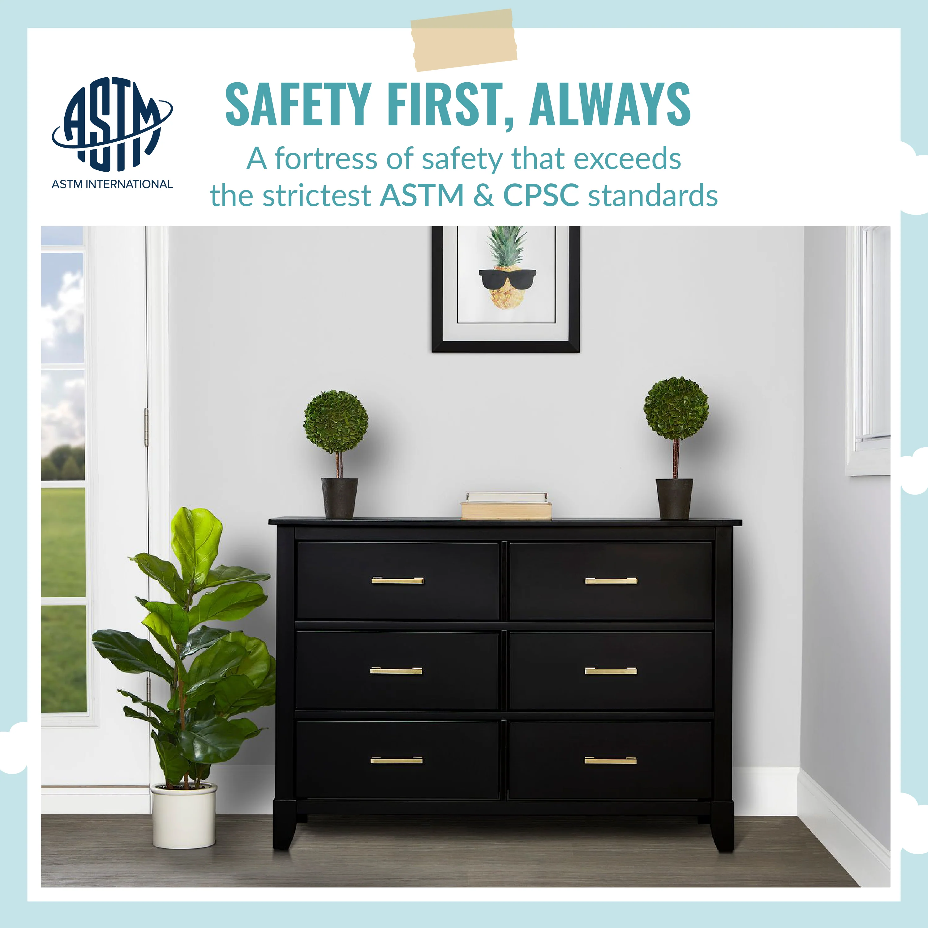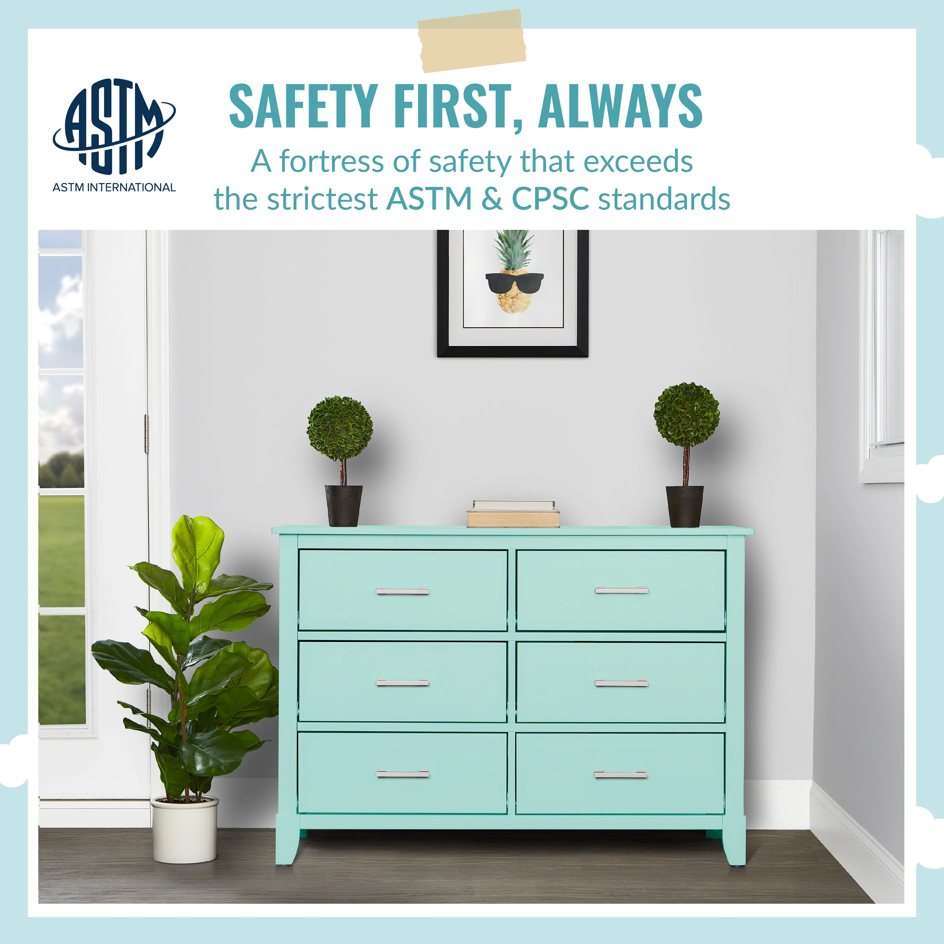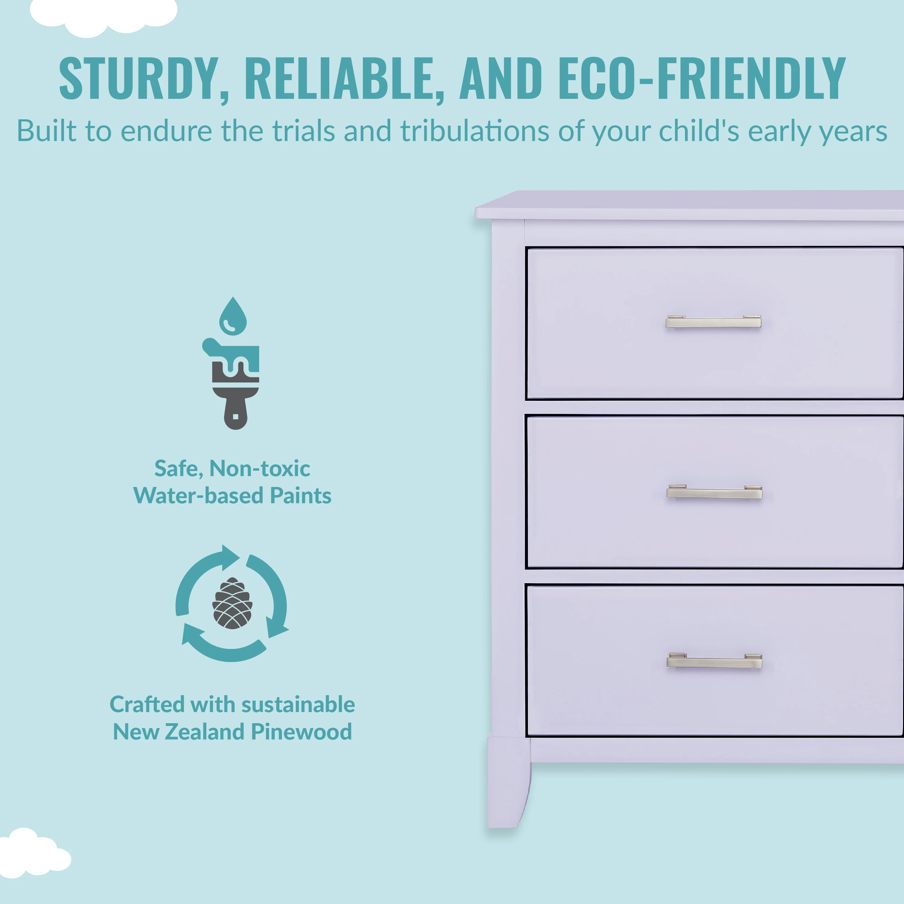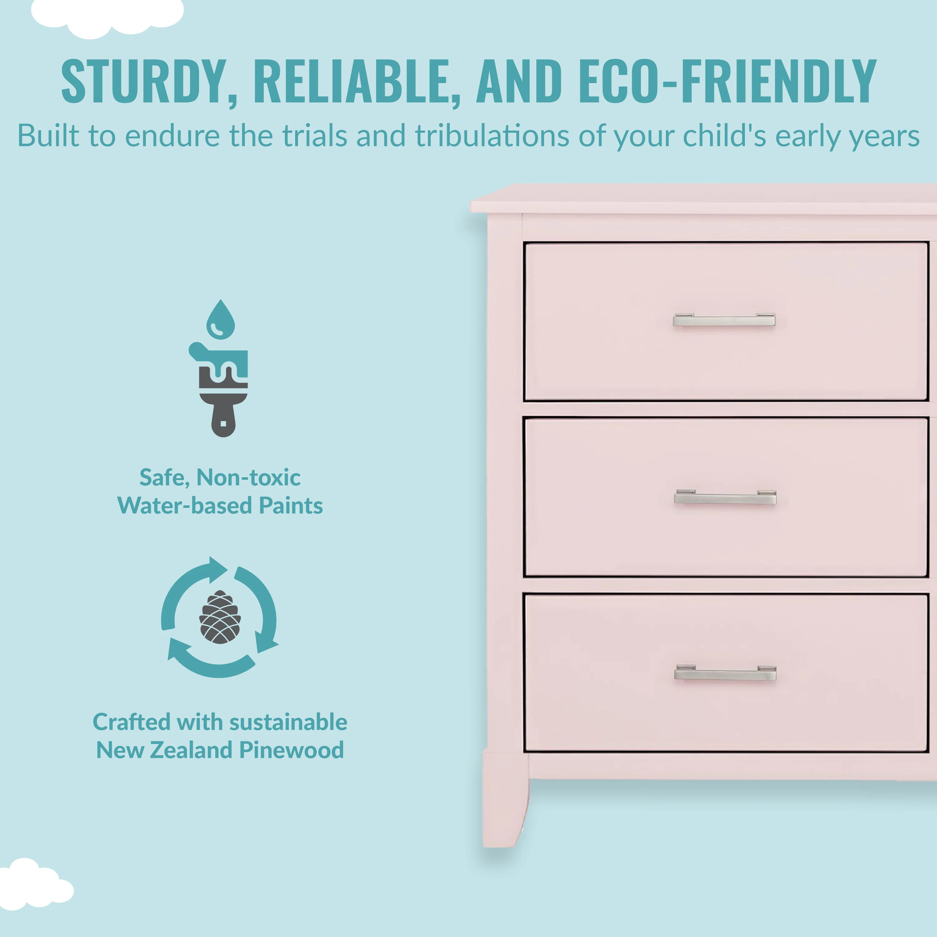 • SAFETY MATTERS: Finished in a non-toxic multi-step painting process and is lead and phthalate safe. The Universal Dresser meets/exceeds ASTM/CPSC safety standards. Stop mechanism and anti-tip kit included for additional safety