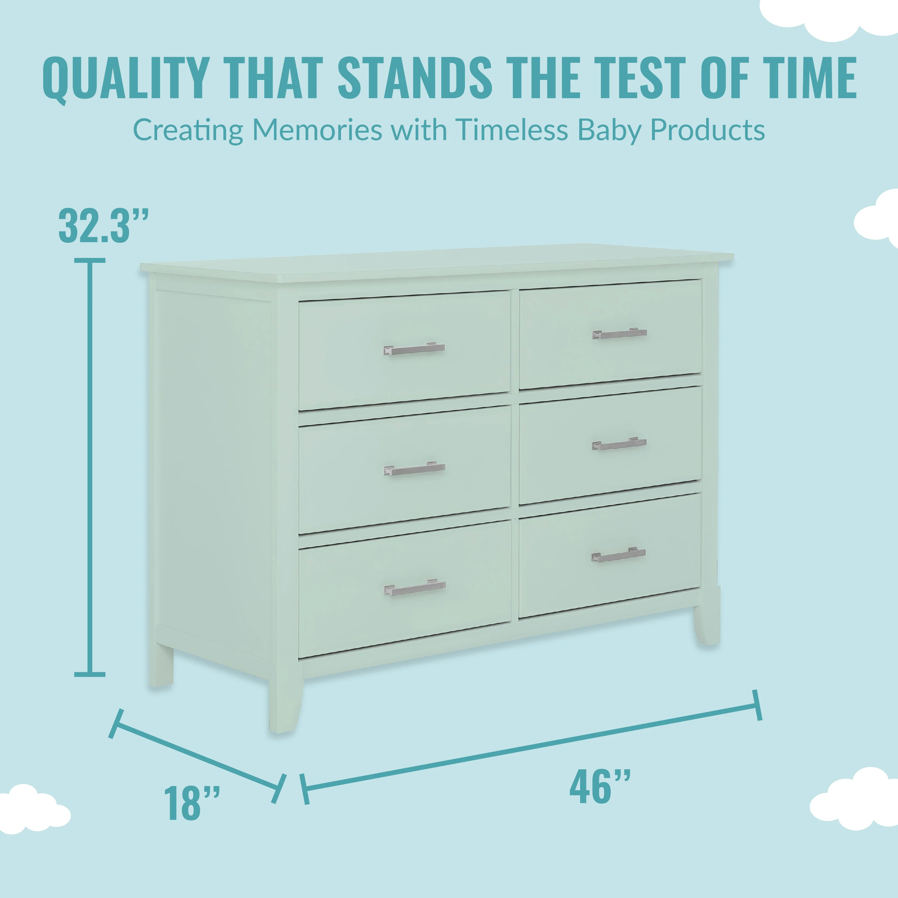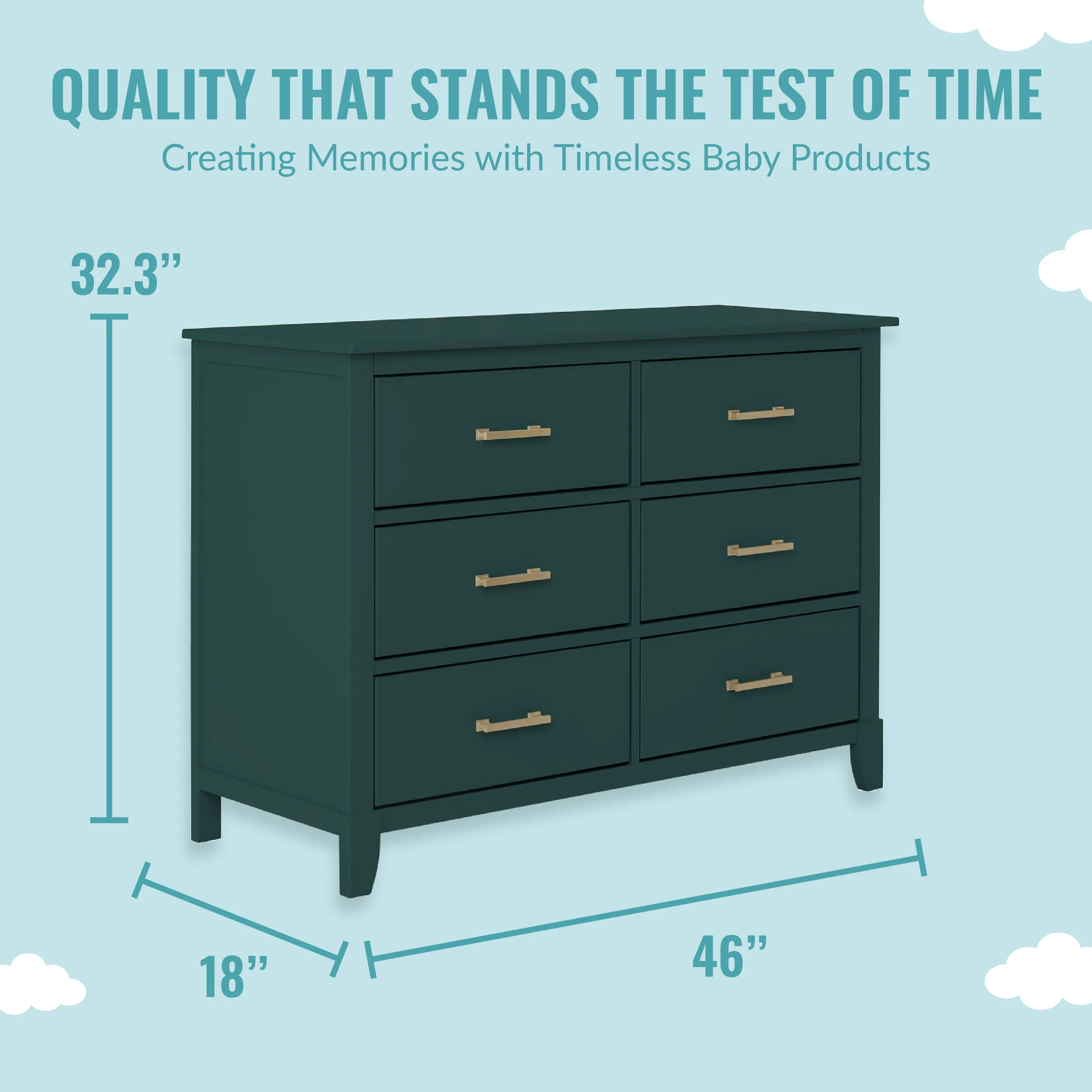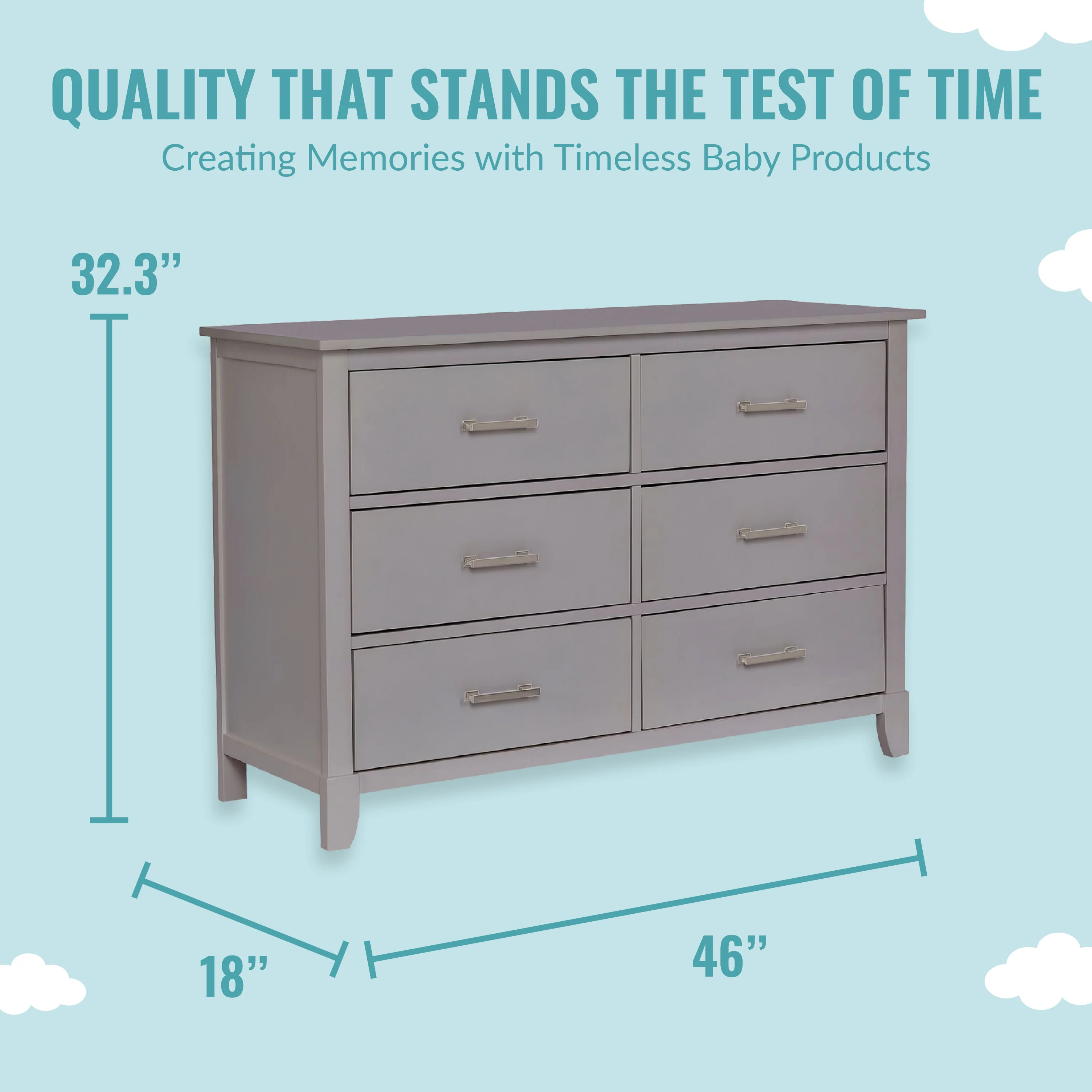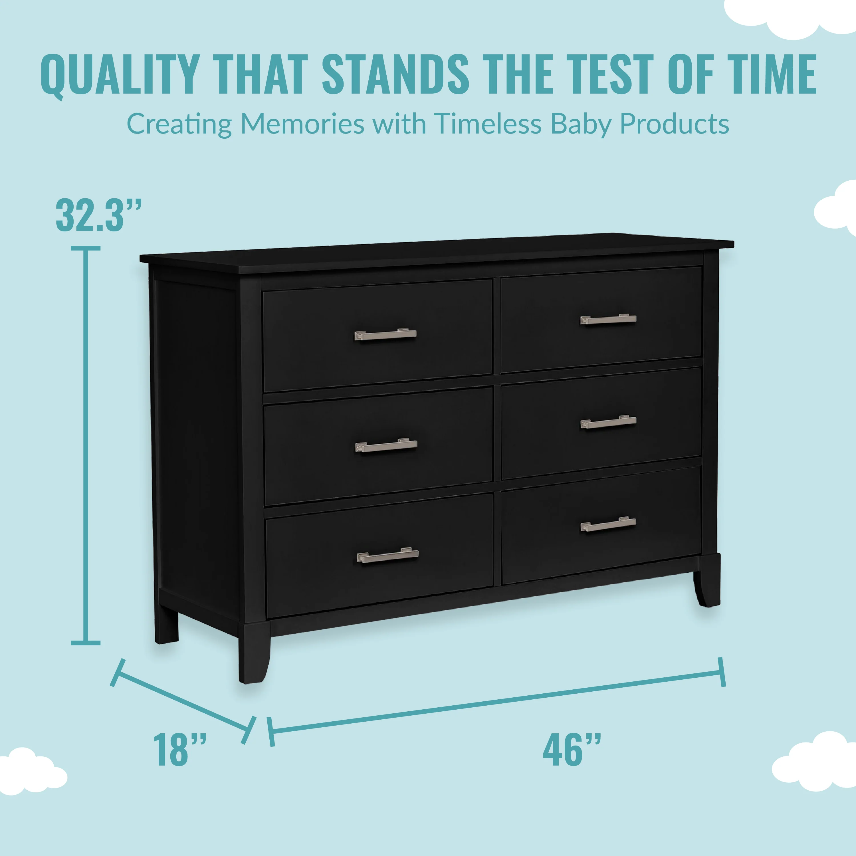 • MULTI USE: It has 6 spacious drawers to hold baby clothes, linen and more! It can double up as a changing station in the early years by adding the Dream On Me Changing Tray (sold seperately) and used as a big kid dresser as your child grows