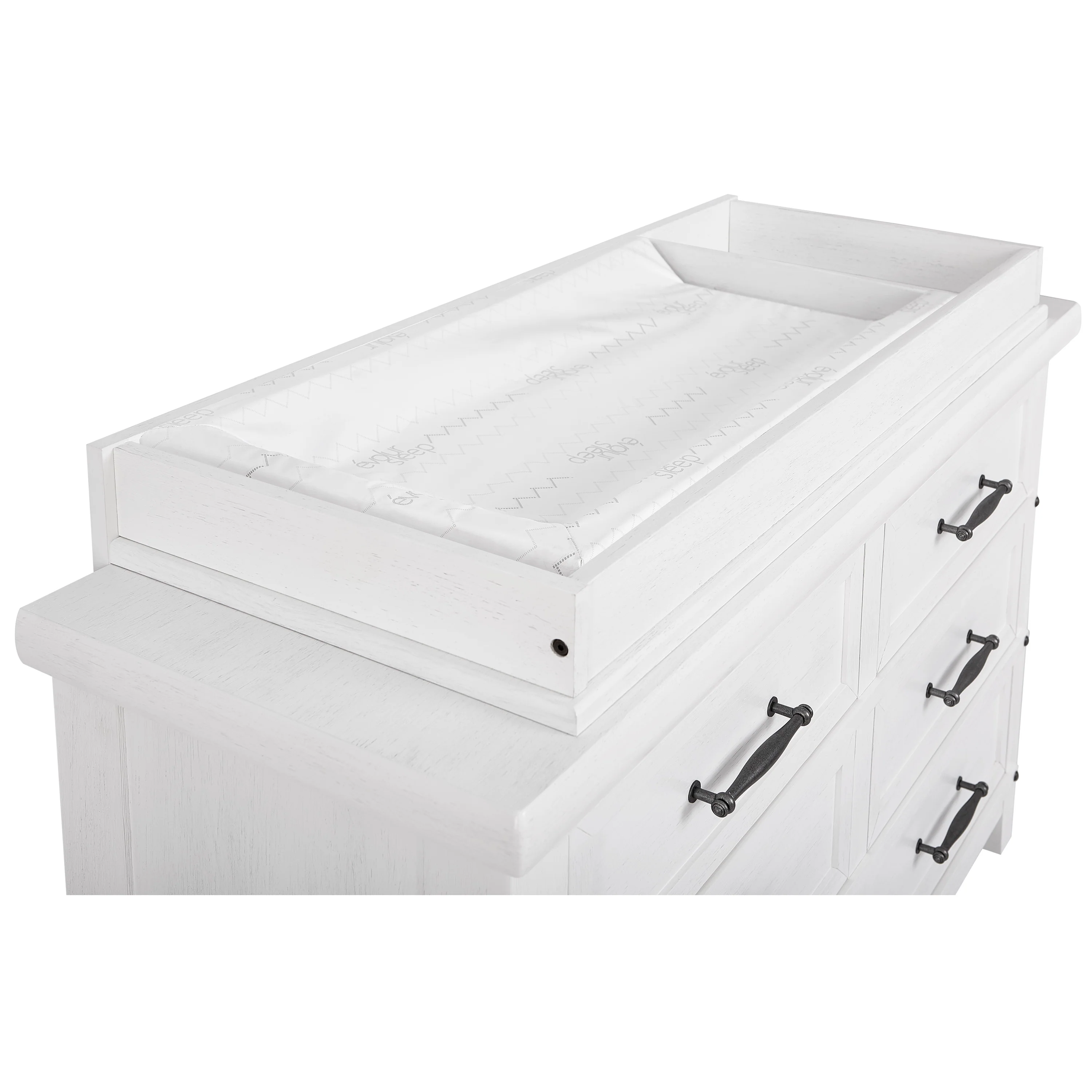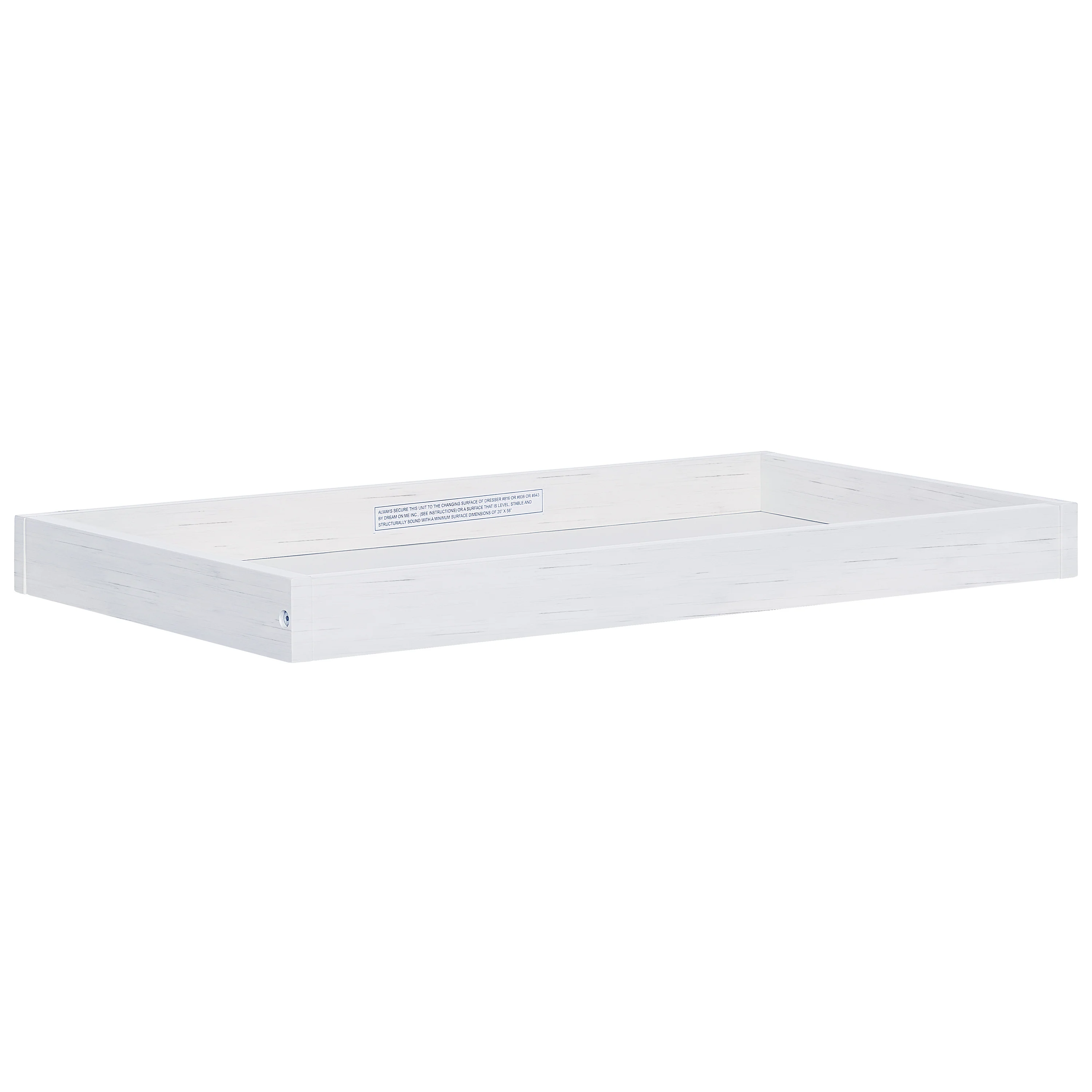The Evolur Changing Tray is the perfect functional addition to your double dresser during baby’s diaper-changing years. With a divided compartment, this tray will seamlessly convert the Evolur double dresser into a changing station that can keep your changing necessities close at hand. The changing tray secure to your double-wide dresser with safety brackets. Once you are out of the diaper-changing stage, the tray can be easily removed to allow your dresser to grow with your child.