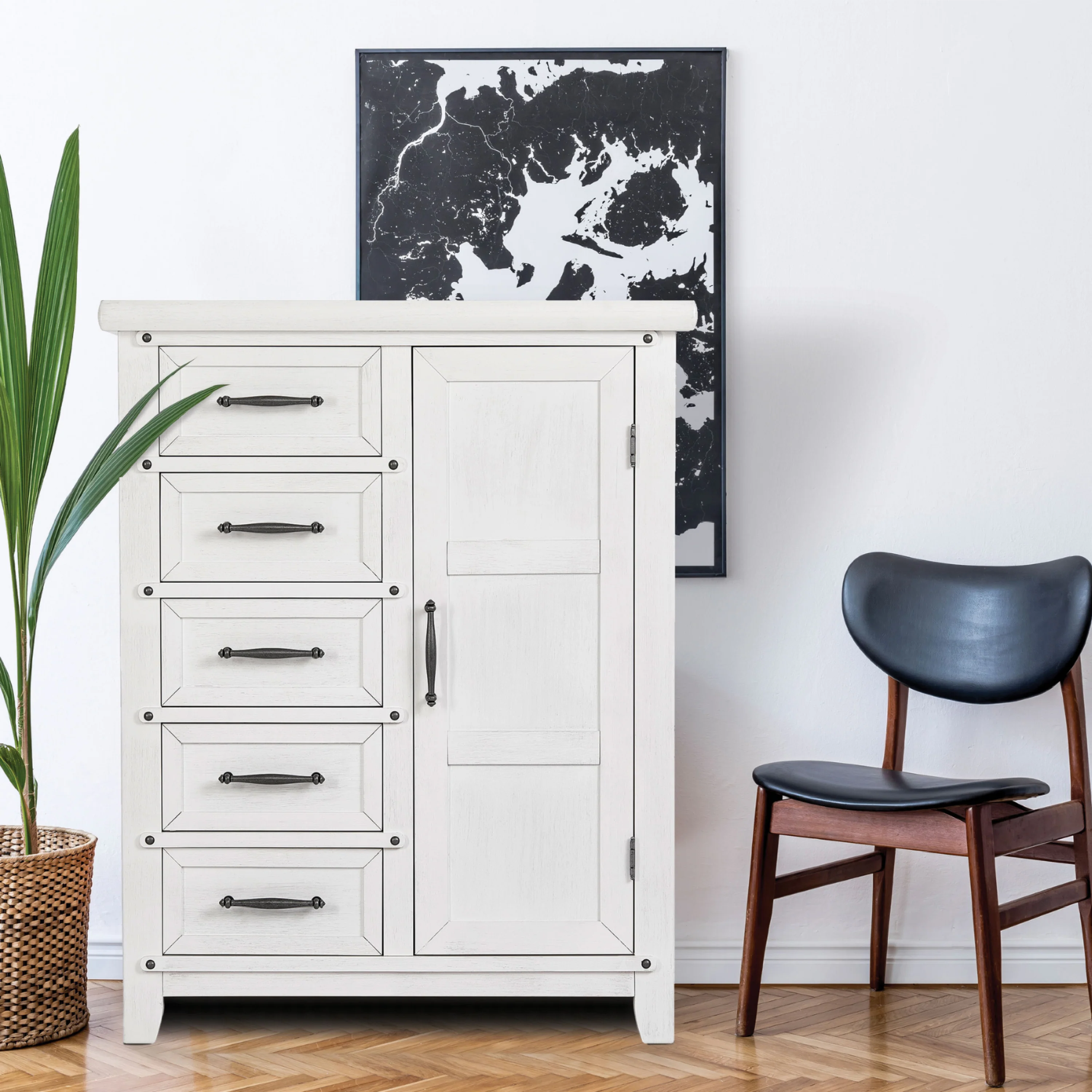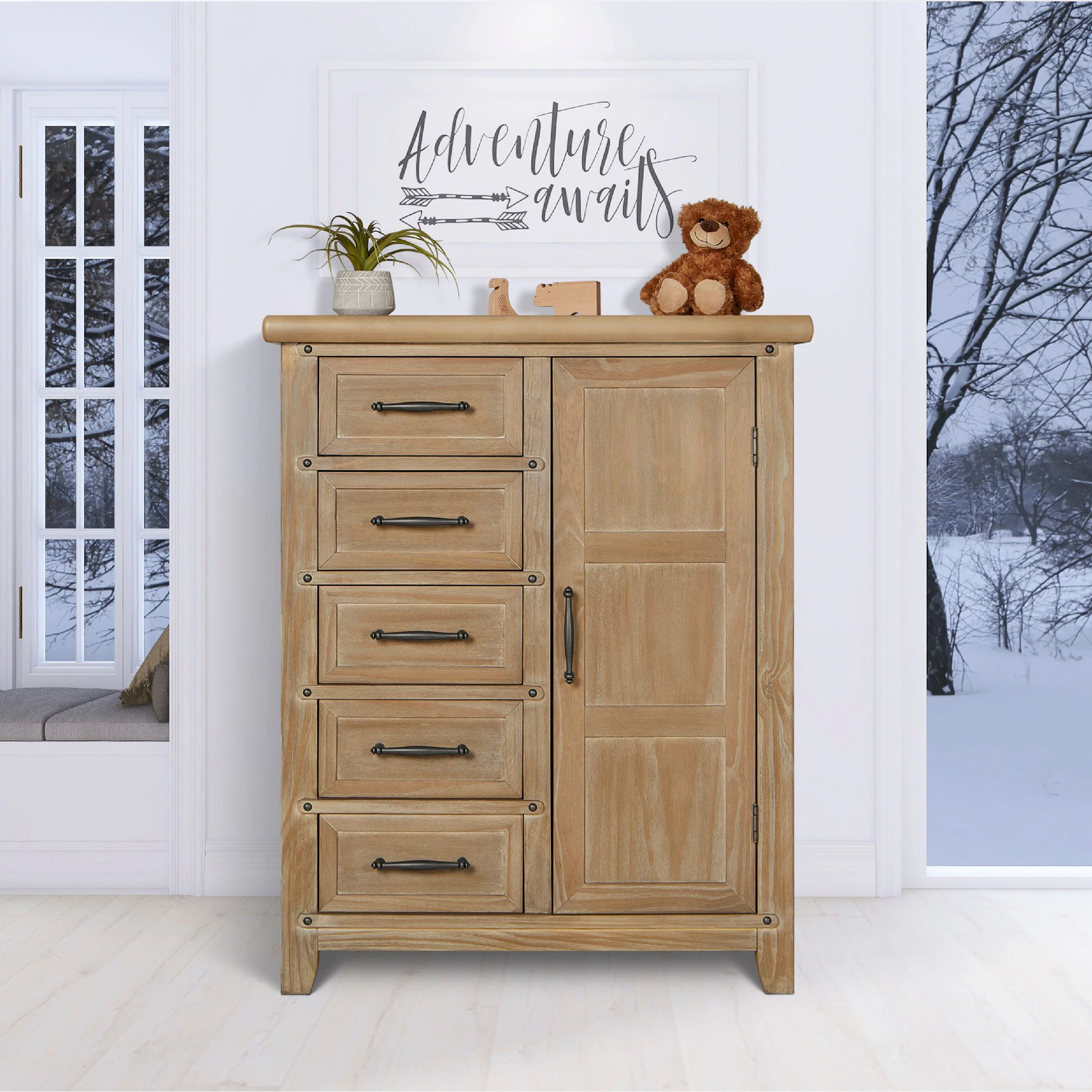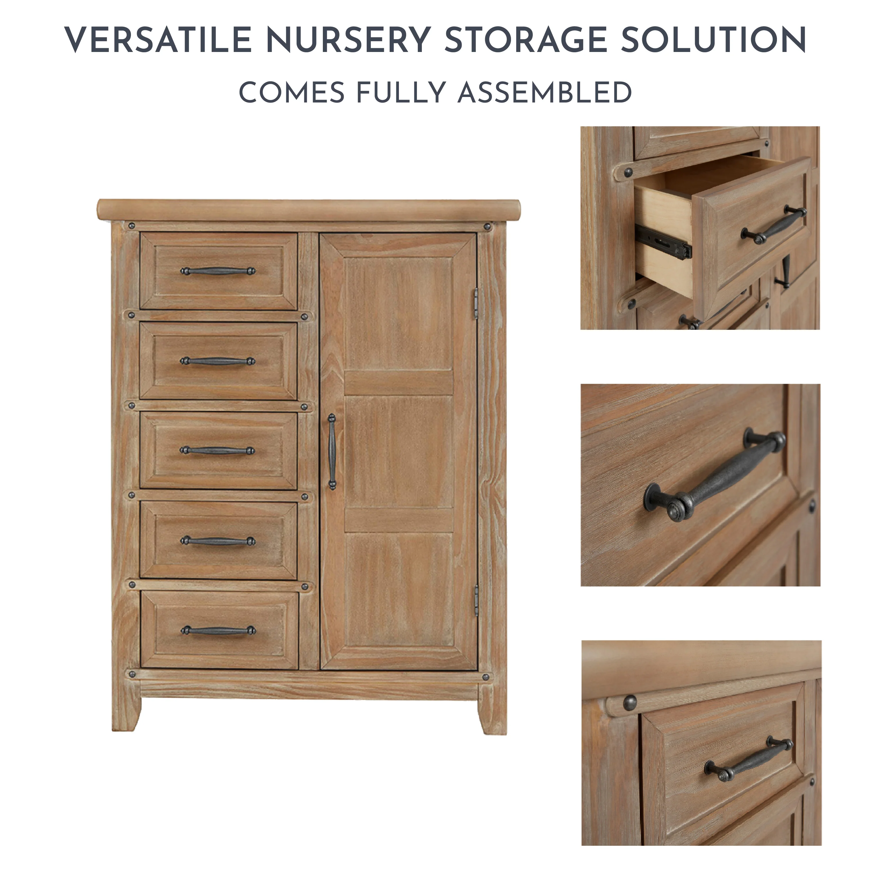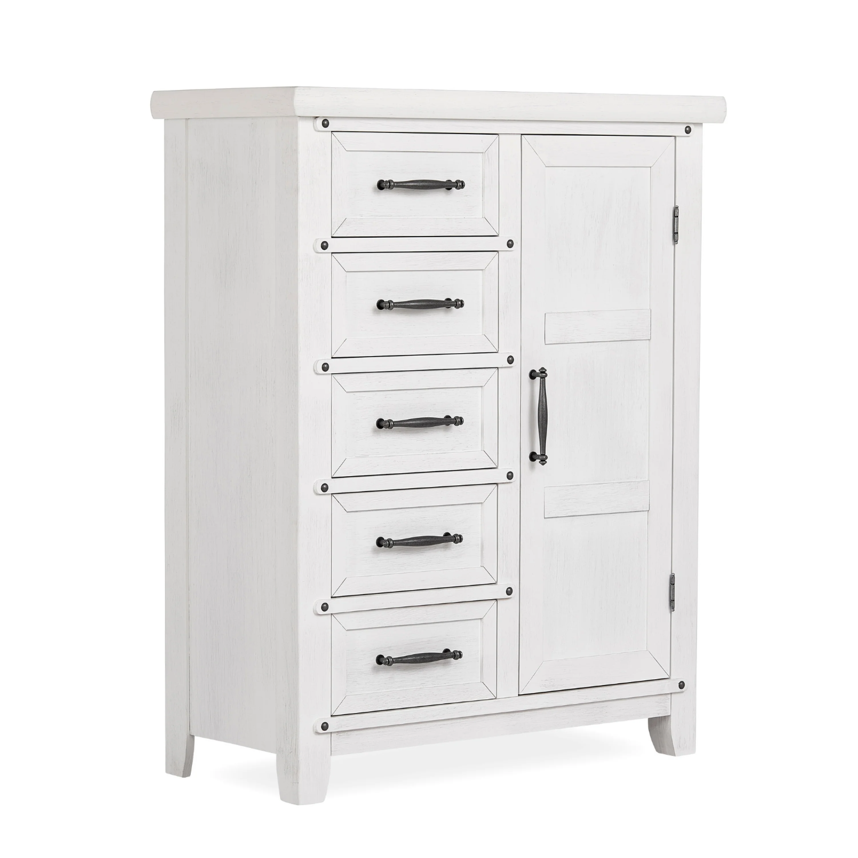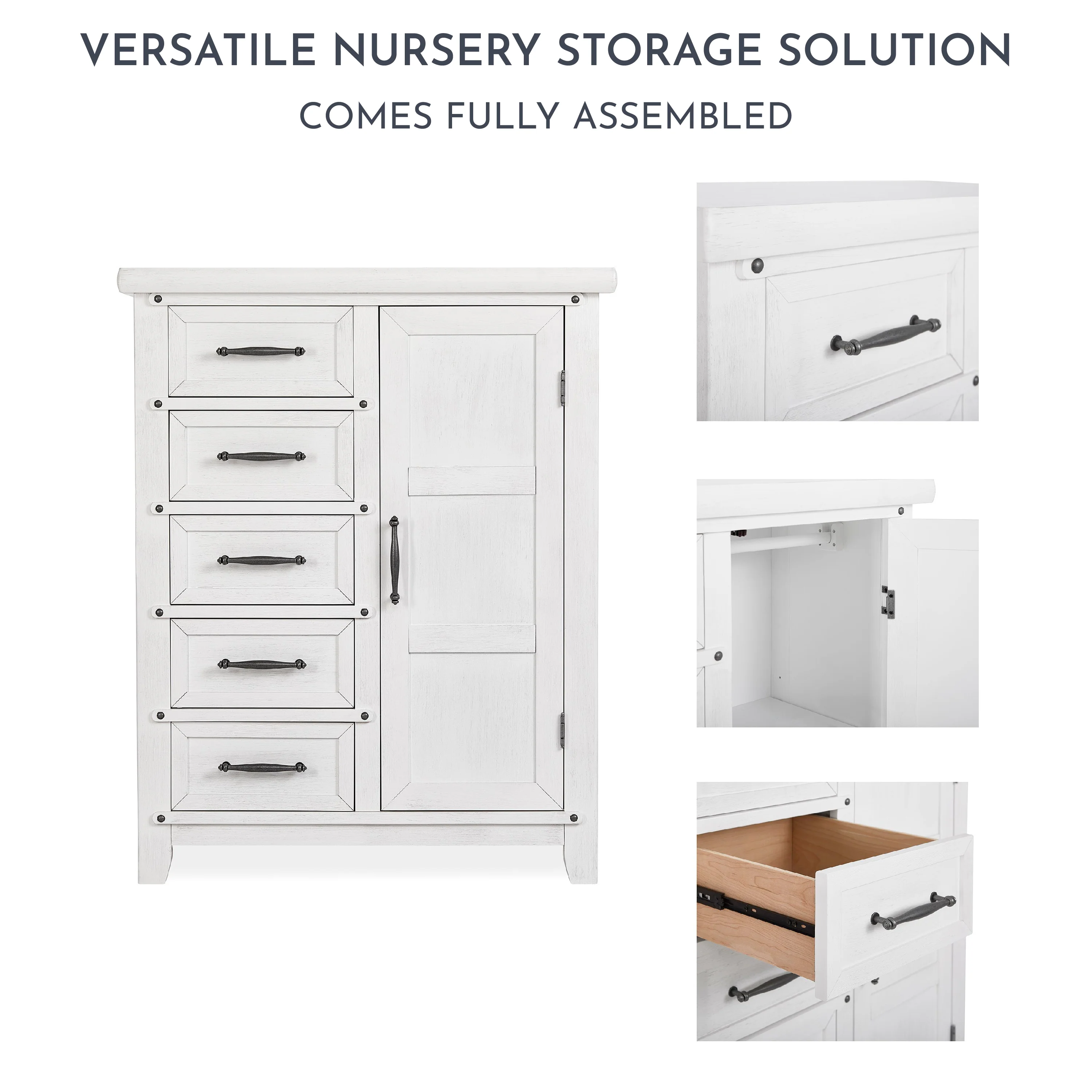 - DESIGNED FOR STORAGE: The Andorra Chifforobe comes with 5 spacious drawers and enclosed storage area with 2, adjustable roomy shelves and a removable hanging rod.