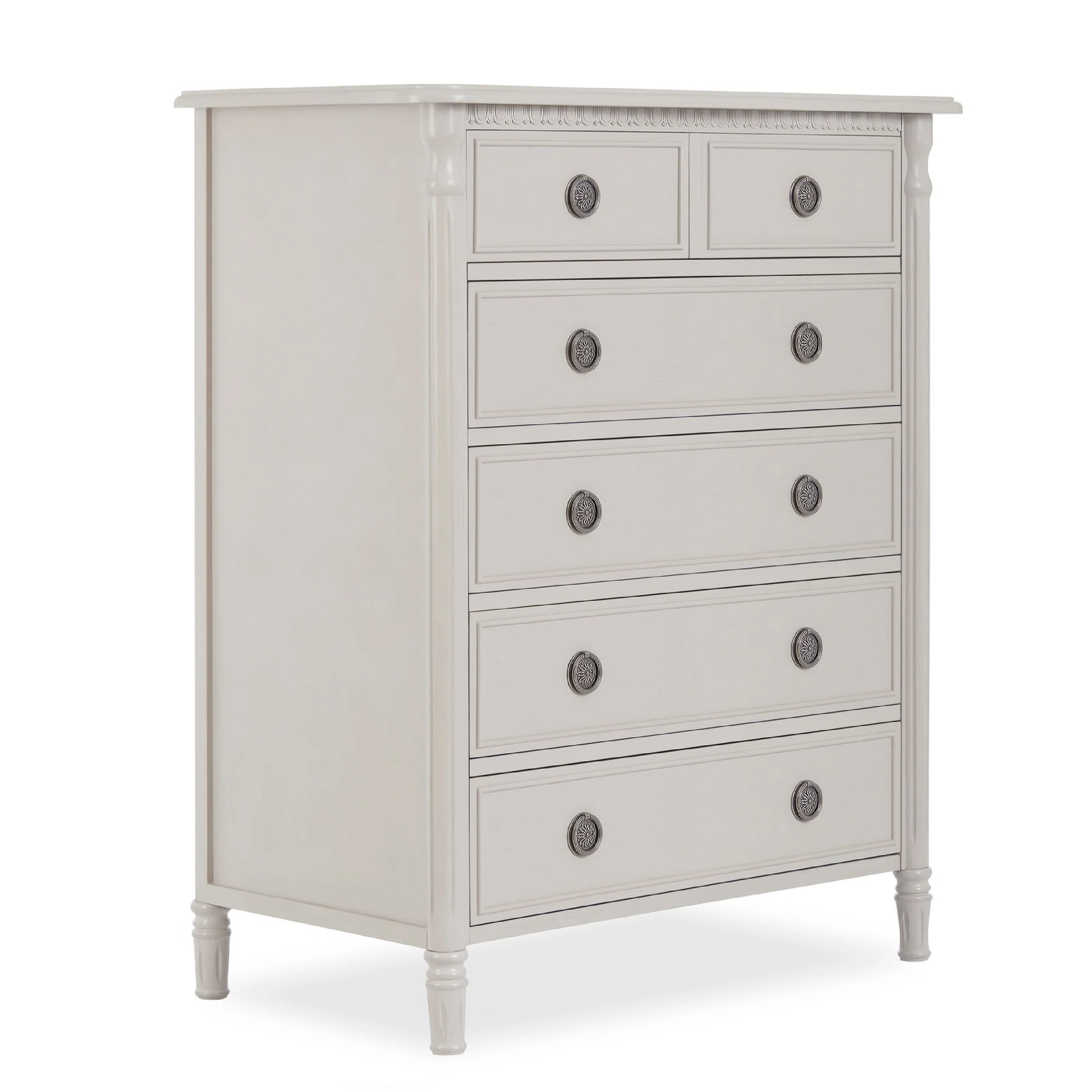 - Inspired by French Country artisan craftsmanship, the Julienne Tall Chest features decoratively detailed drawers, fluted hand turned post legs and cast pewter metal drawer pulls.