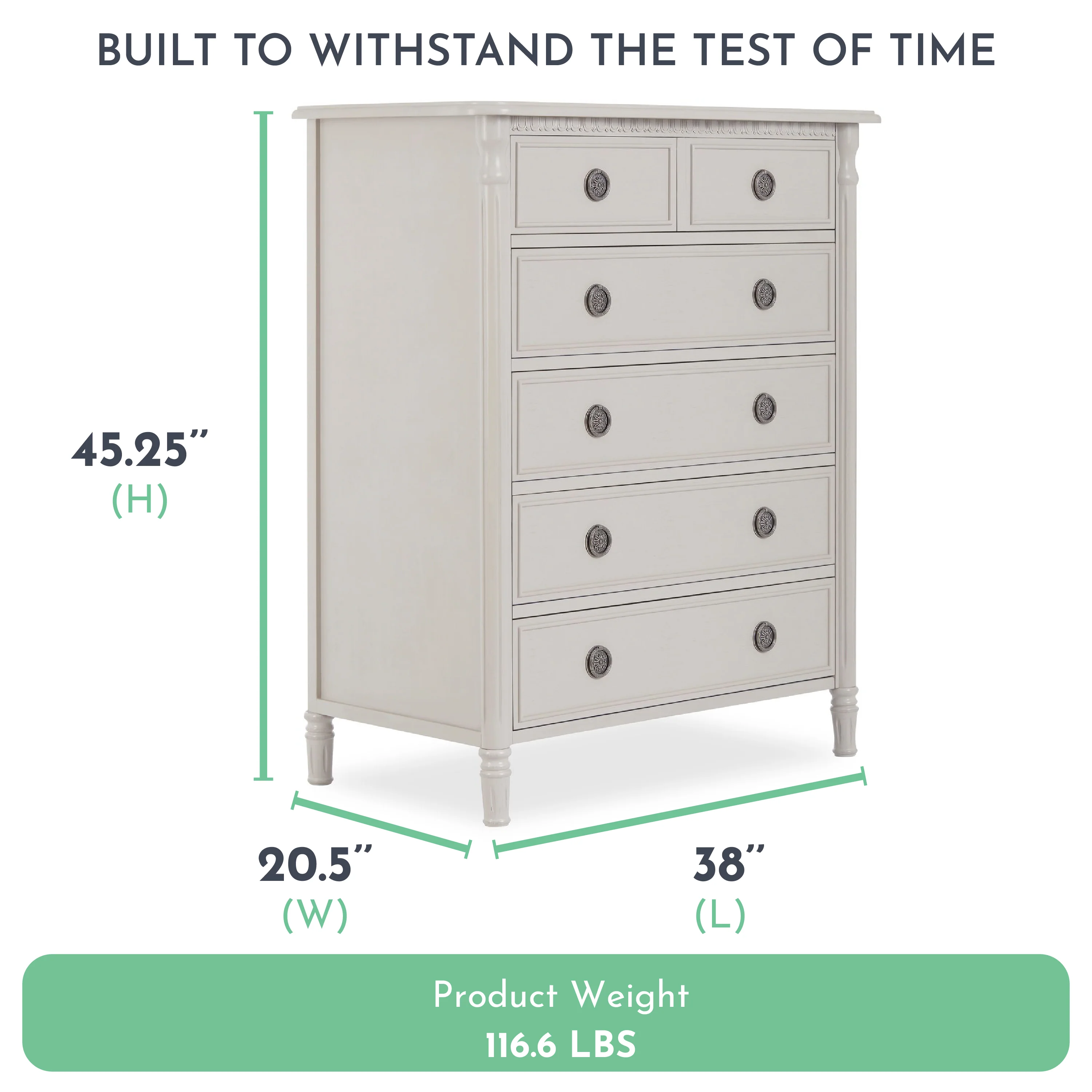 - The dresser comes with a 1-year warranty.