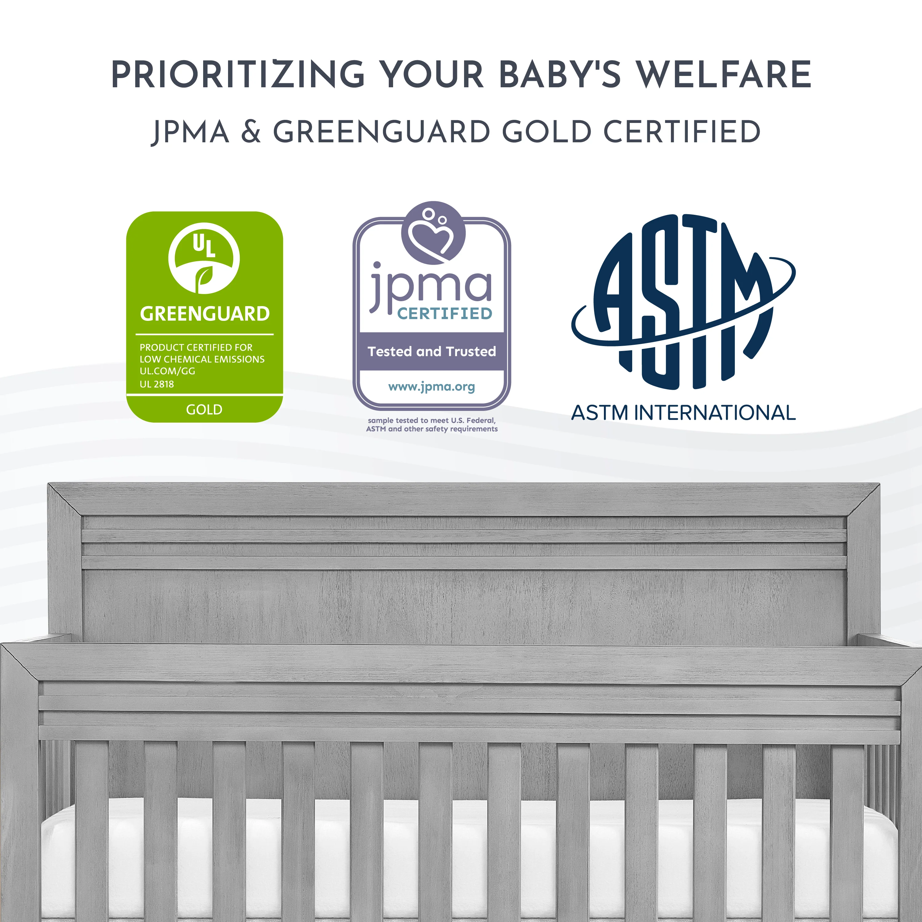 • SAFETY IS OUR NO.1 PRIORITY: The Kyoto 5-in-1 Convertible Crib is Greenguard Gold & JPMA certified, finished with non-toxic baby-safe paint.