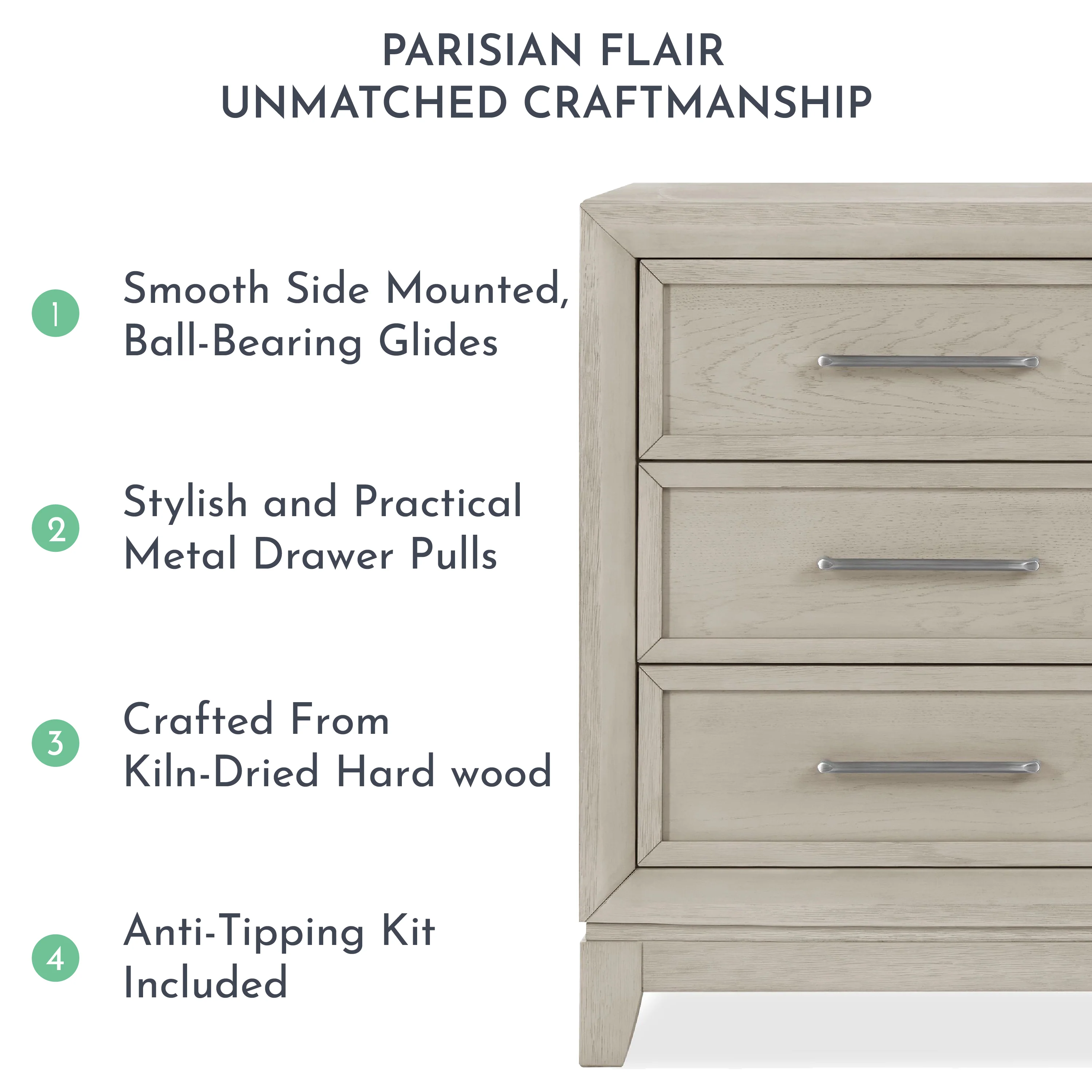 - PARISIAN STYLE CHARM: Designed with influences of sleek, unique Parisian craftsmanship, this double dresser is an elegant addition to your home and nursery.
