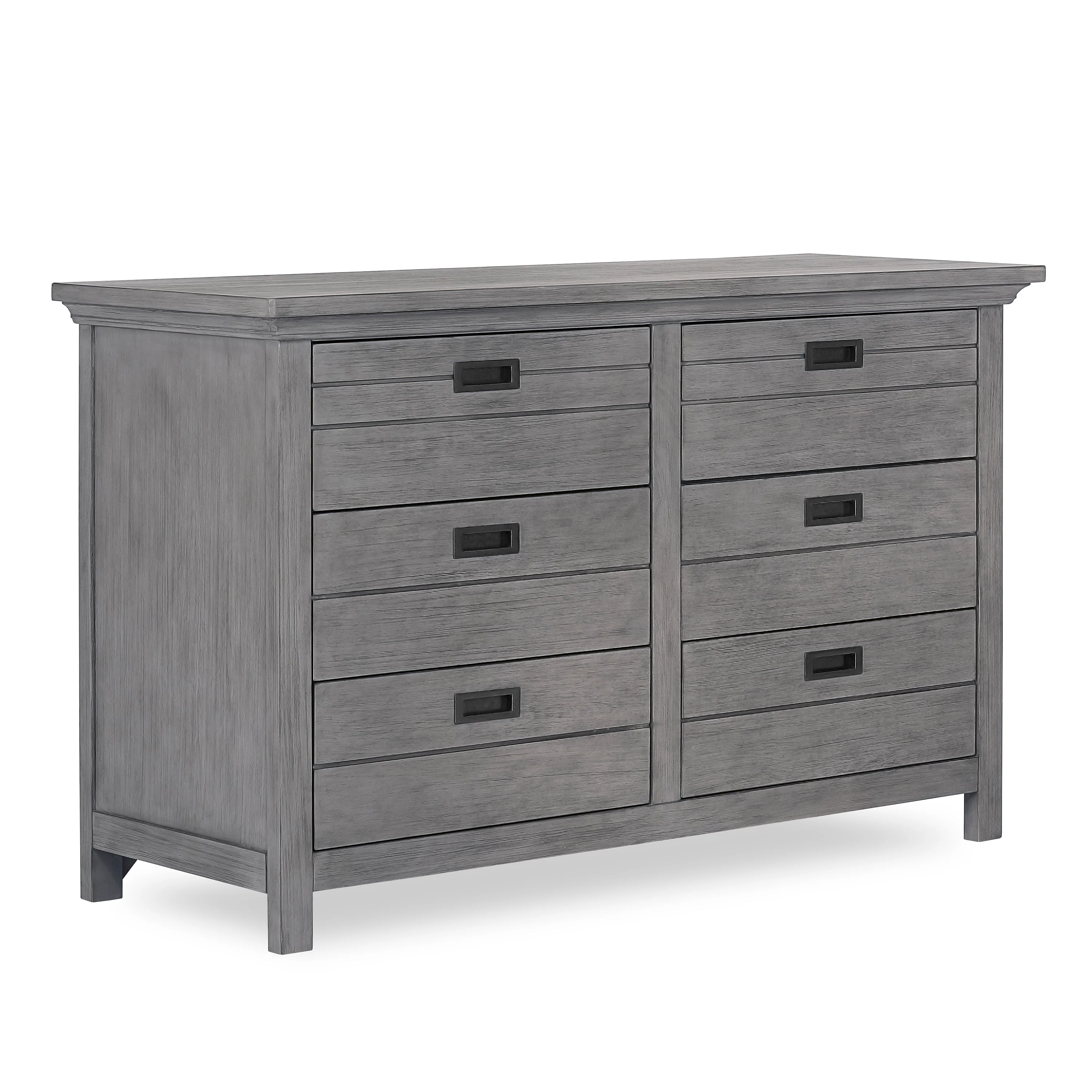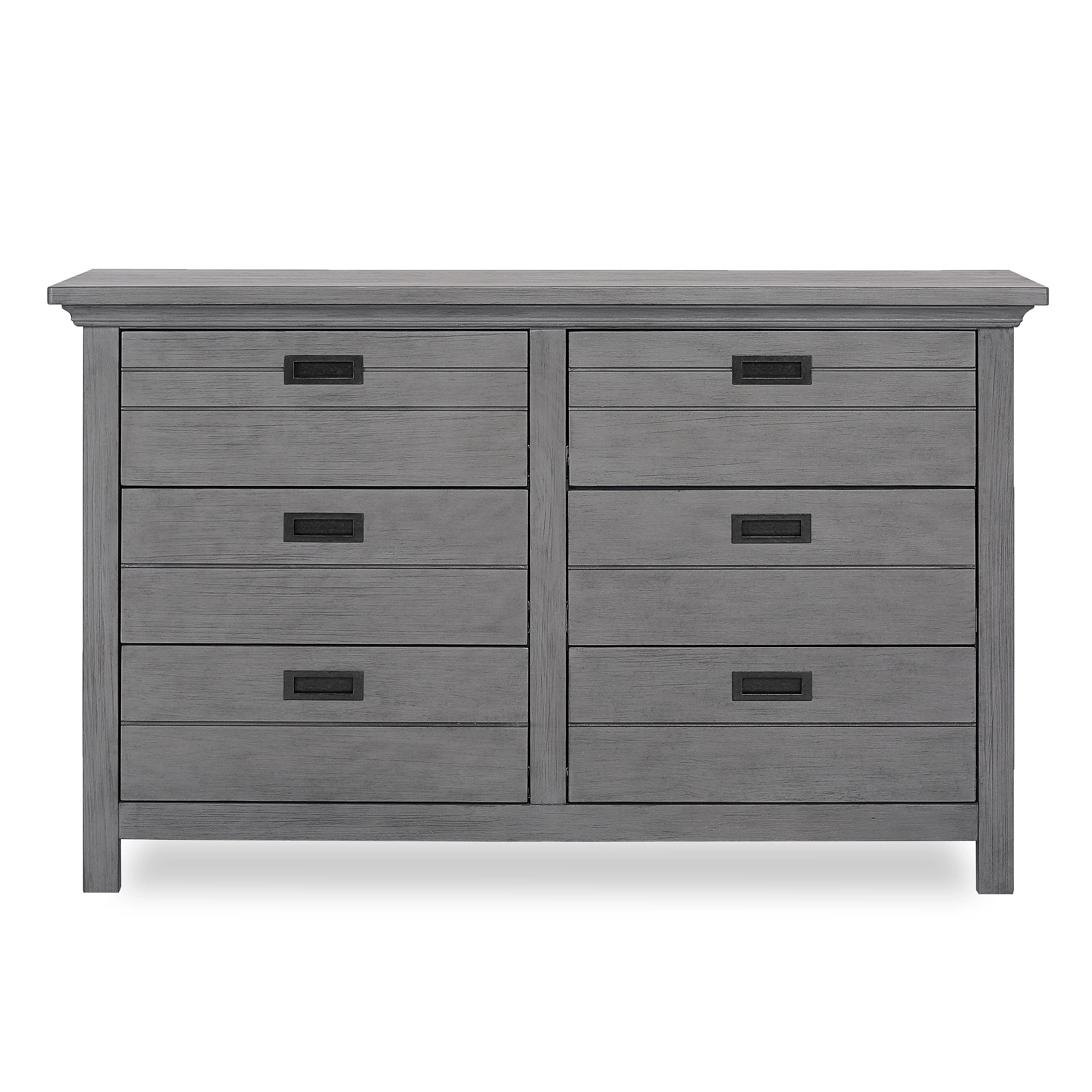 Evolur Waverly collection is inspired by East Coast Autumn; the last few days of cool weather before winter returns. The Waverly double dresser offers a simplistic design showcasing a lodge panel front, metal drawer pulls with straight lines surrounded by substantial molding. Using quality materials and craftsmanship, along with forward-thinking functionality, this piece is designed to work effortlessly throughout the years. The textured finishes offers a rustic farmhouse touch which can be paired with wooden ceiling beams, rustic décor like crate bookshelves, galvanized containers, metals frames with the shades of the Autumn season canvas the walls . This collection will take you back to a beautiful Autumn day of bright yellows, reds and oranges of foliage covering the country side, apple picking, hayrides, pumpkin patch's and drinking apple cider with family. Evolur Waverly collection offers as an array of case goods including crib, and tall chest. Also available is a universal night stand, change station tray, conversion kit and toddler rail( sold separately).