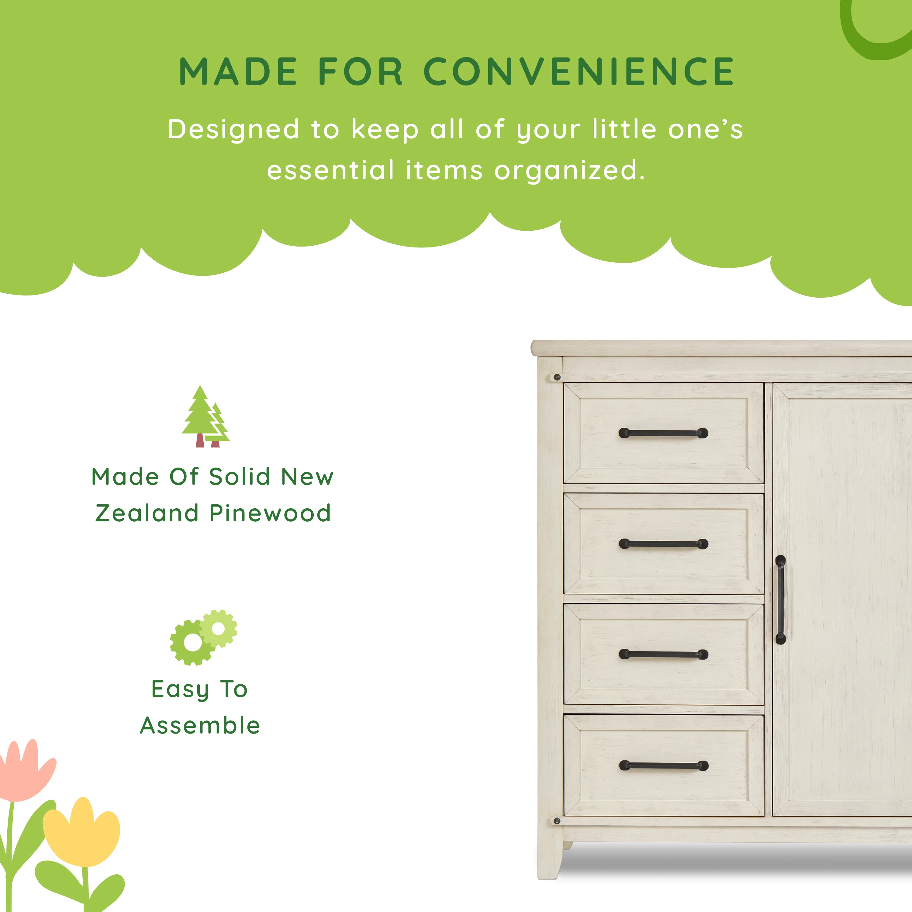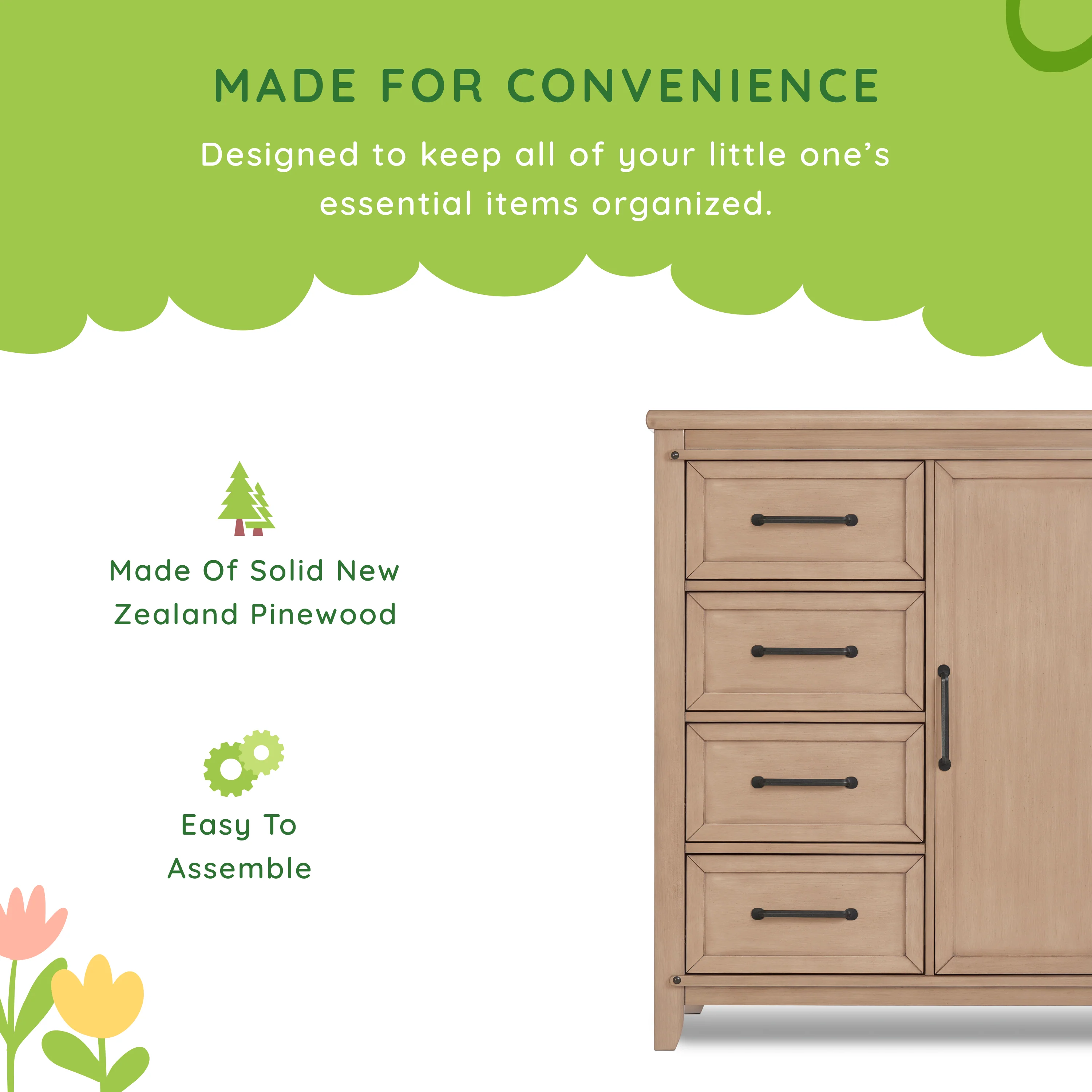 - SAFE & DURABLE: The Sweetpea Baby Bayfield Cifferobe is ASTM-certified and crafted using sustainable New Zealand Pinewood.