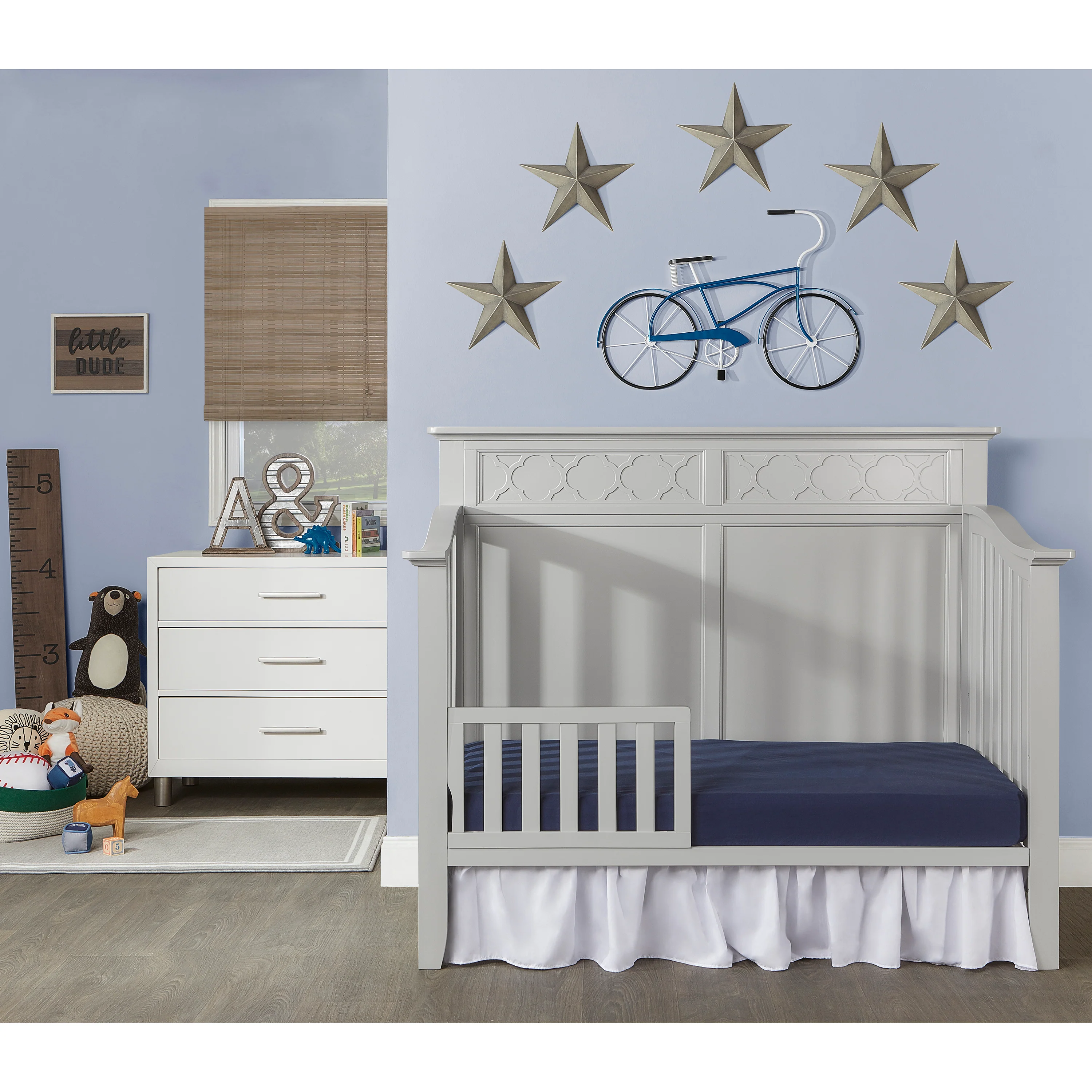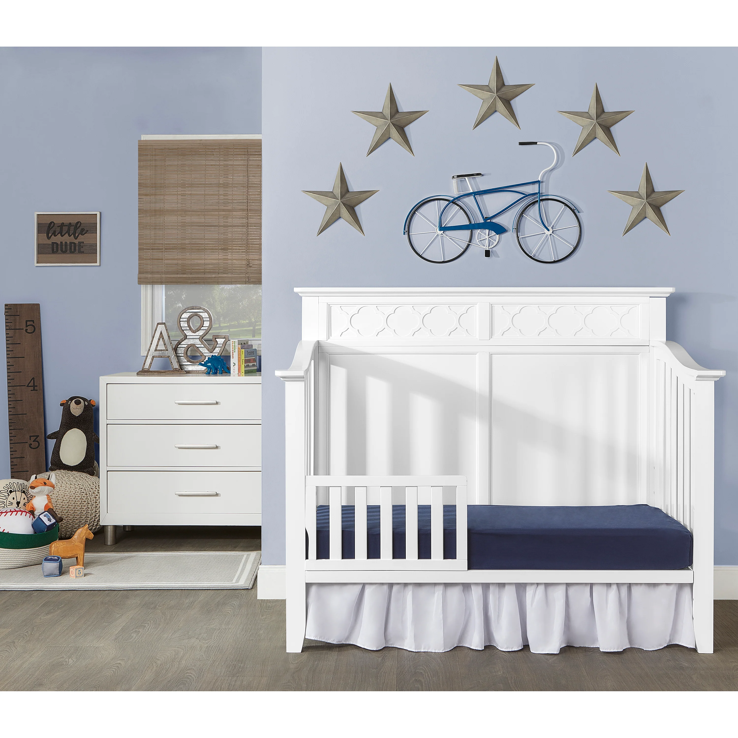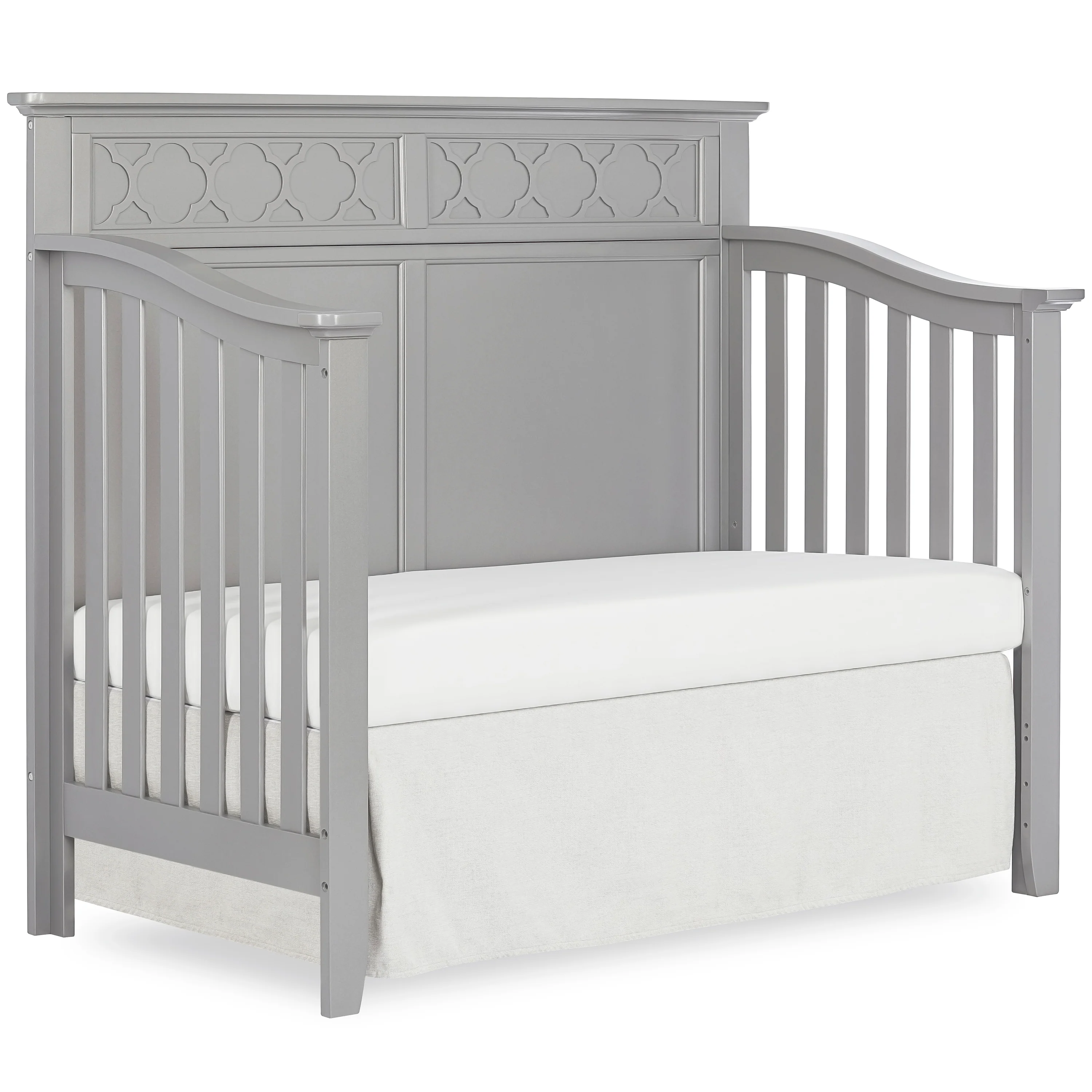 SweetPea Baby Fairview crib captures a transitional styling with a full panel headboard and quatrefoil decal, this crib offers lavish sophisticated elements that bring a little modest simplicity to an ageless nursery. The Fairview crib is designed to converts to a toddler bed and day bed to accommodate your growing child (conversion rails sold separately). This crib can be a mix or match with other furniture, glossy accents or neutral color schemes or go with a vintage or antique feel by combing patterns and colors to create a one of a kind nursery.