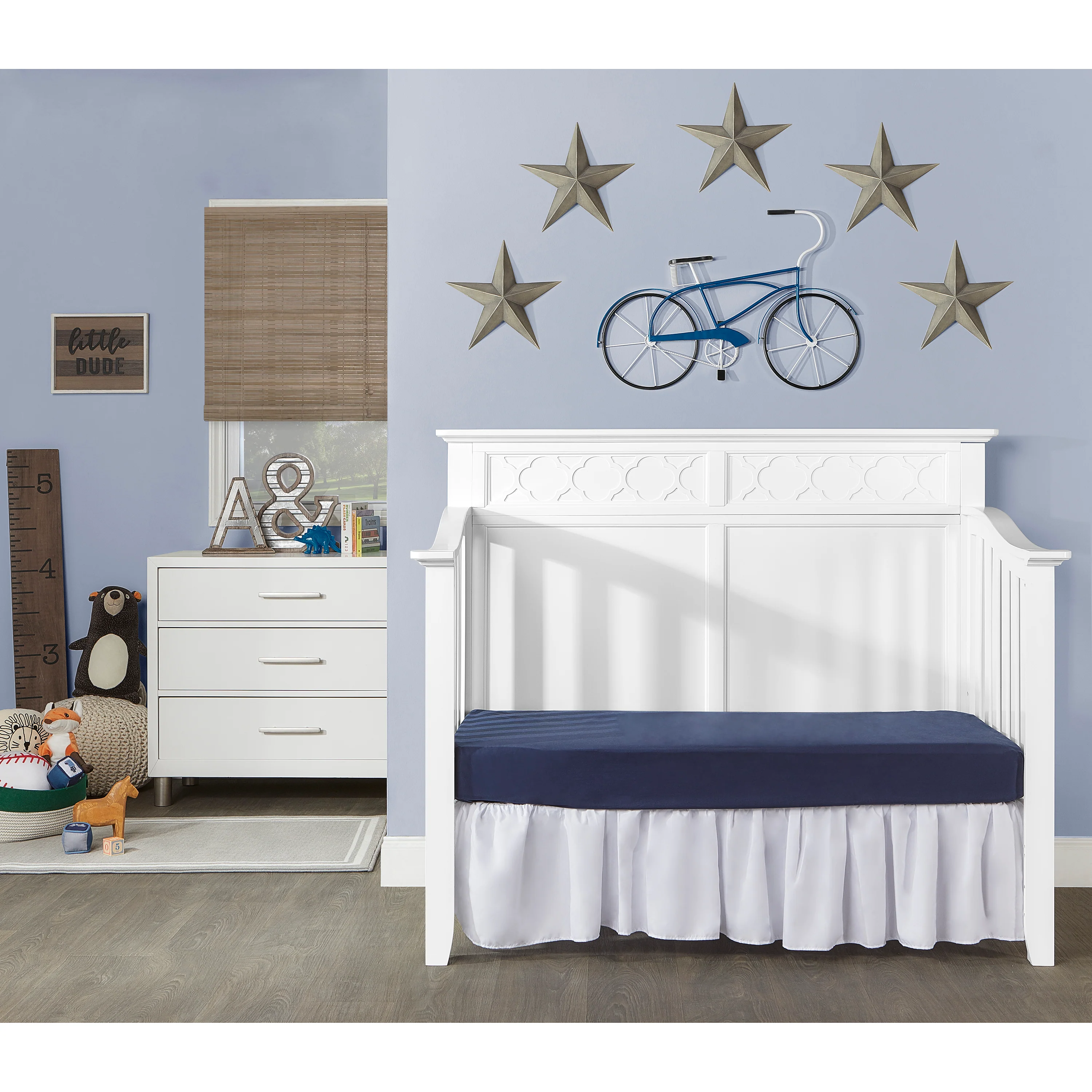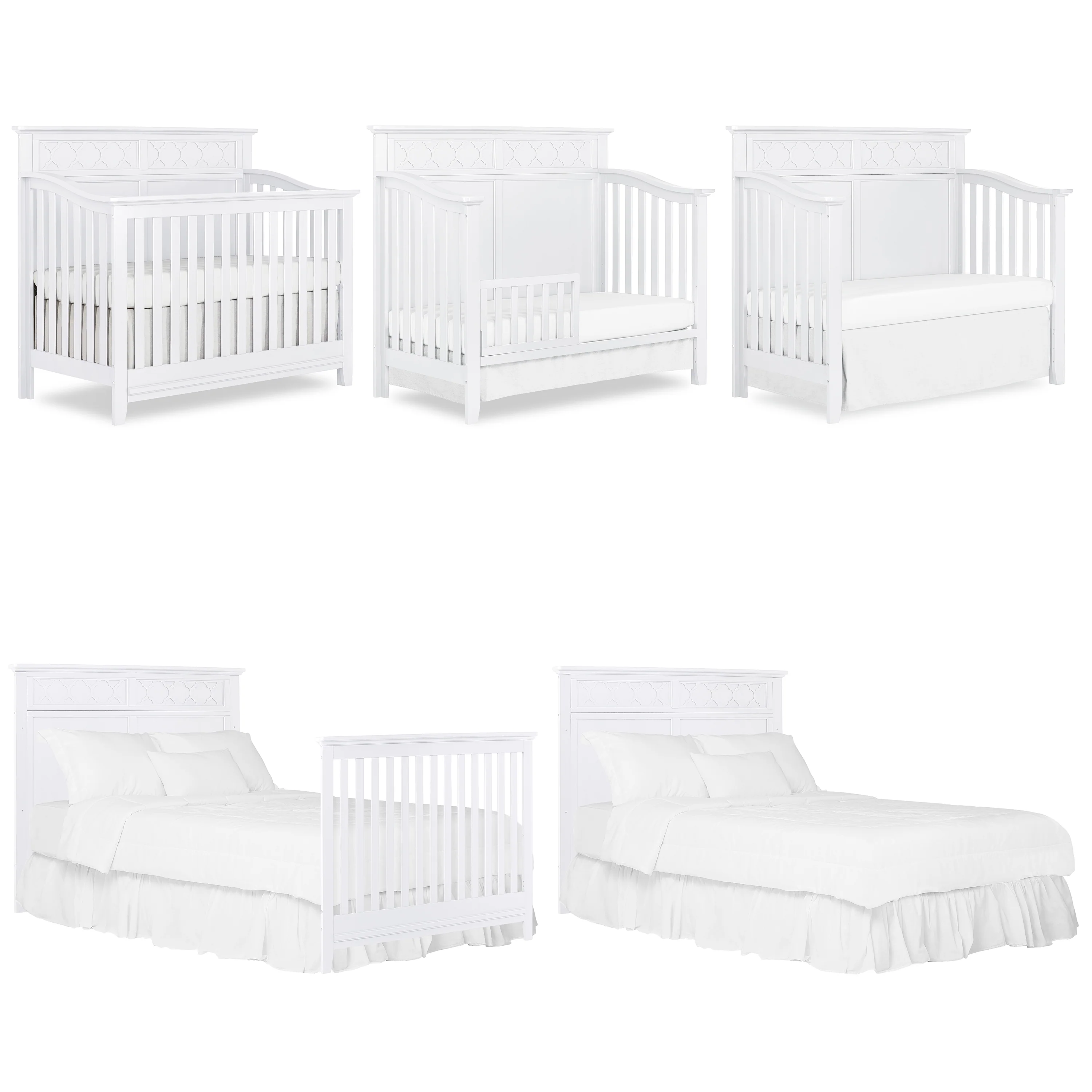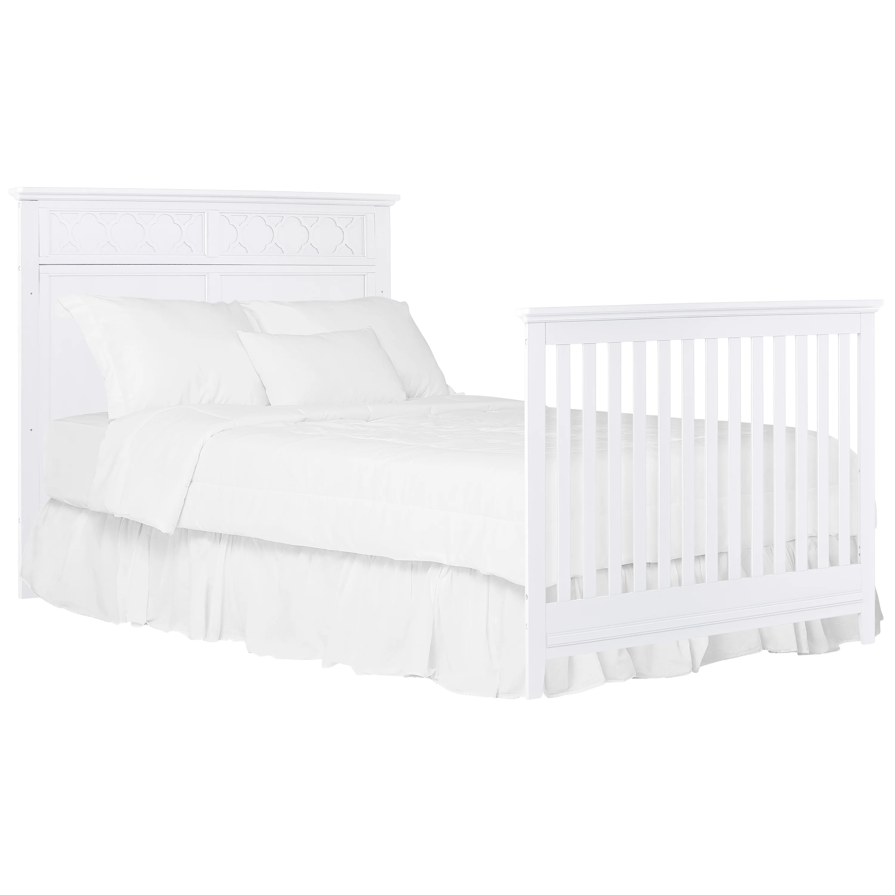 SweetPea Baby Fairview crib captures a transitional styling with a full panel headboard and quatrefoil decal, this crib offers lavish sophisticated elements that bring a little modest simplicity to an ageless nursery. The Fairview crib is designed to converts to a toddler bed and day bed to accommodate your growing child (conversion rails sold separately). This crib can be a mix or match with other furniture, glossy accents or neutral color schemes or go with a vintage or antique feel by combing patterns and colors to create a one of a kind nursery.