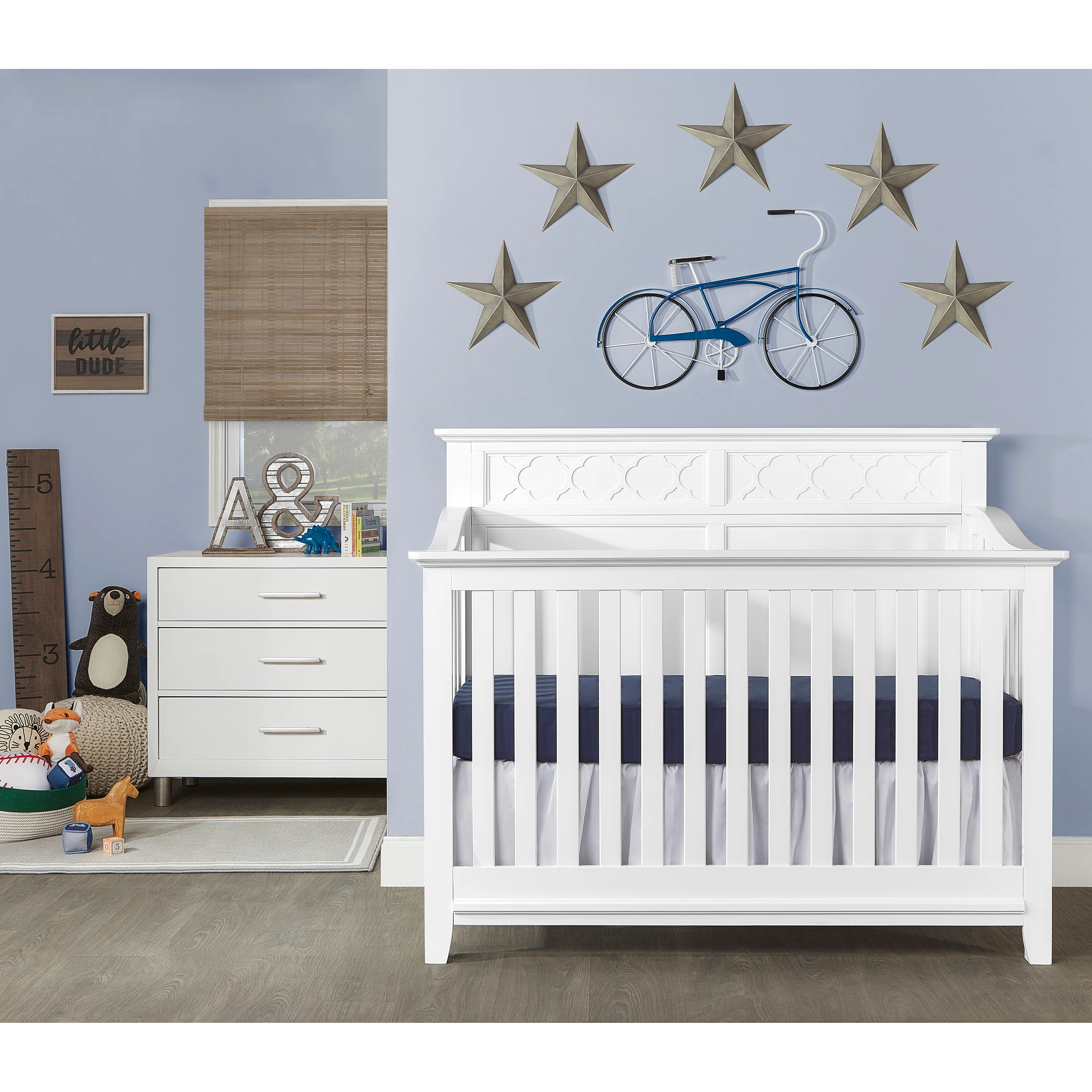 - The Fairview crib is designed with a full panel headboard and quatrefoil decal which showcase the minimalist trends of the contemporary style.