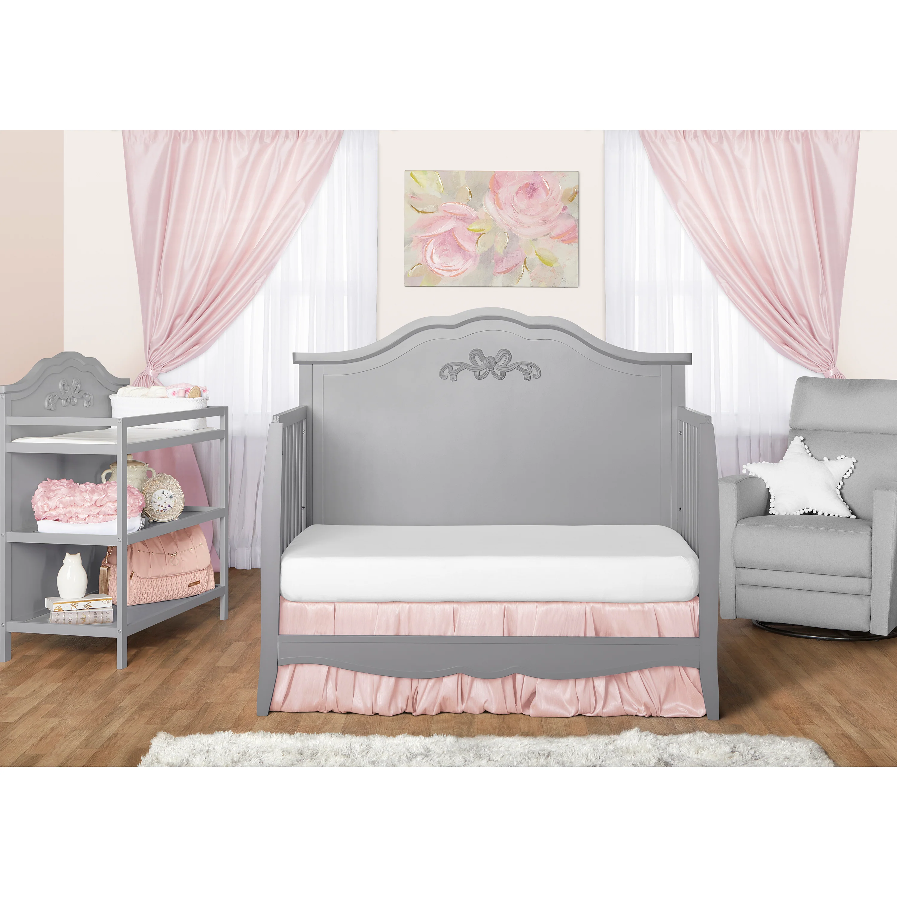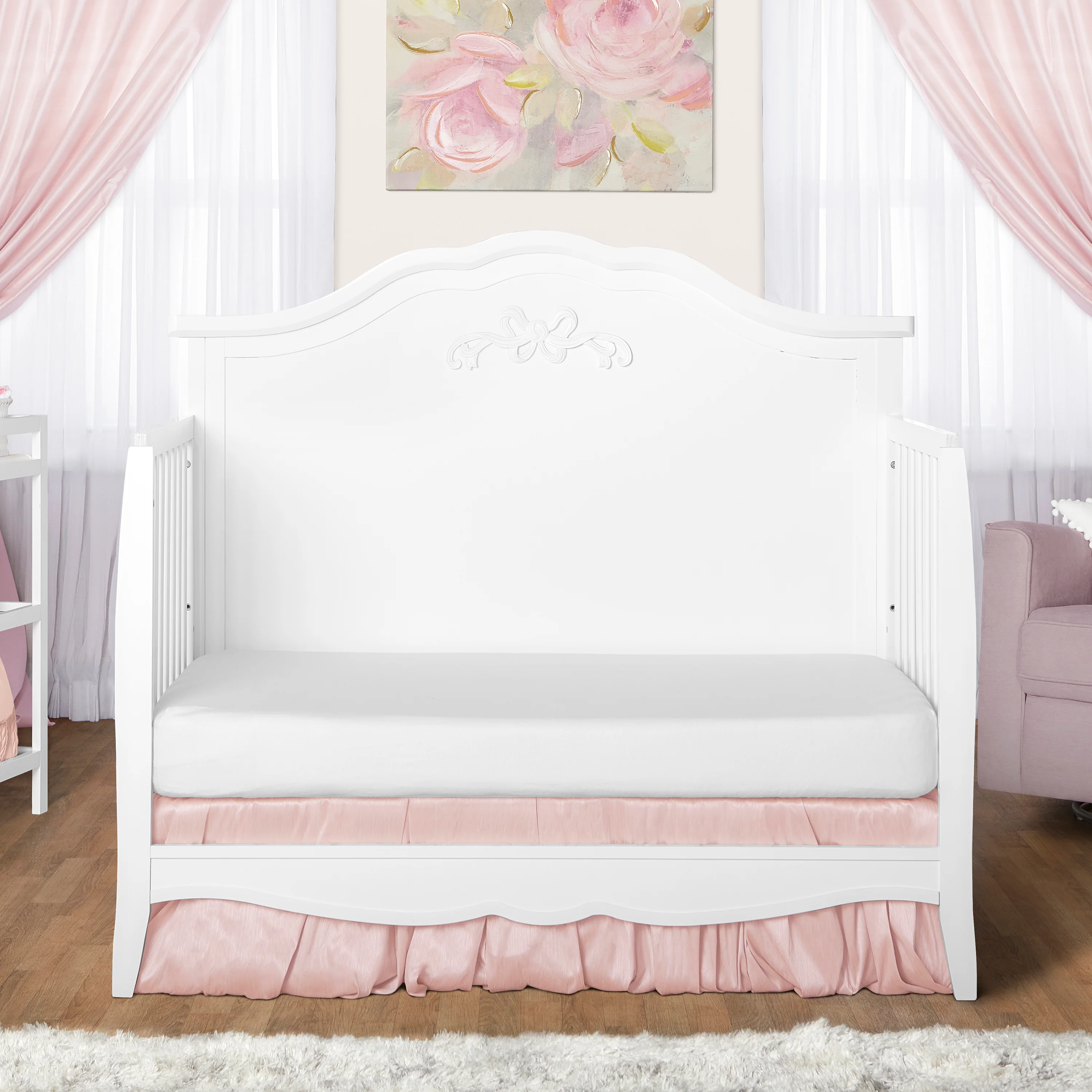 - INTRICATE FINISHING: With intricate, carved headboard detailing, this crib comes in 3 evergreen finishes �?Blush Pink, White, and Platinum.