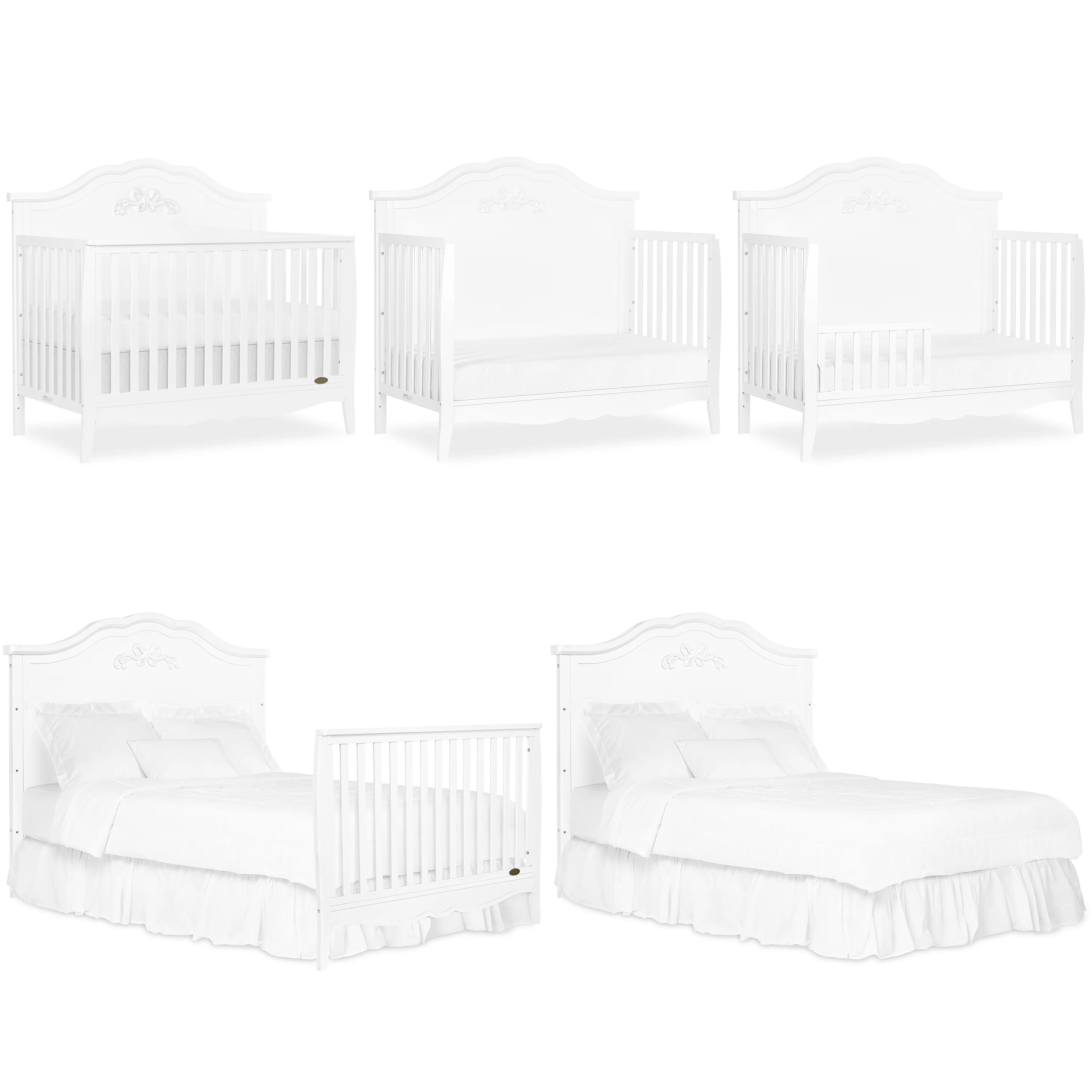 - EVOLVES WITH YOUR BABY: The Jasmine Convertible Crib easily transitions to a daybed, toddler bed, and full-size bed (conversion kit sold separately).
