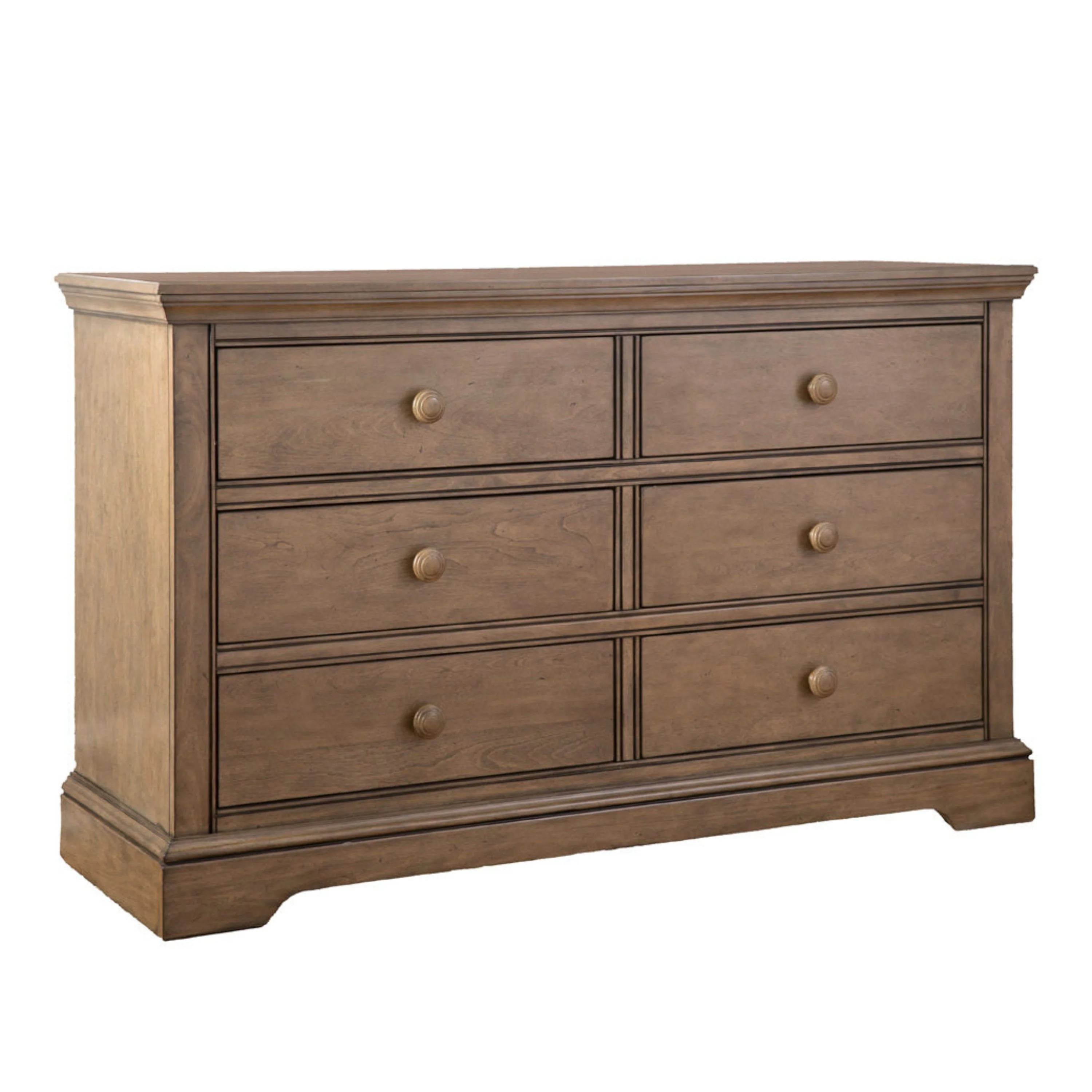 Add luxury to your nursery with the transitional style of Westwood Design's Hanley Collection. The Hanley Double Dresser features 6 spacious drawers, full-extension drawer glides, and handsome wooden knobs for a simple, refined look.