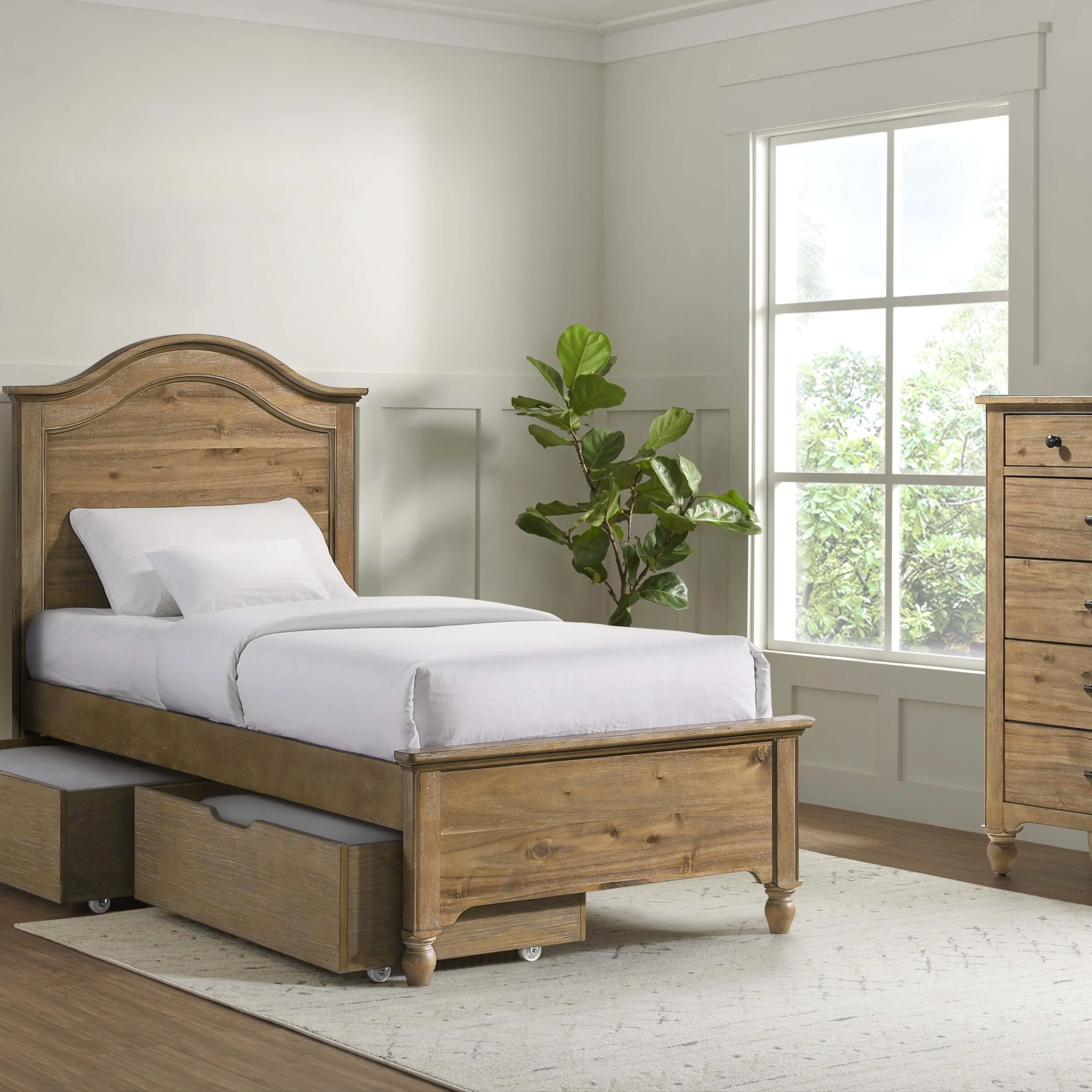 The Highland Collection is featured in a classic rustic farmhouse style, in a natural Sand Dune finish. Several unique case piece items are offered in this collection, including a bookcase, trundle and under the bed storage drawers. Mix and match these items to create the perfect nursery for your child.