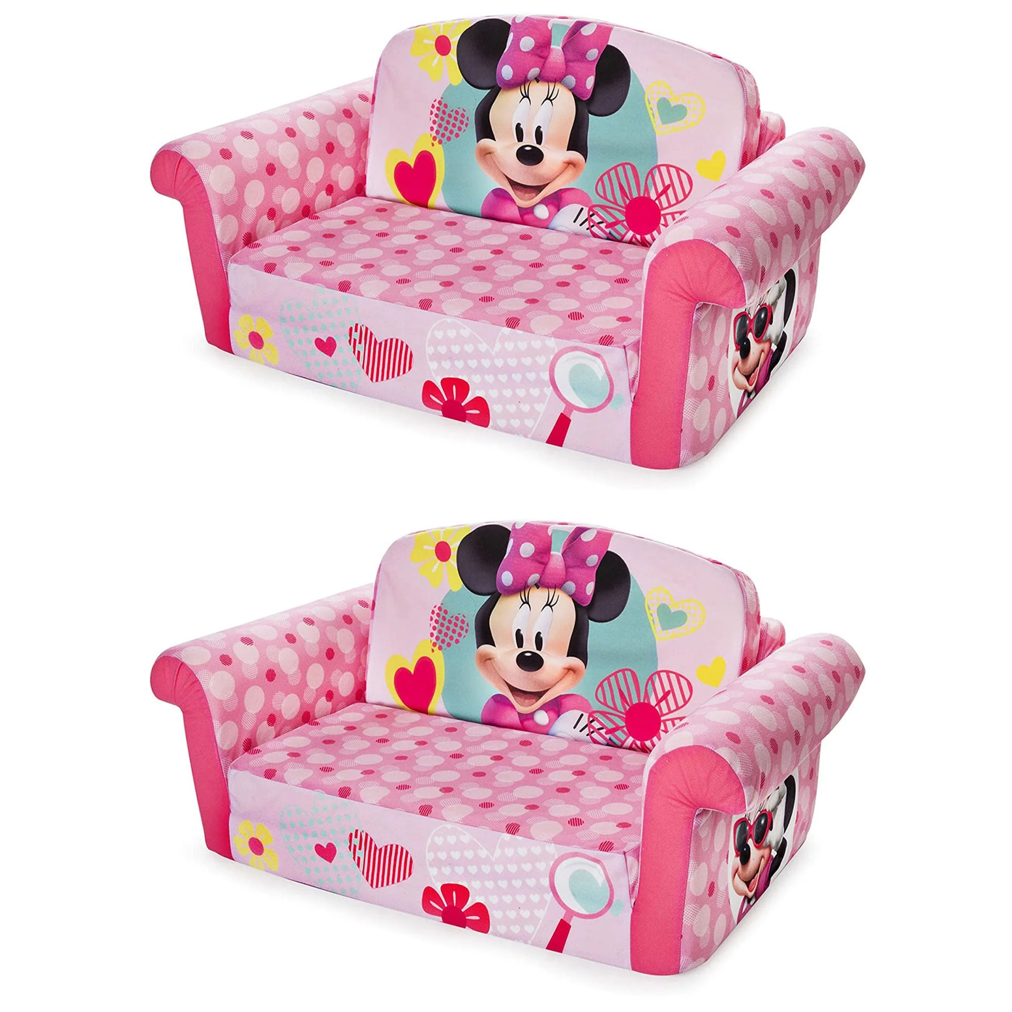Marshmallow Furniture Kids 2 in 1 Foam Compress Sofa Bed, Minnie Mouse (2 Pack)