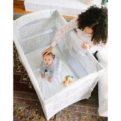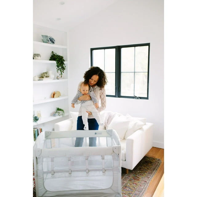 This bassinet has three modes to use as your baby grows! Bedside sleeper, free-standing bassinet, play yard, the Arm's Reach Ideal Ezee 3 in 1 is the embodiment of what we're all about. It's easy to assemble, and portable too! It's easy for diaper changing and nighttime feeding. It features Side pockets for storage, and an attachment strap and plate to provide the safest sleep solution for you and your newborn. After years of customer feedback and product developments, this is truly an ideal option for any concerned parent. Includes everything you need to get started: mattress fitted Sheet travel bag Nylon strap and plate for bed heights starting at 24". Measured from the floor to the top of the adult mattress. If your bed is greater than 24" Tall, a leg extension Kit can be purchased separately. The Mini 3-in-1 is portable, super easy to glide into the next mode, and folds quickly into its own nylon carrying case with a sturdy carrying strap. The Co-Sleeper brand bassinet in co-sleeping mode should sit flush against the parental bed mattress. Created by the brand that coined the word Co-Sleeper over two decades ago, this Co-Sleeper® bassinet is the safest sleep solution for babies.