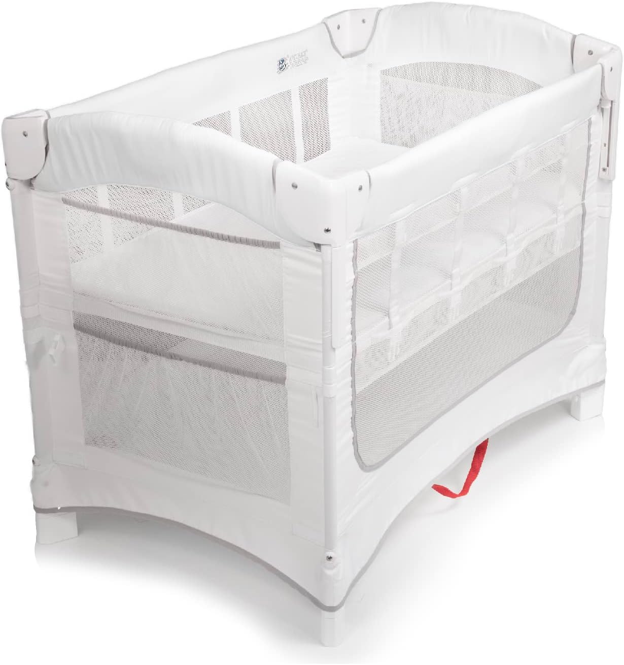 - Includes: Mattress Fitted Sheet, Carry Case, Nylon strap & plate to attach to parent bed;