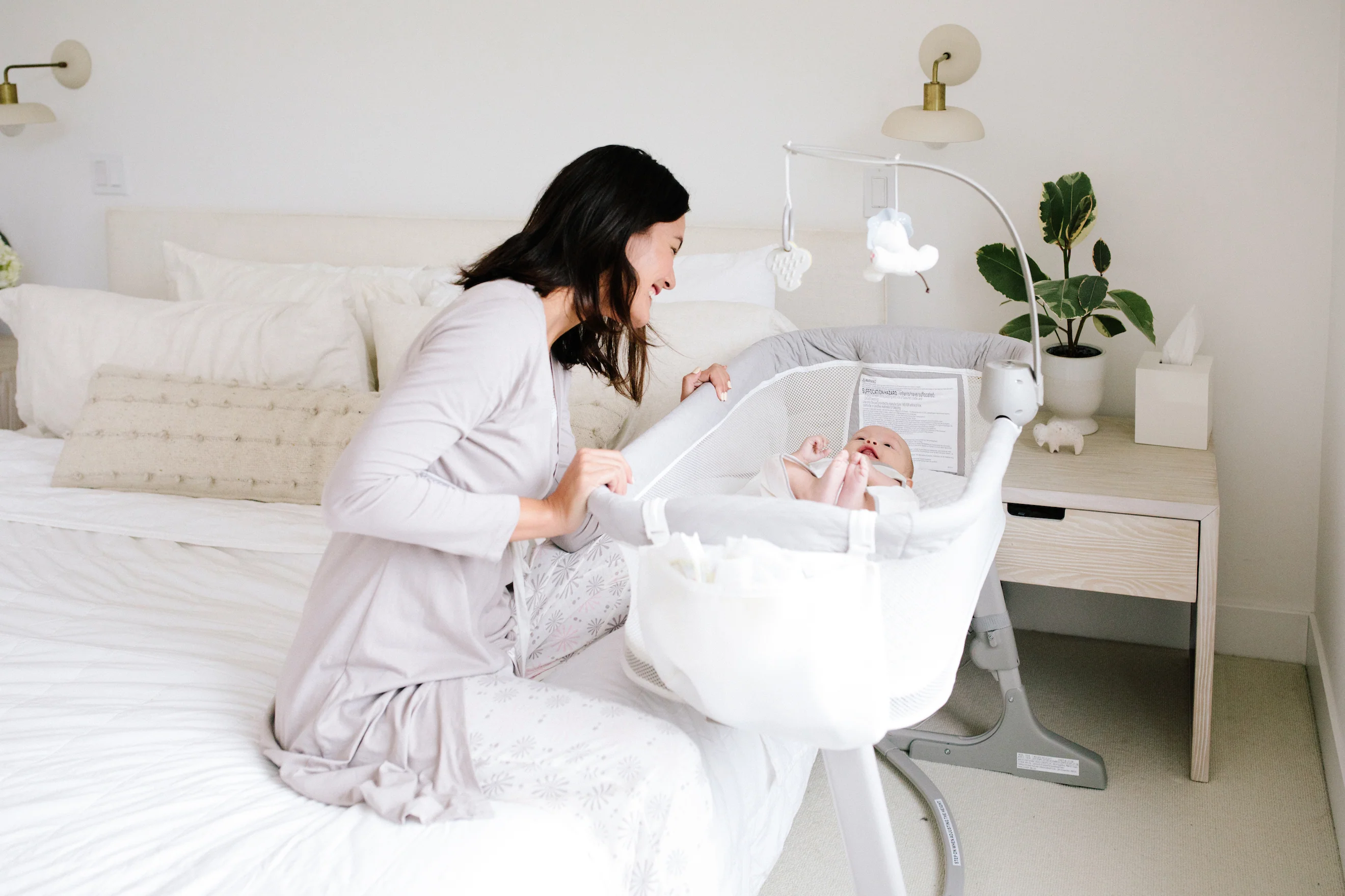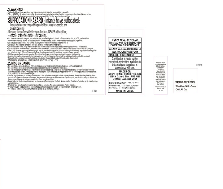 - Nylon strap and resistant plate to secure bassinet to adult mattress