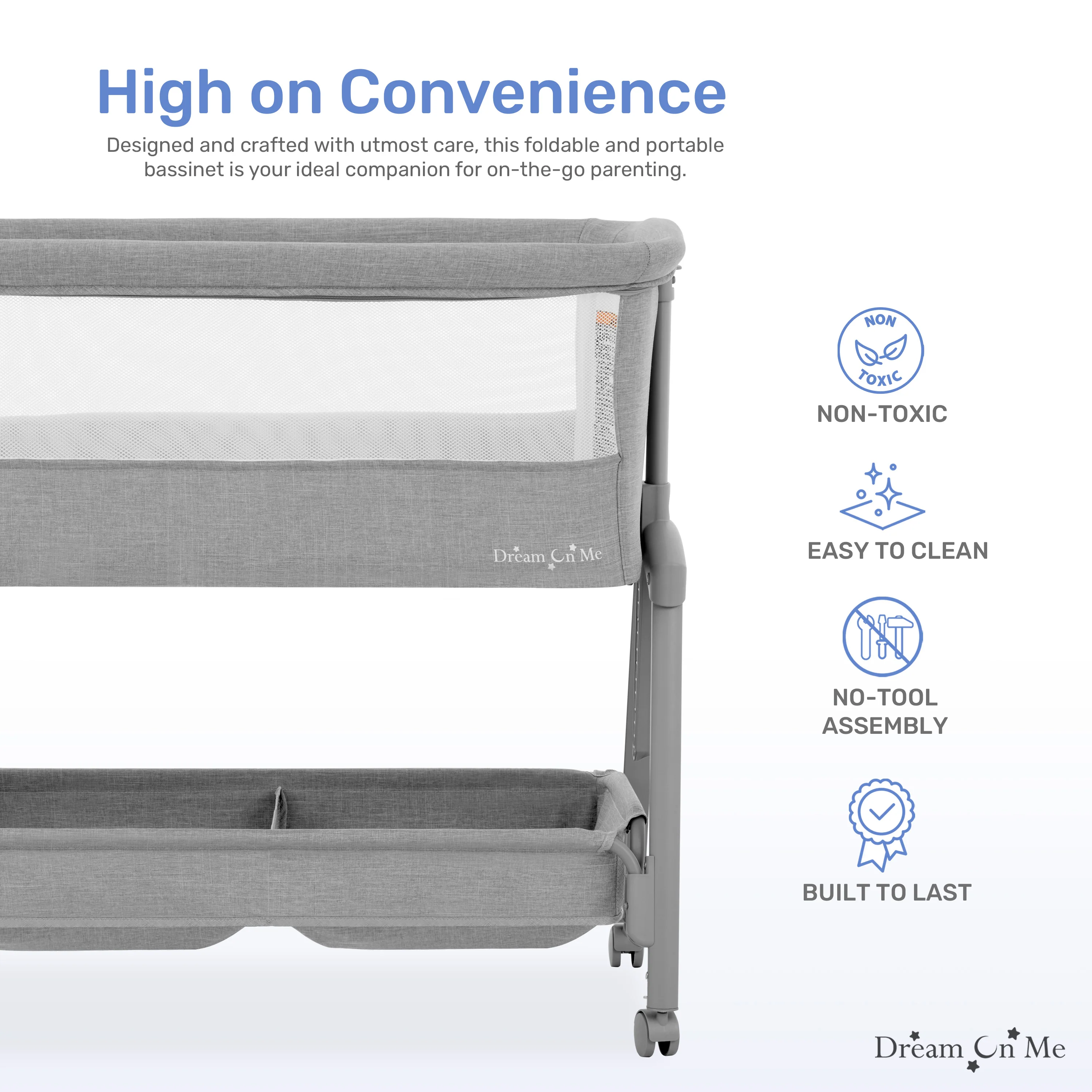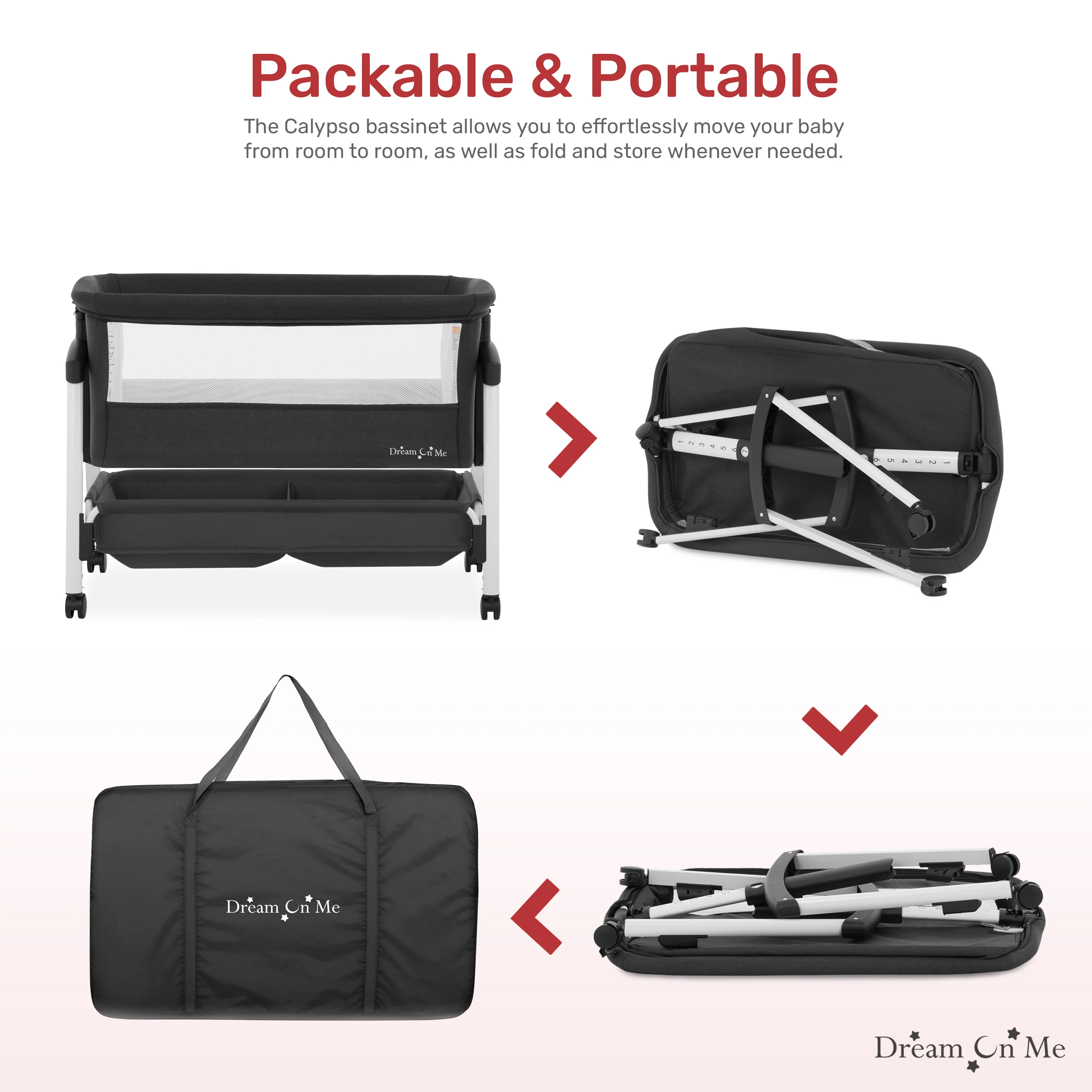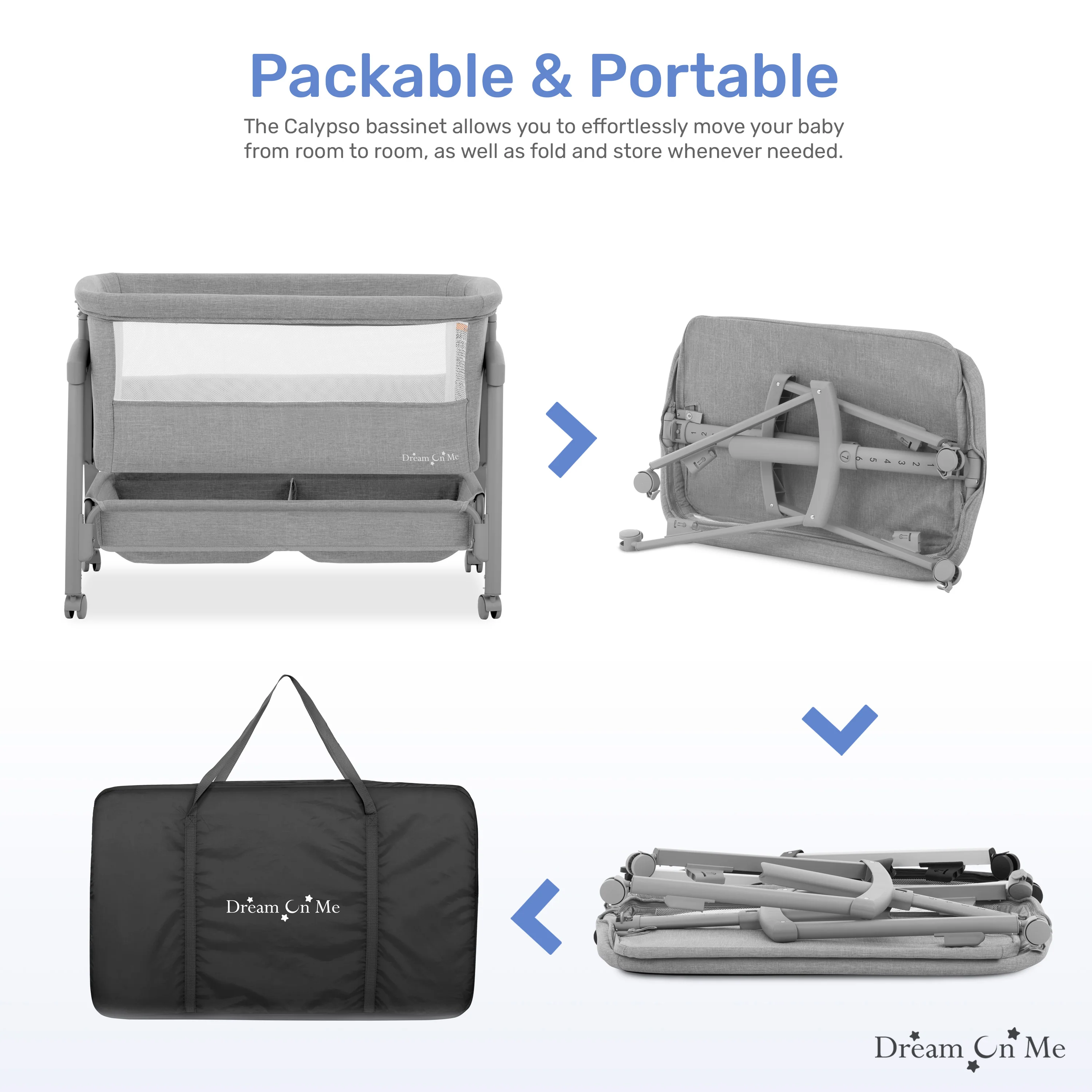 Experience the perfect blend of comfort and convenience with Dream On Me Calypso Portable Bassinet With Wheels! This foldable and portable bassinet is your ideal companion for on-the-go parenting. Featuring convenient wheels, this portable bassinet allows you to