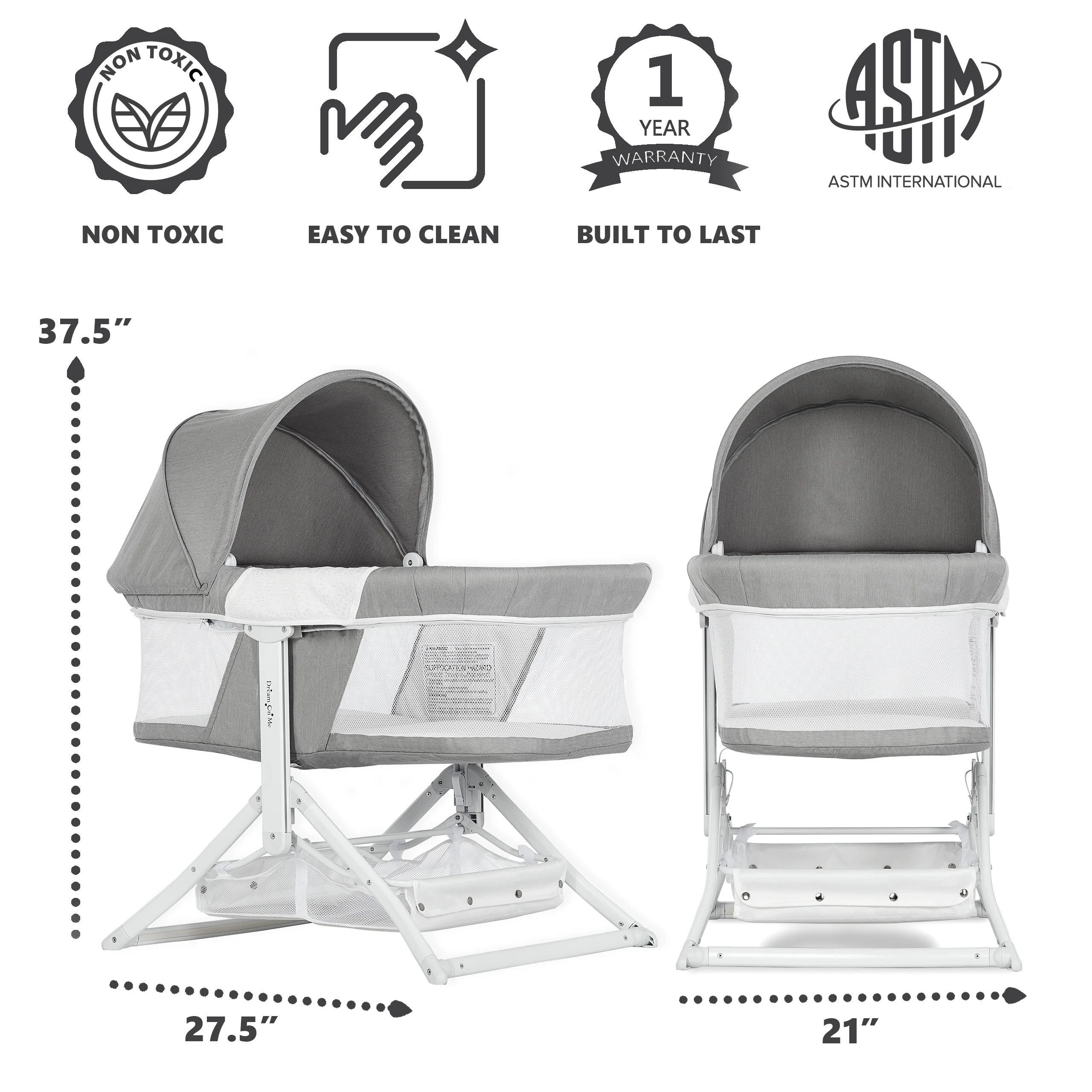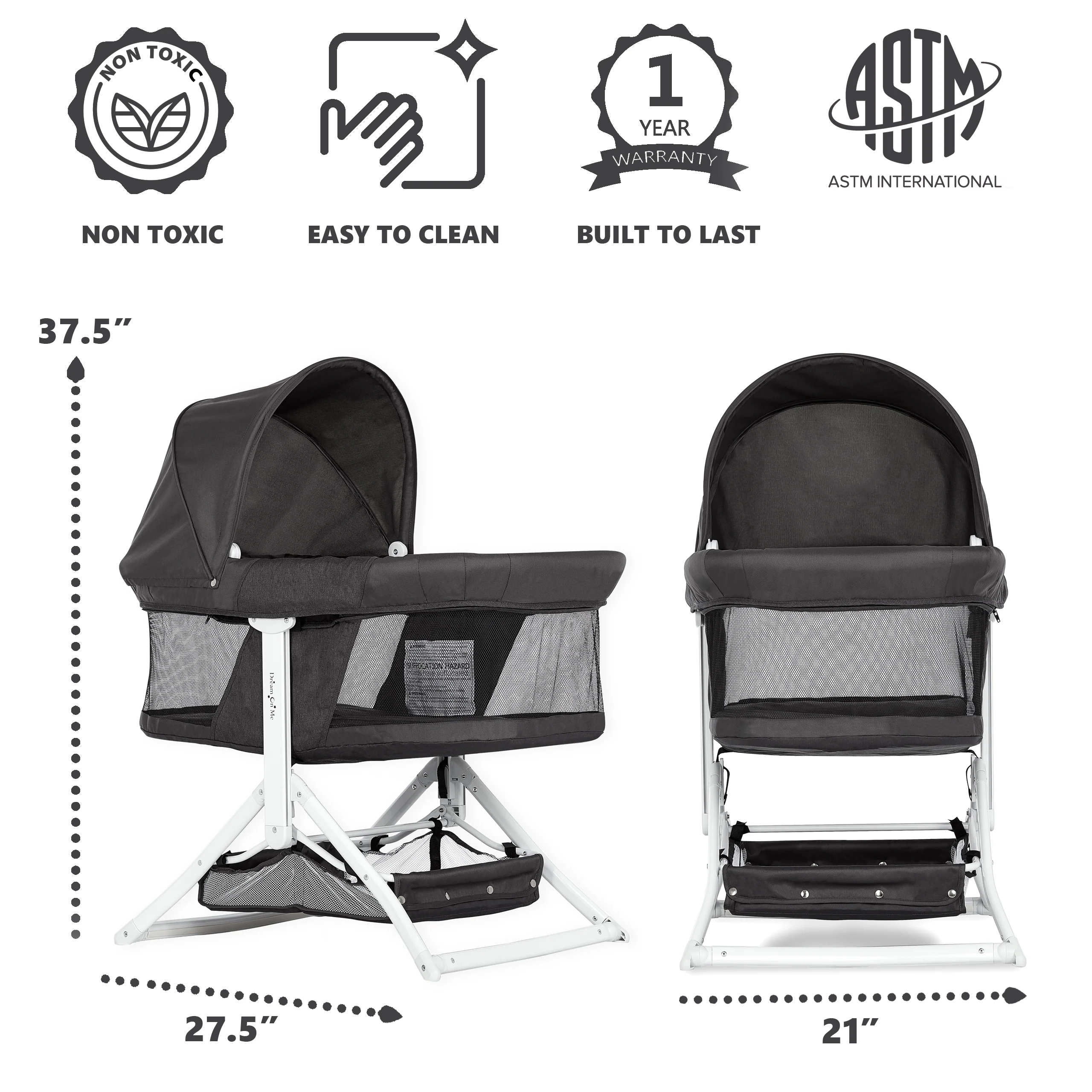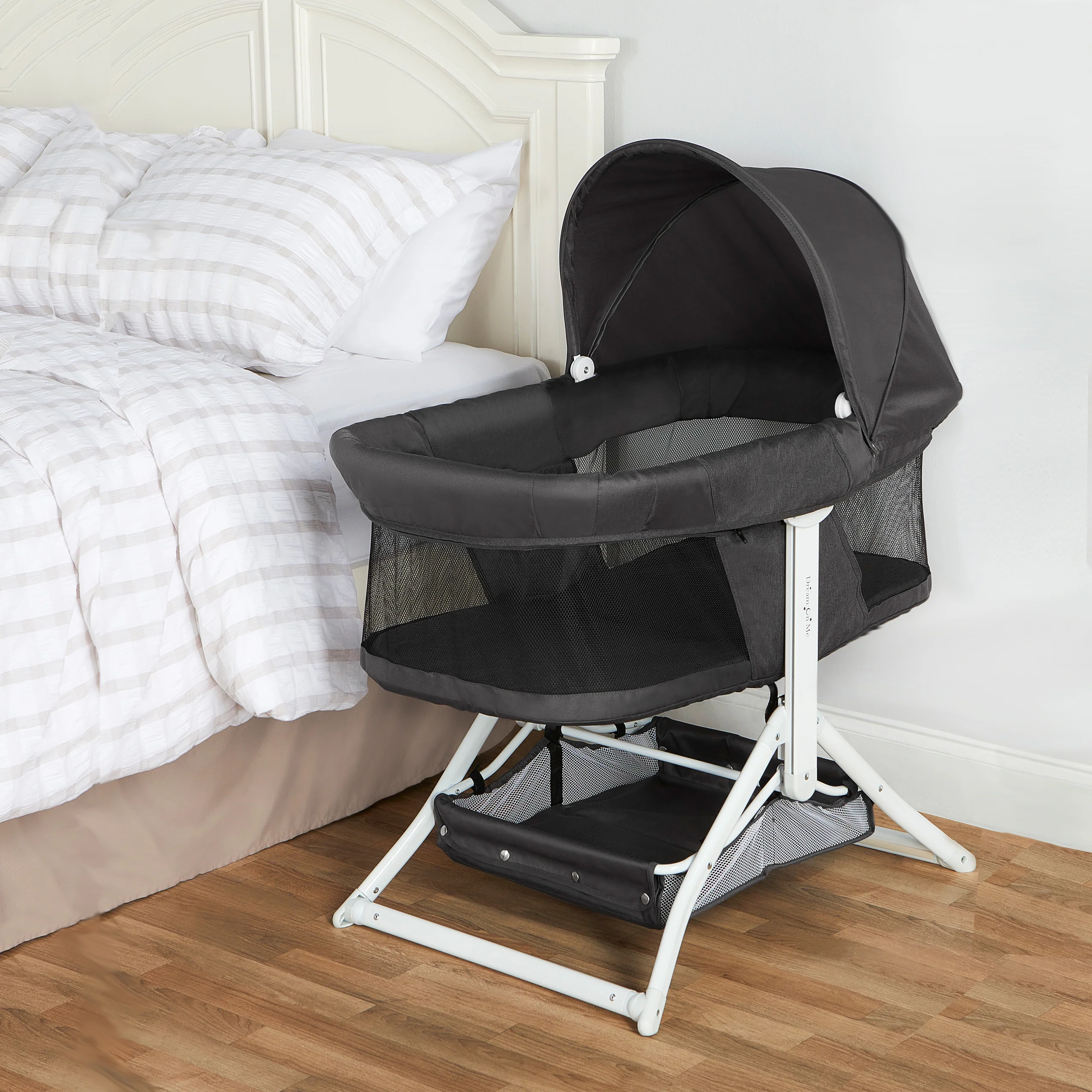 - FUNCTIONAL FEATURES: The handy storage basket below the bassinet allows you to keep baby essentials at hand. It features a removable canopy, perfect to provide shade in the outdoors