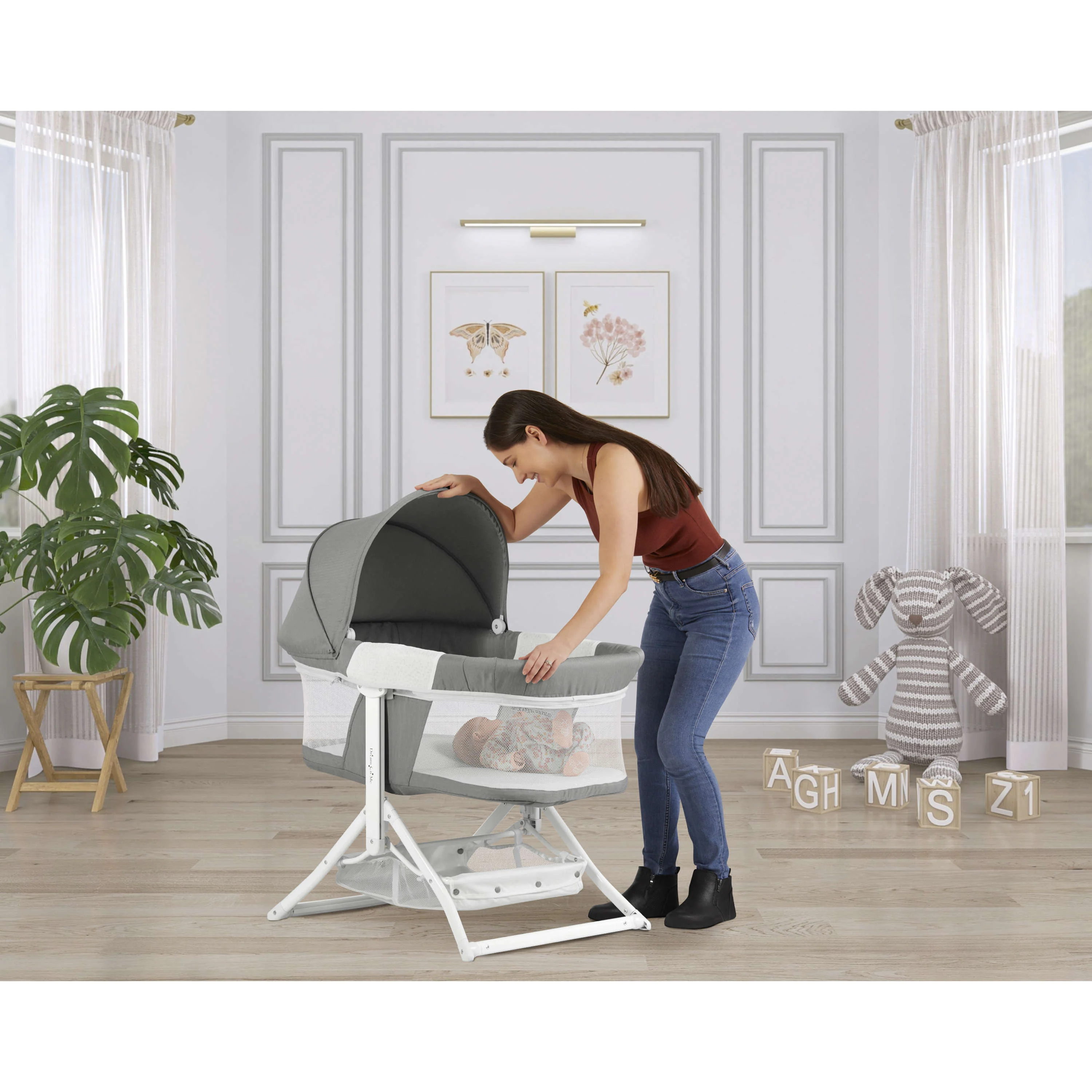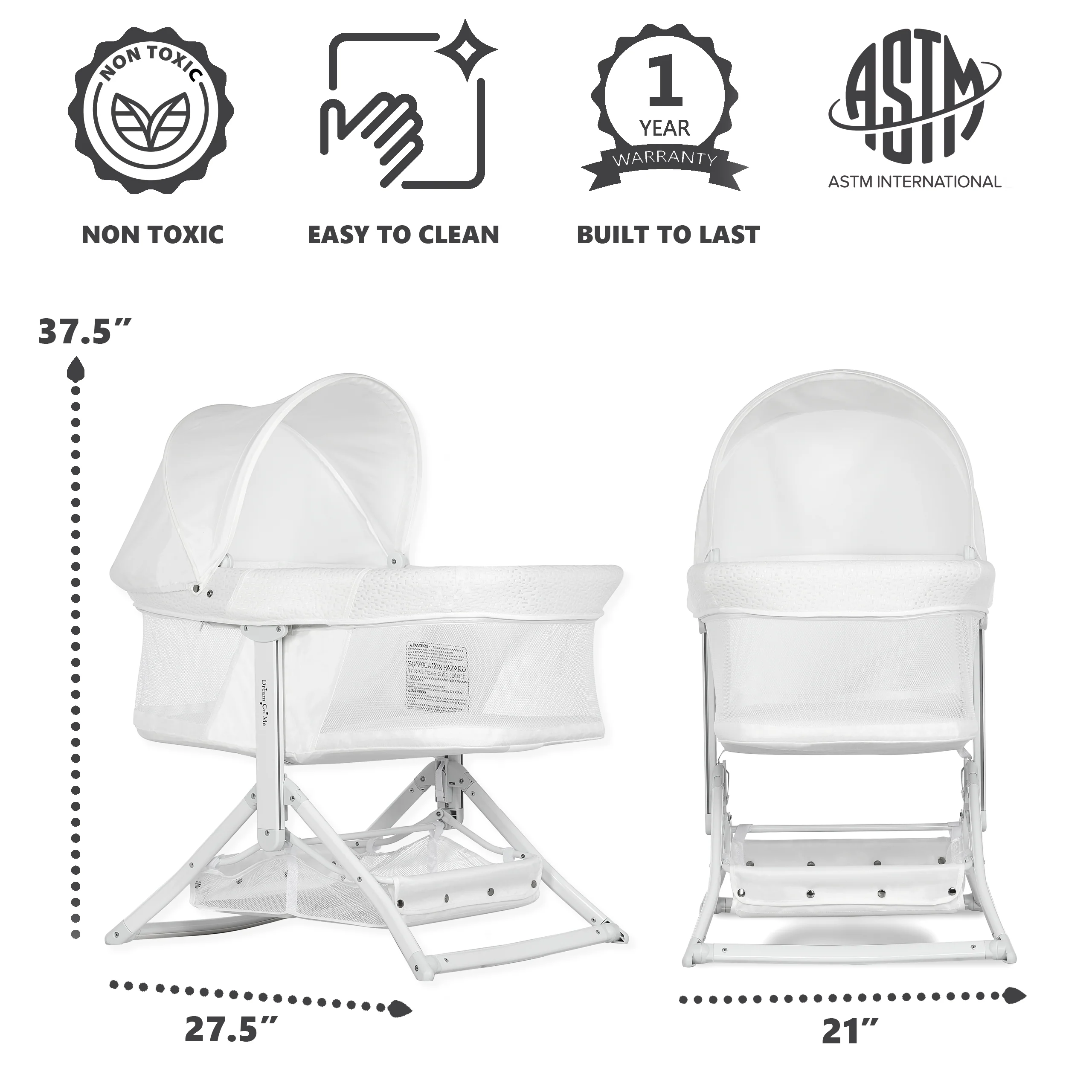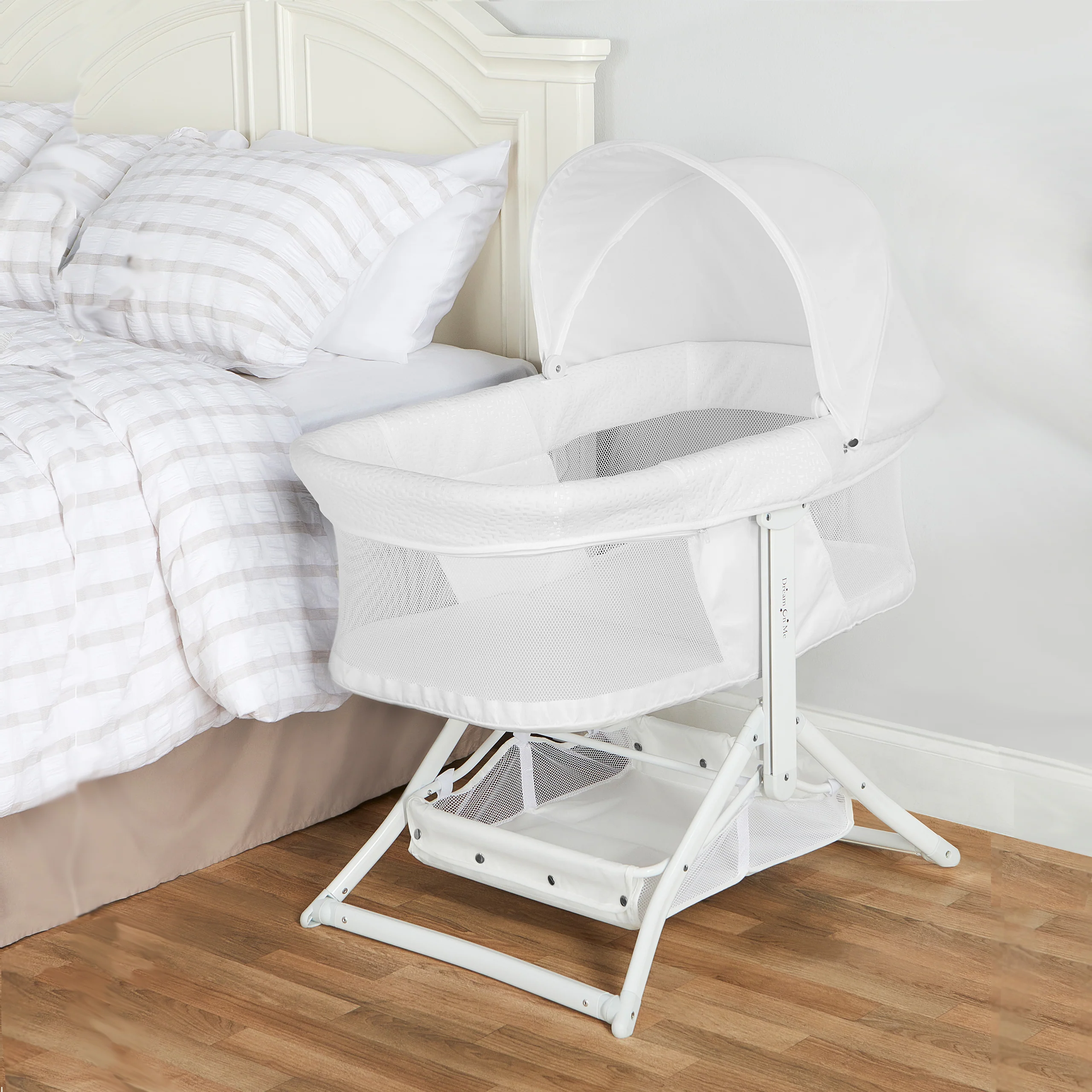 - FUNCTIONAL FEATURES: The handy storage basket below the bassinet allows you to keep baby essentials at hand. It features a removable canopy, perfect to provide shade in the outdoors