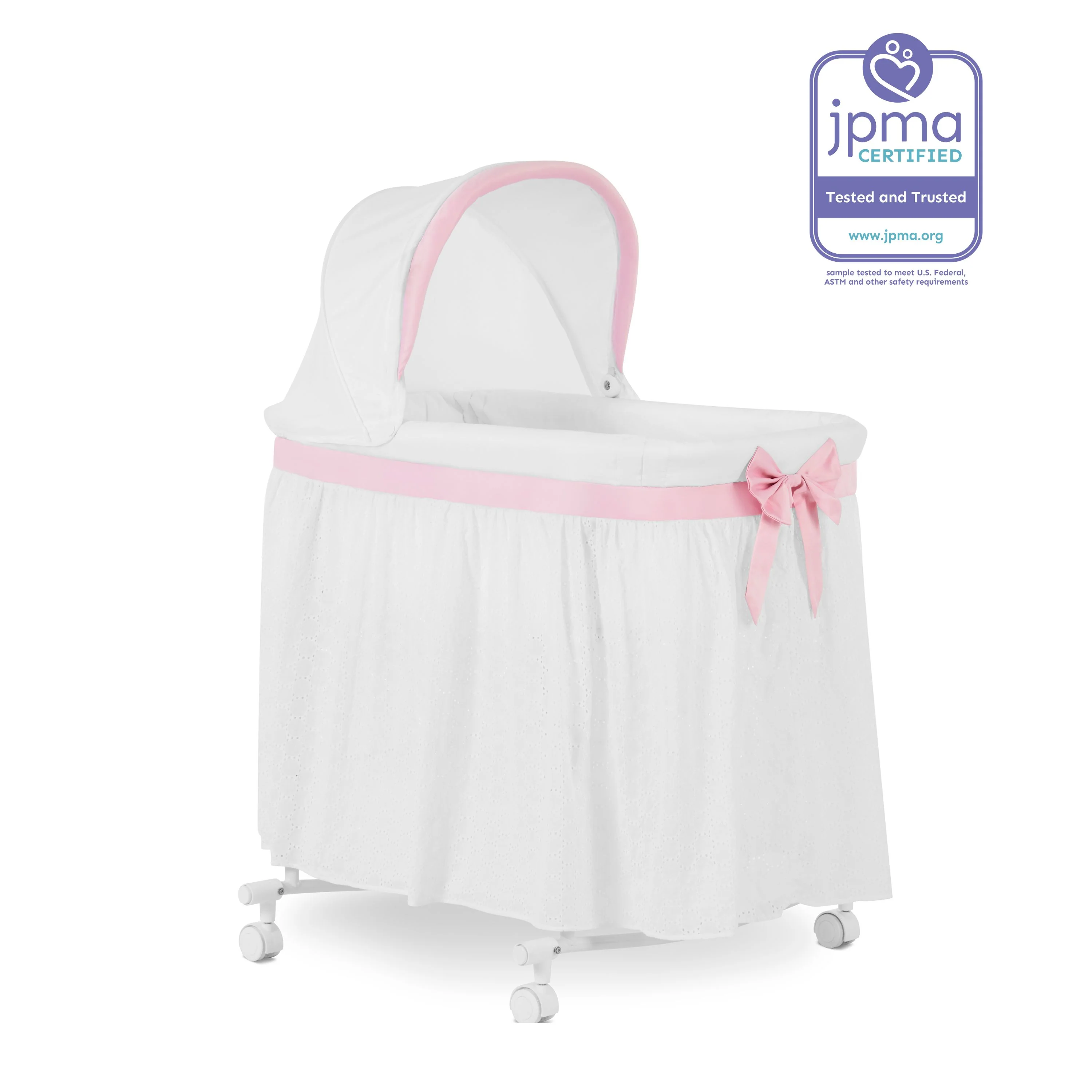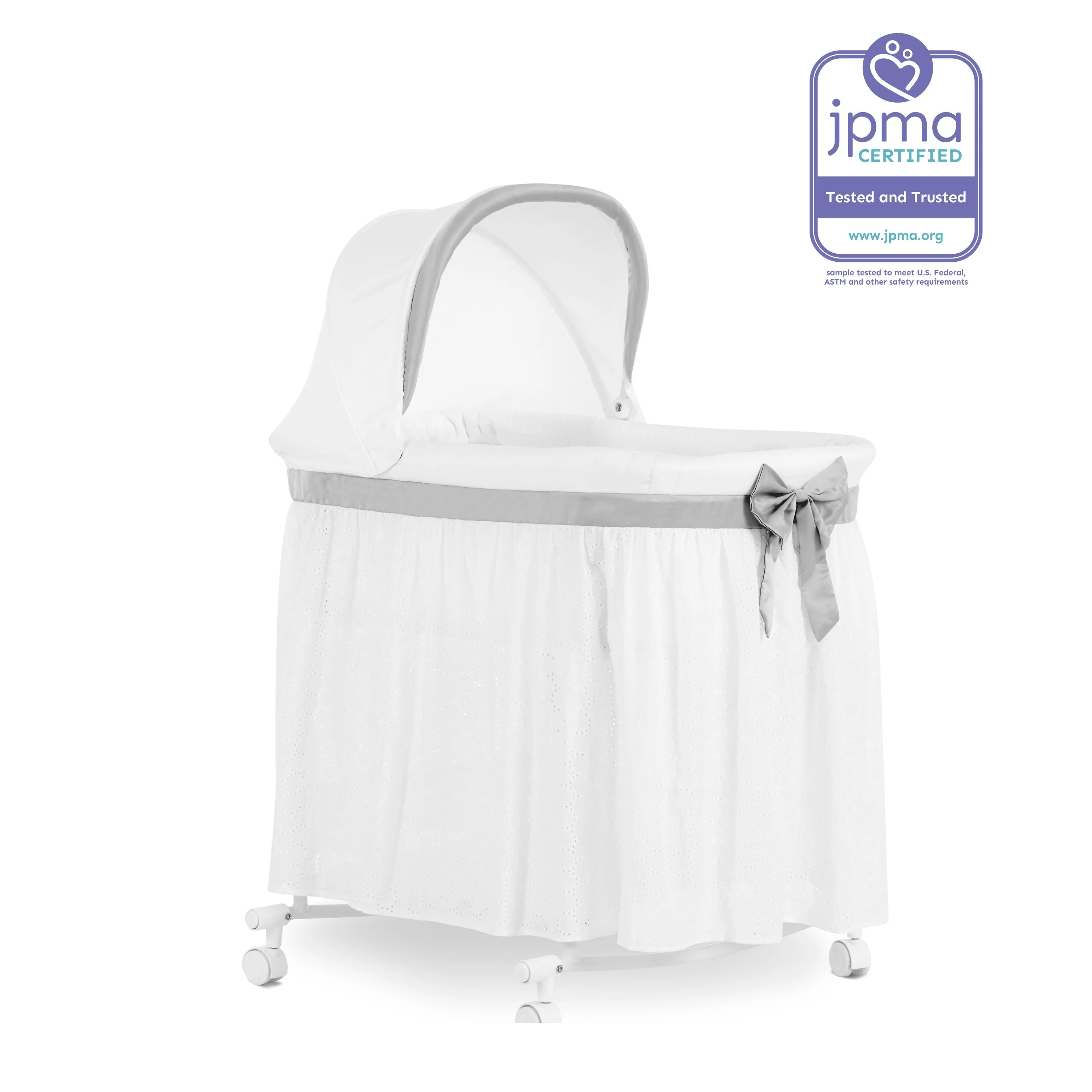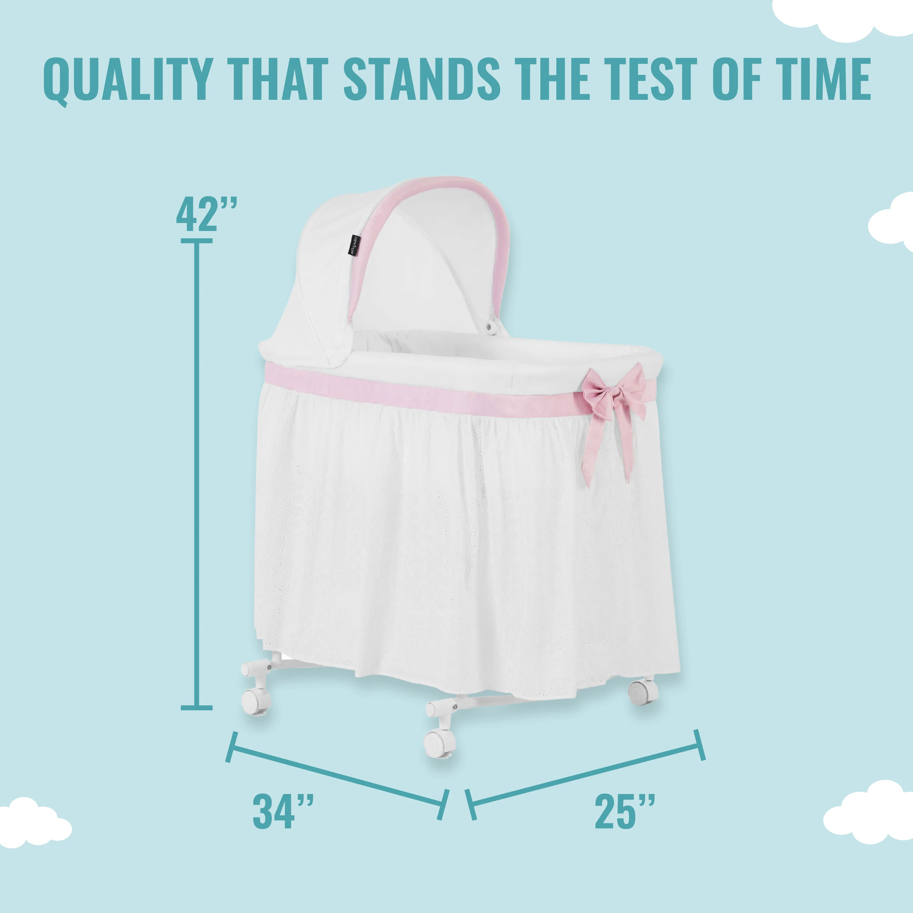 - This bassinet adds a touch of elegance to your nursery decor. Product dimensions are 33” L X 26” W X 42.3” H, with a weight of 12.5 Lbs and a maximum weight capacity of 33 Lbs.