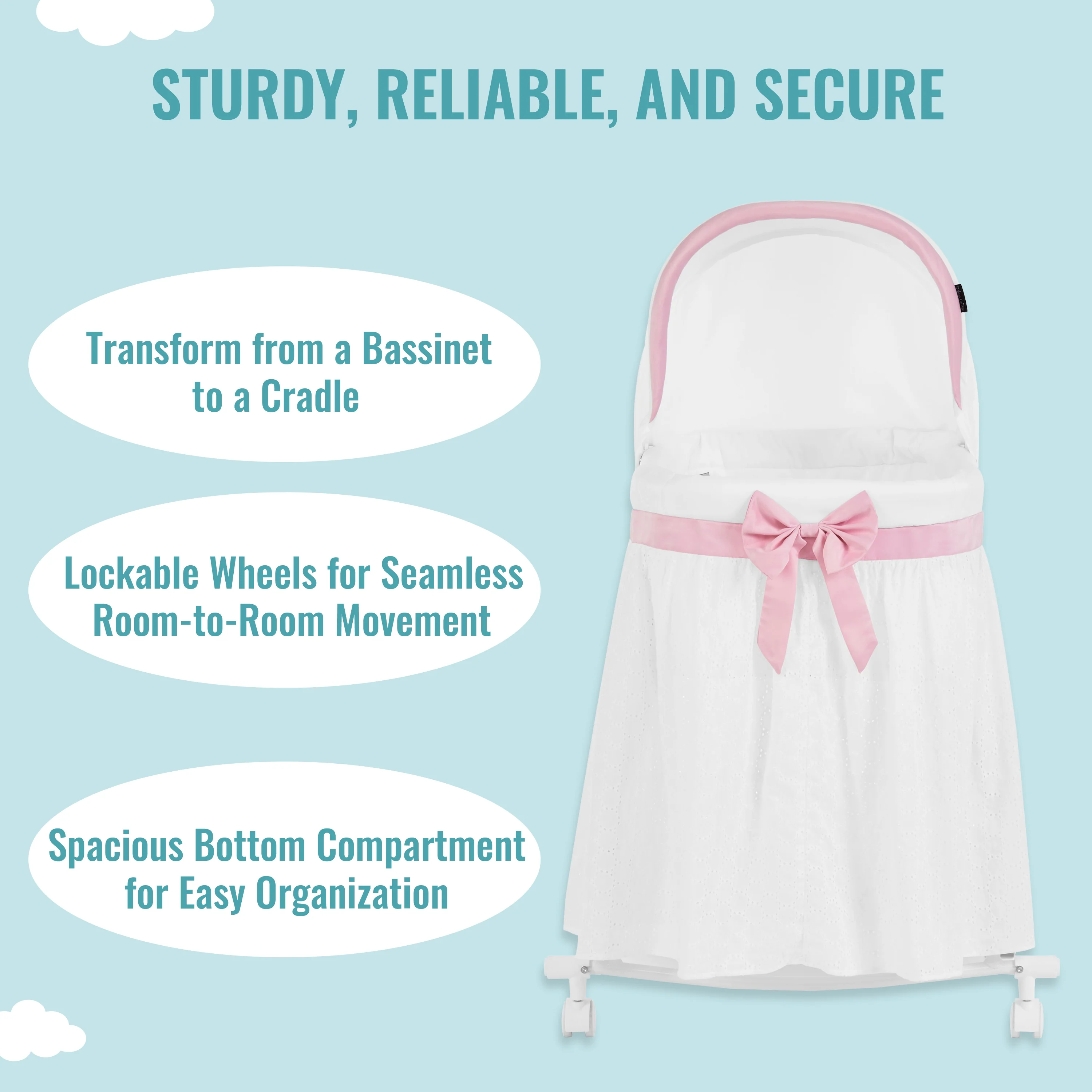 - With lockable wheels that ensure stability & glide effortlessly, you can easily move the bassinet from one room to another, keeping your baby close by at all times.