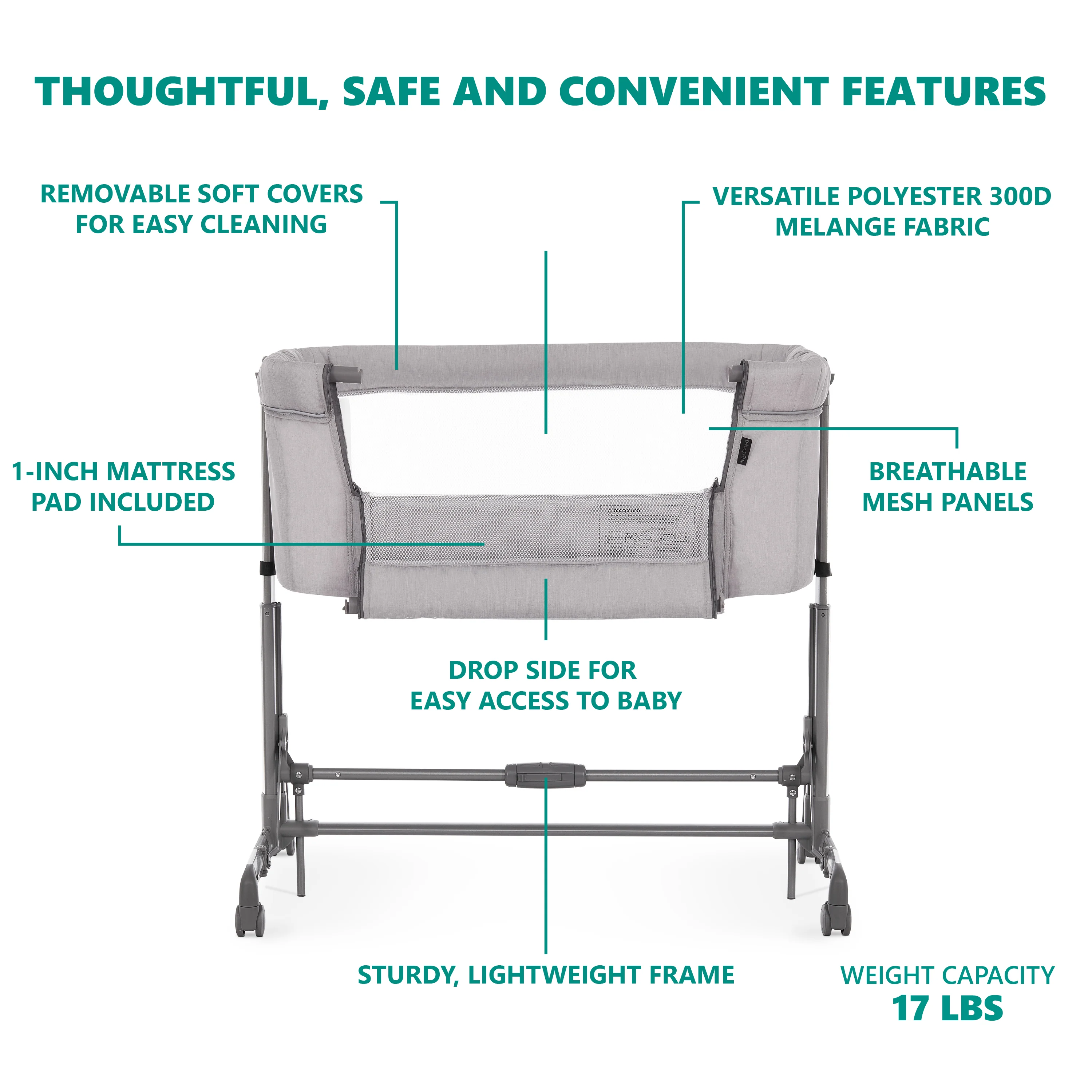 - Unzip and roll down the drop side for easy transition from a bassinet to a bedside sleeper