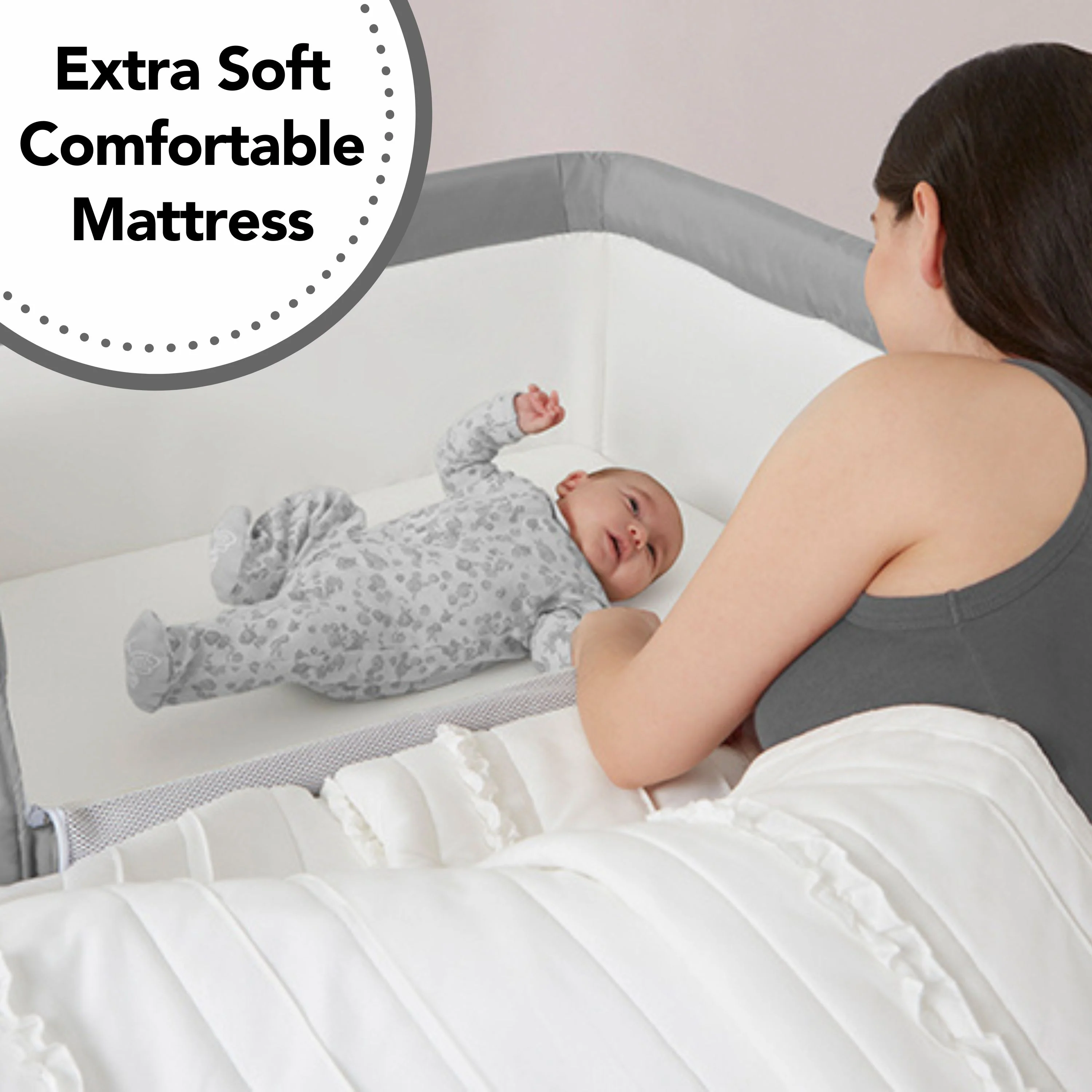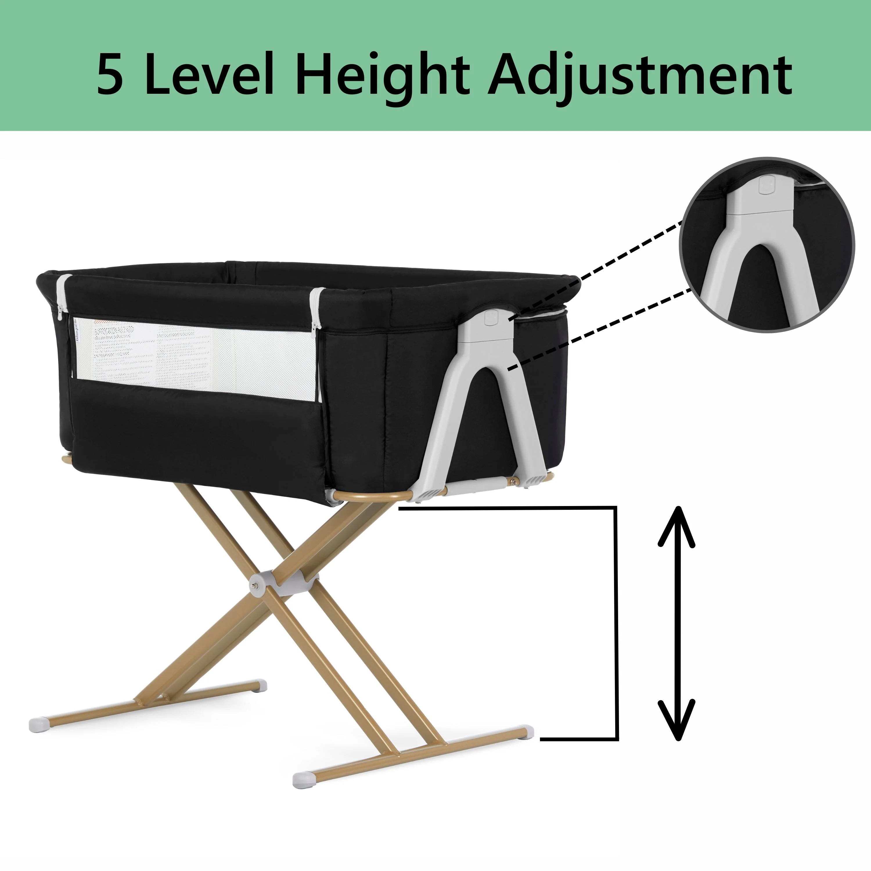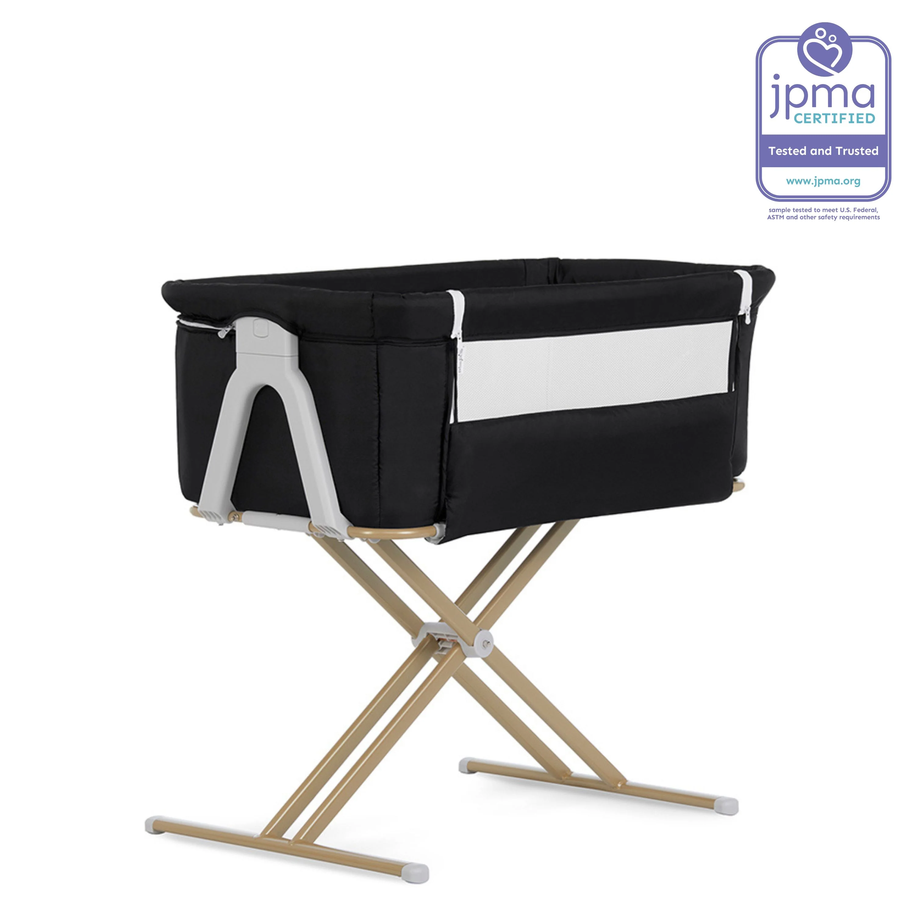 - This JPMA-certified bassinet features a free-pull up, one-hand easy up and down mechanism, making it easy to get a glimpse of your newborn through the night.
