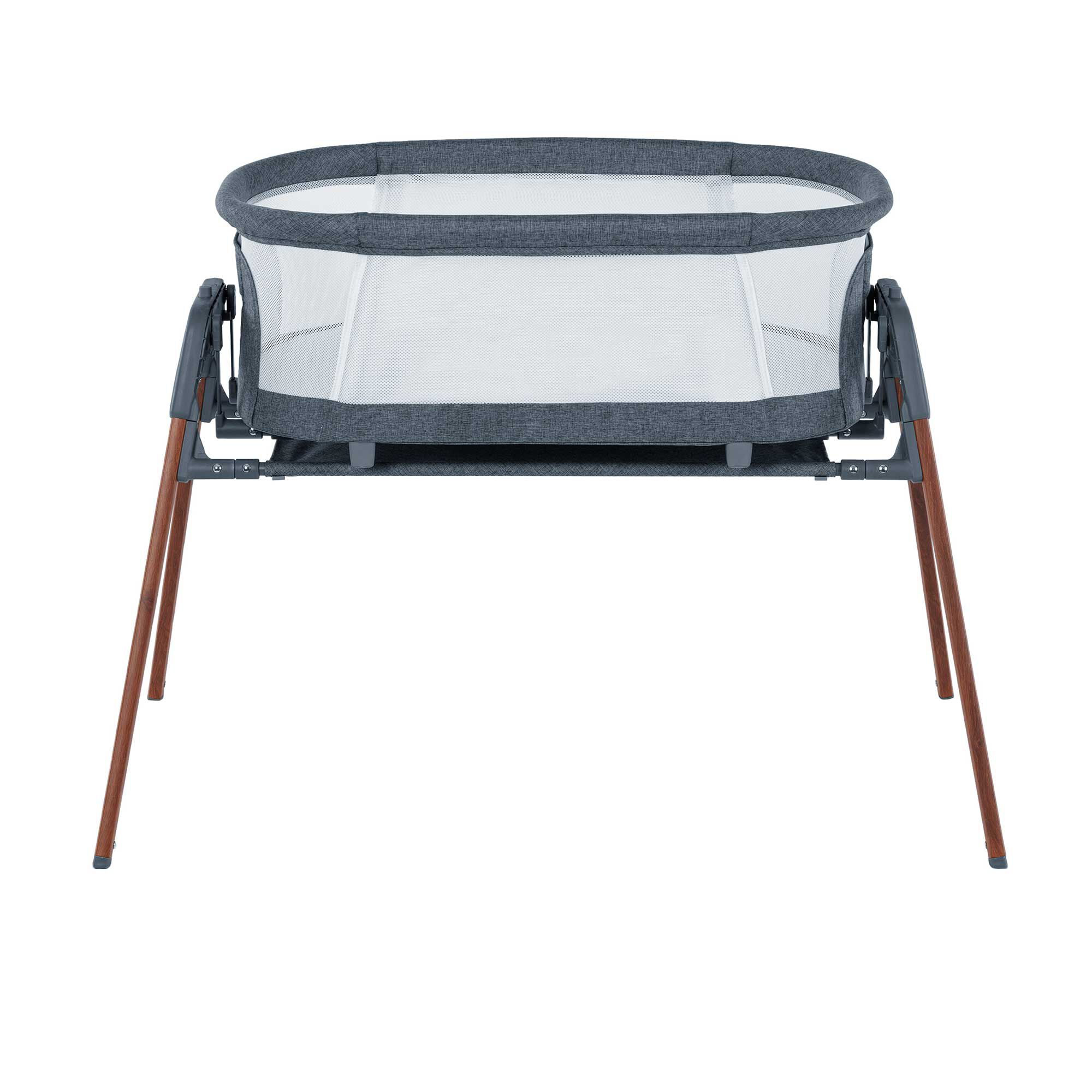 - Portable bassinet easily detaches from stand to keep baby close throughout the home or as a snug bed when away. Bassinet folds flat and slides into convenient travel bag for easy portability.