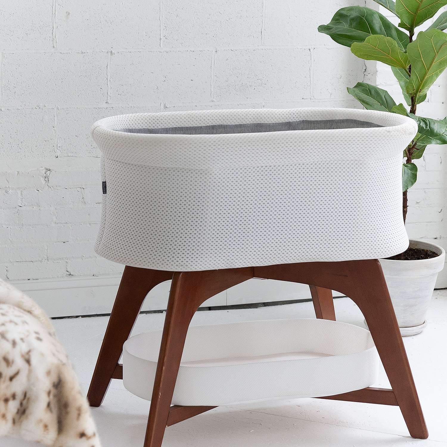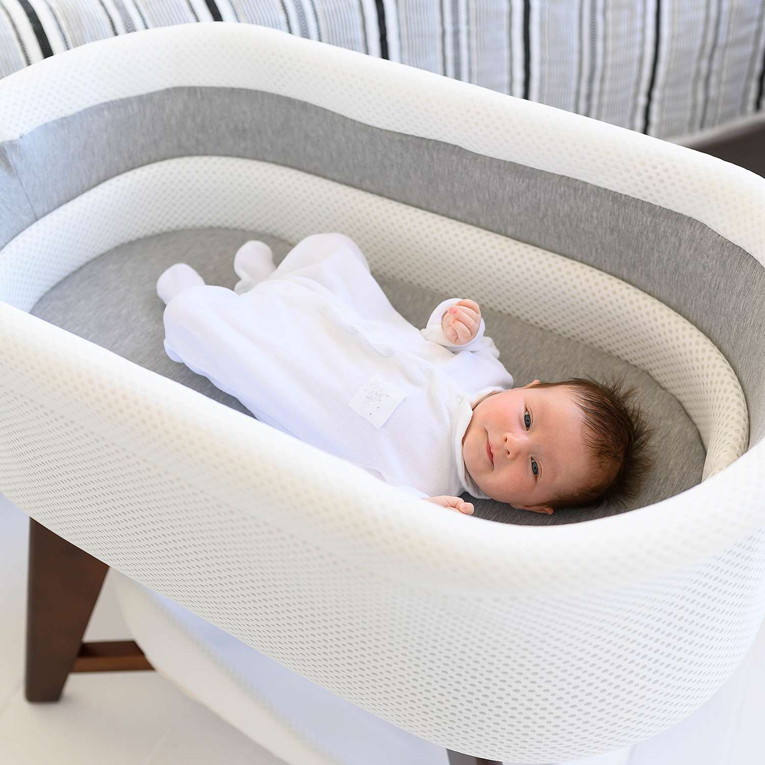 The TruBliss Evi Smart Bassinet boasts state-of-the-art hands-free technology to help babies sleep. The Evi Smart Bassinet's unique motion, light, and sound features easily connect to Amazon Alexa, Google Home, or through its mobile app.