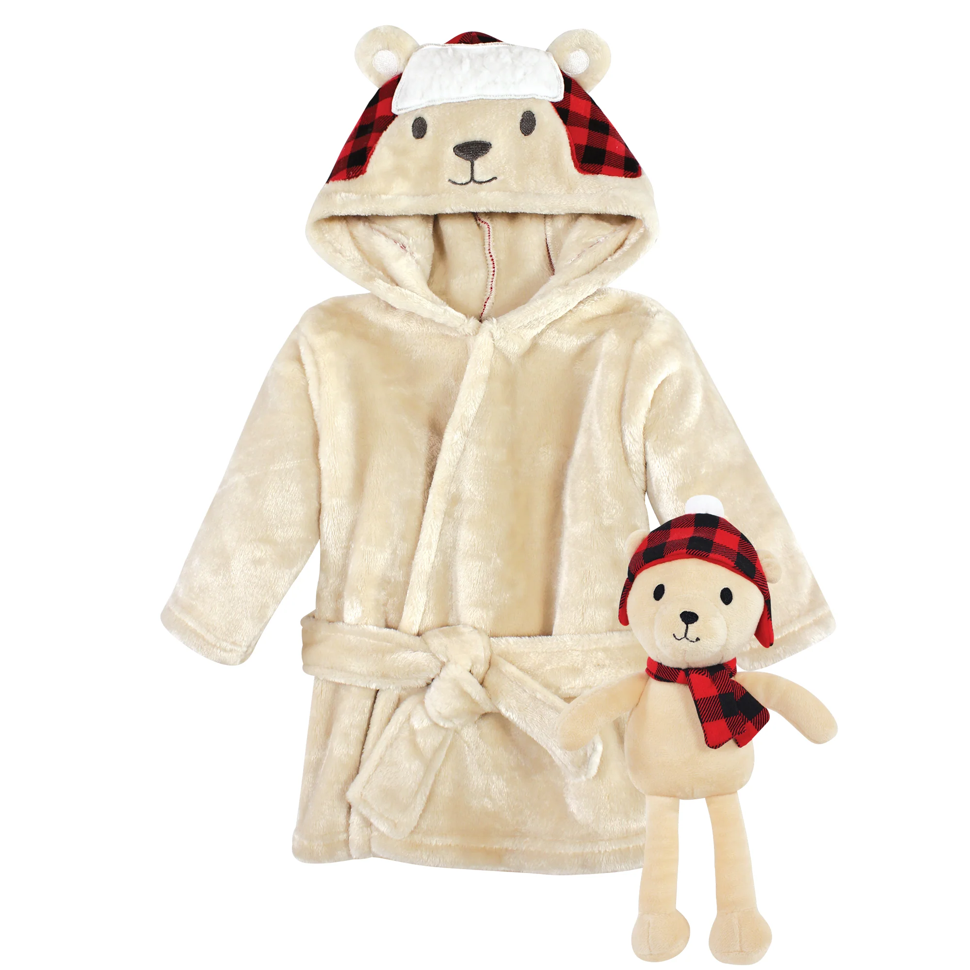 Hudson Baby Plush Bathrobe and Toy Set, Plaid Bear, One Size