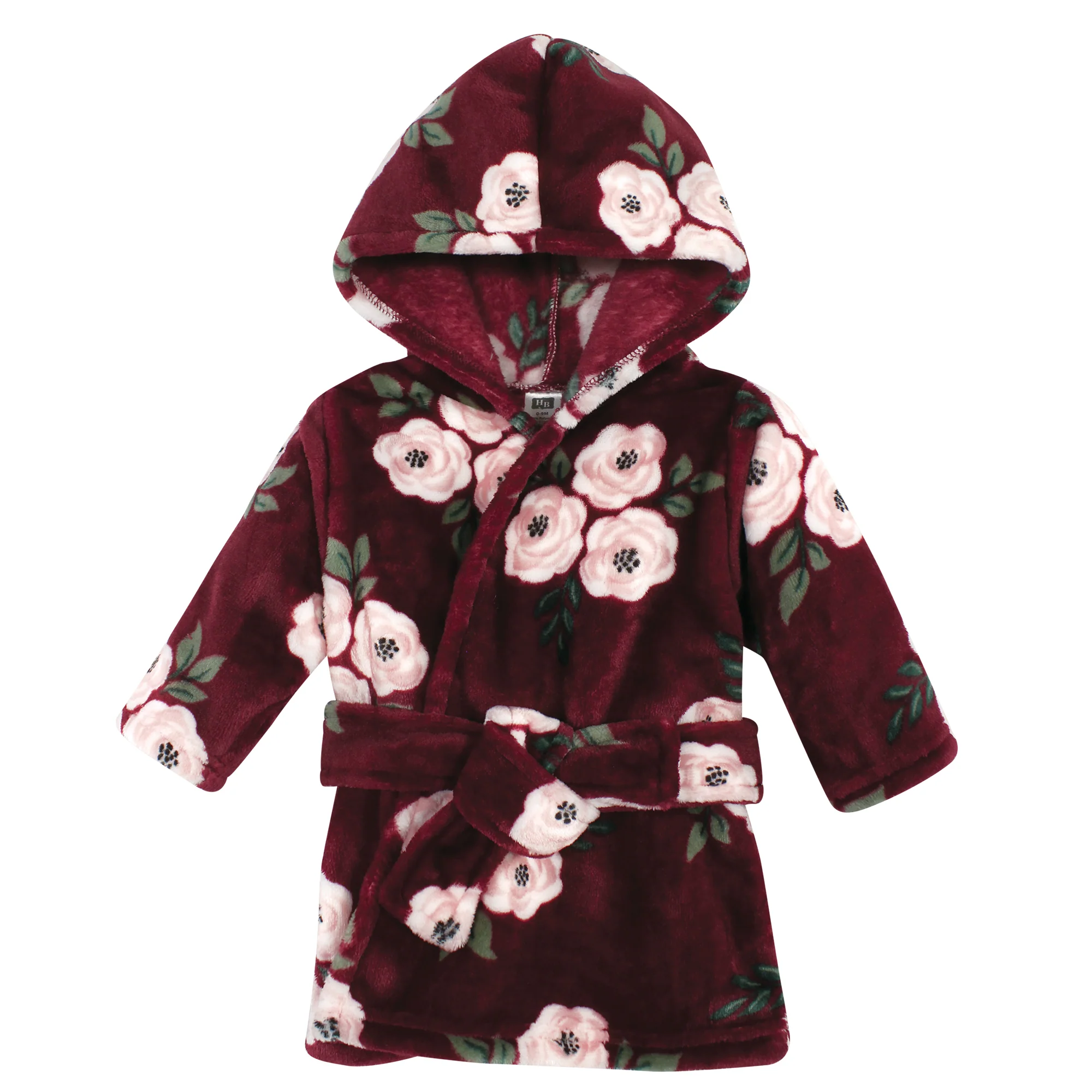 Hudson Baby Plush Bathrobe, Burgundy Floral
