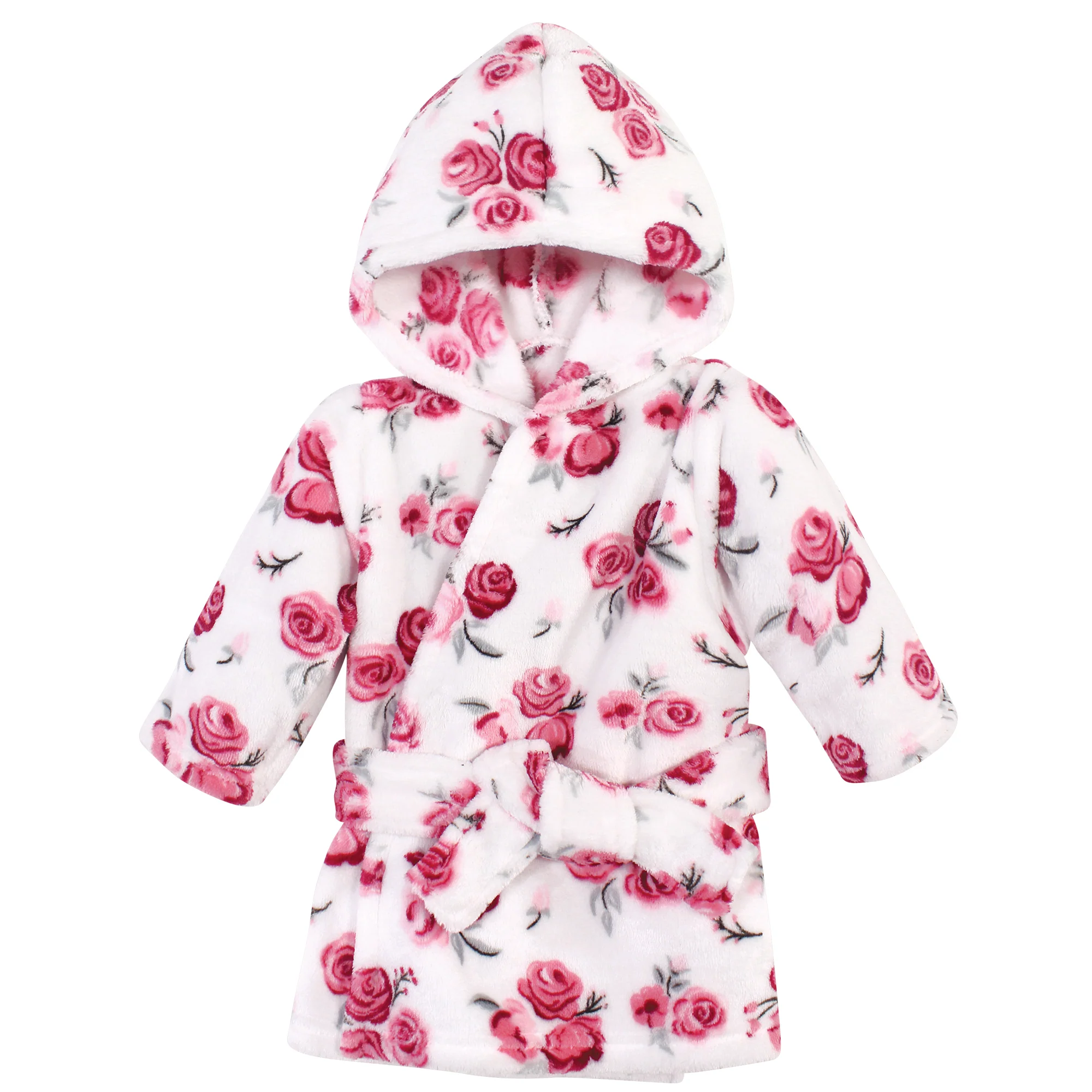 Hudson Baby 2 Piece Plush Bathrobe, Rose Floral