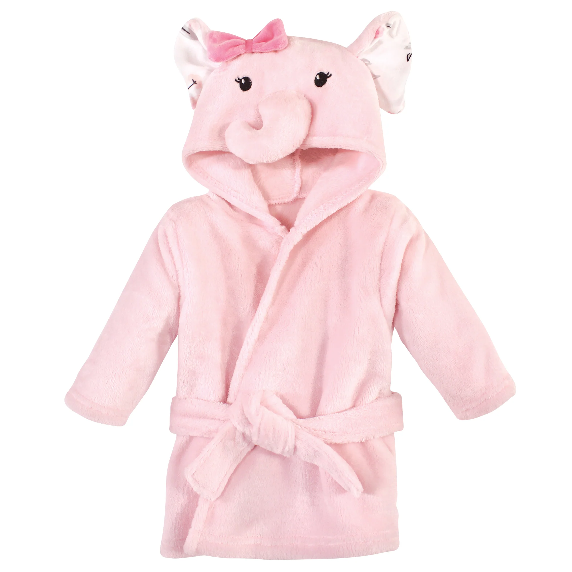 Hudson Baby Infant Girl Plush Animal Bathrobe, Pink Floral Elephant, 0-9 Months